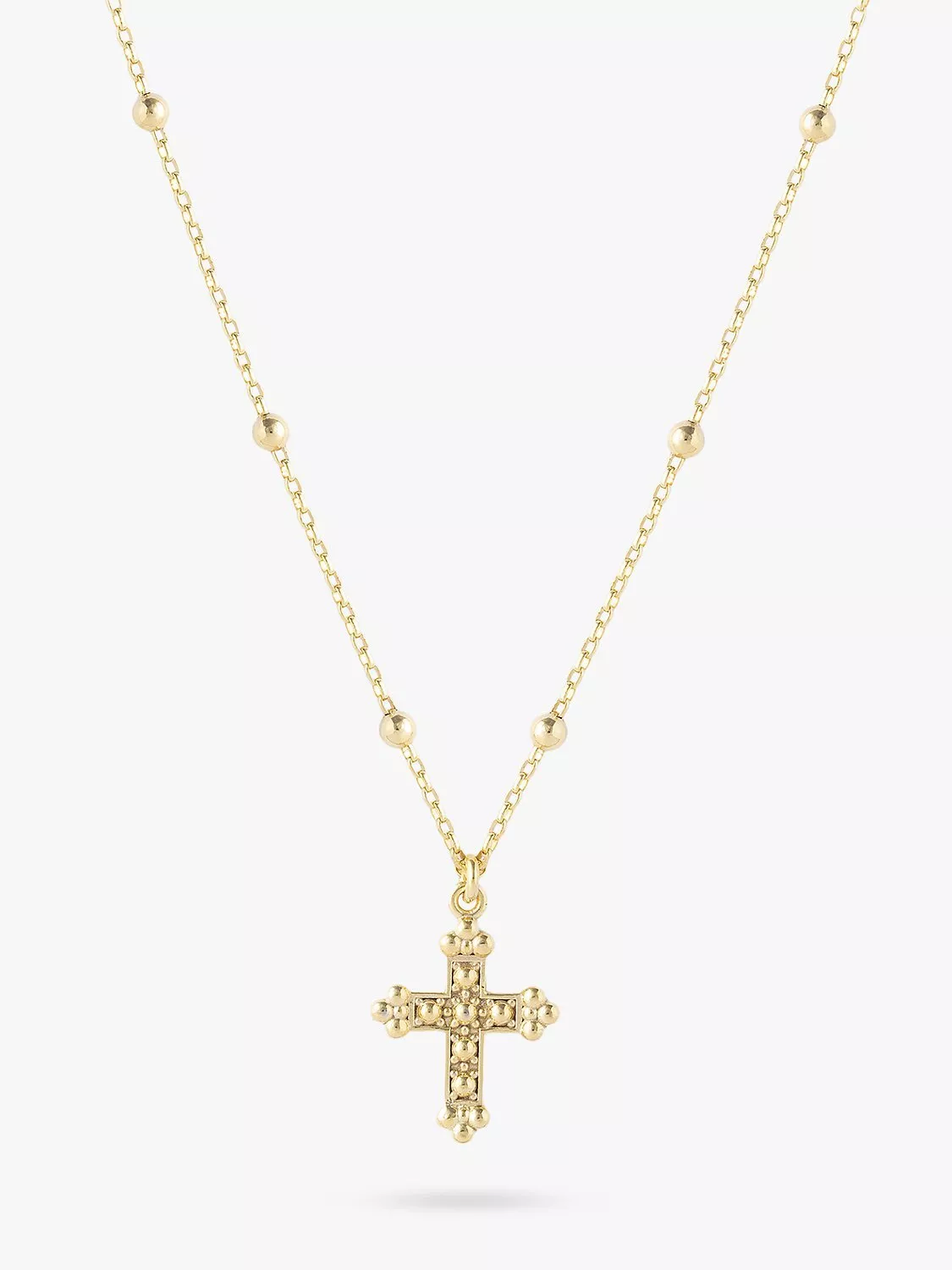 Handcrafted from gold plated sterling silver, this beautiful Larnauti beaded cross pendant is paired with an attractive beaded belcher chain. A special sentimental piece of jewellery that can be handed down through generations and makes a perfect gift for you or a loved one.