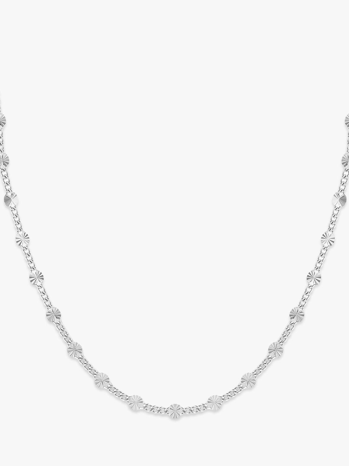This classic Larnauti chain links together with diamond cut stations giving it a charming vintage feel. Why not layer with a box herringbone chain to create the perfect look.