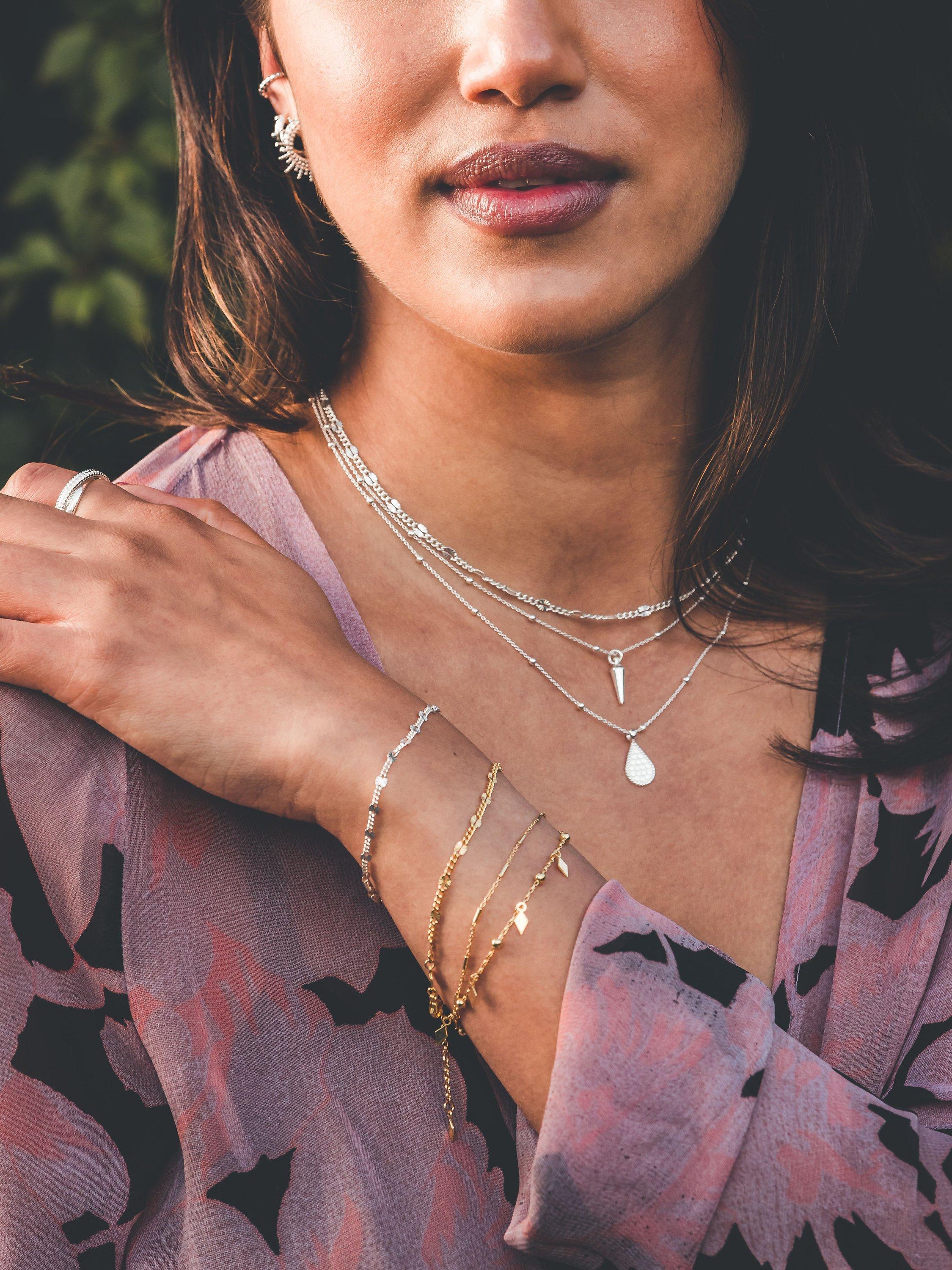 This classic Larnauti chain links together with diamond cut stations giving it a charming vintage feel. It is secured with a reliable lobster clasp and can be adjusted in length for a great fit.