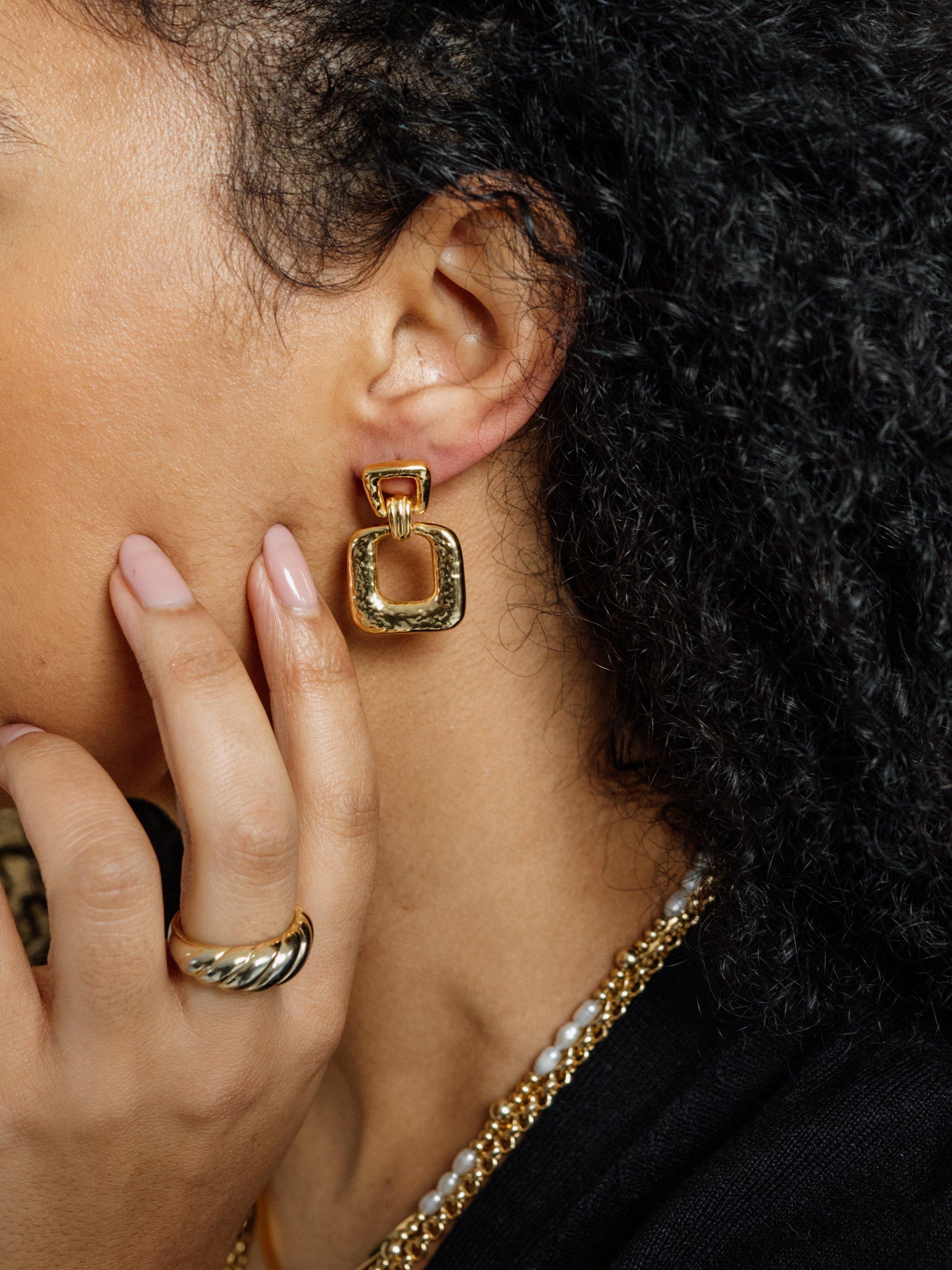 LARNAUTIHammered Square Stud Drop Earrings, Gold