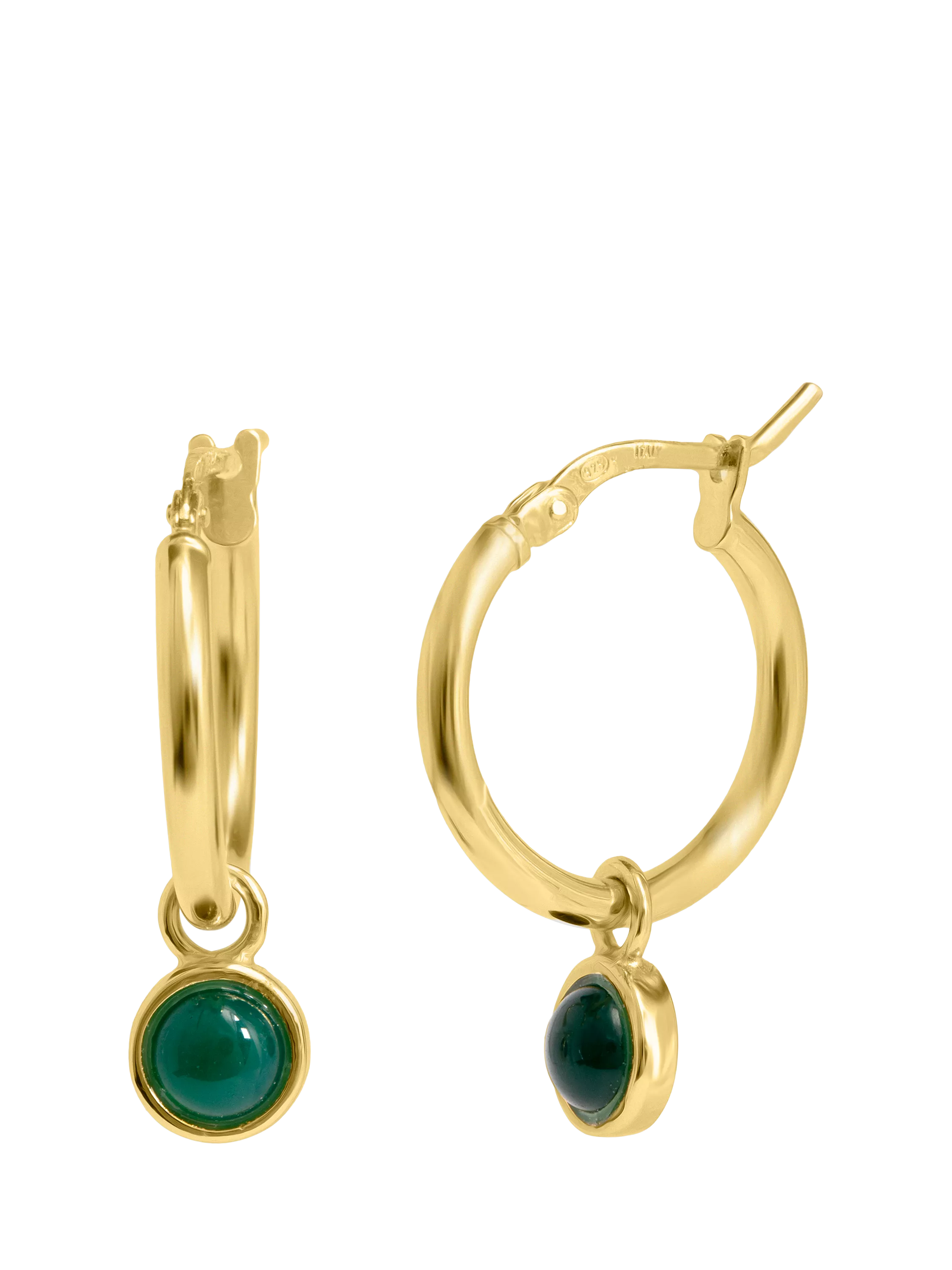 A polished LARNAUTI hoop adorned with an onyx charm drop. A beautiful hoop to wear alone or as part of a Larnauti ear stack. For pierced ears only.