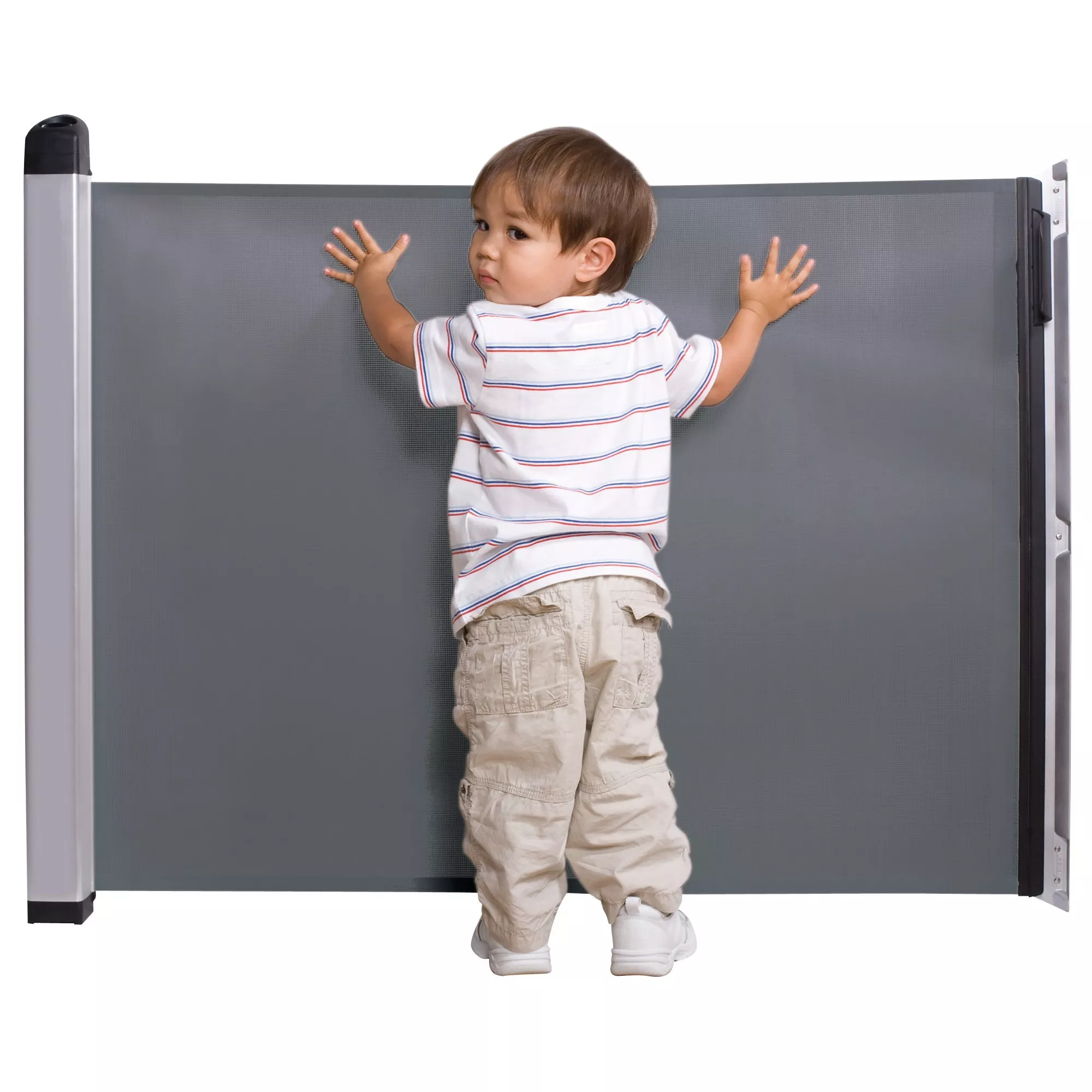 The elegant KiddyGuard Avant can be mounted inside door and stairway openings or on the wall in front of door or stairway openings and will fit openings up to 120cm wide. The mesh screen rolls into the aluminium casing and leaves the door or stairway free. There is no threshold, so there is no trip hazard.