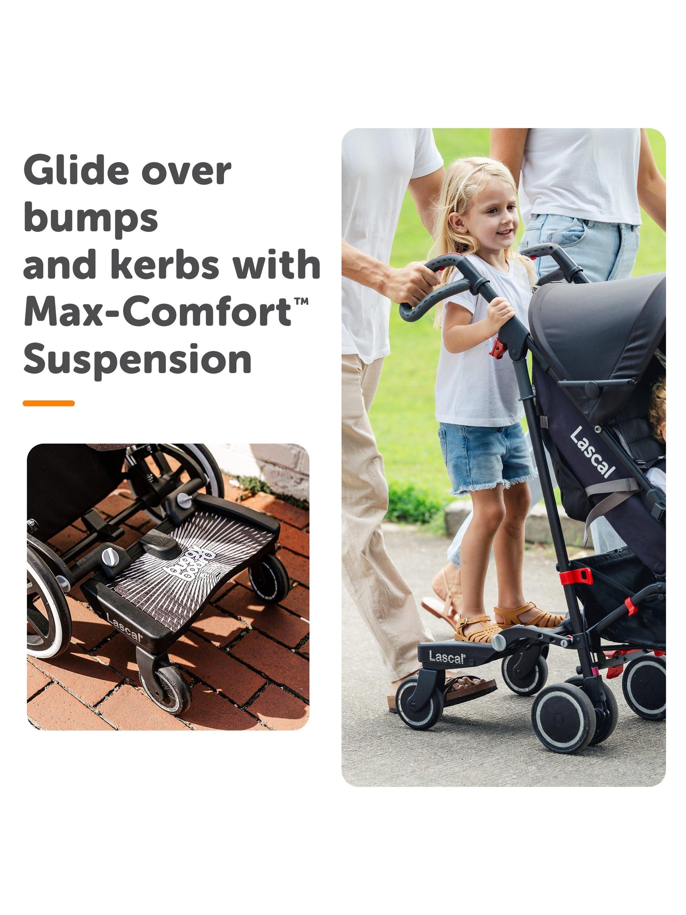 The Maxi BuggyBoard® is the perfect solution for getting around with more than one child. Packed full of ground-breaking design features, it is easy to fit to evolving pram and pushchair designs. Maxi BuggyBoards are easy to connect to virtually any pram or pushchair, including almost all single and double buggies, 3-wheelers and combination travel systems. It is compatible with 99% of pushchairs.