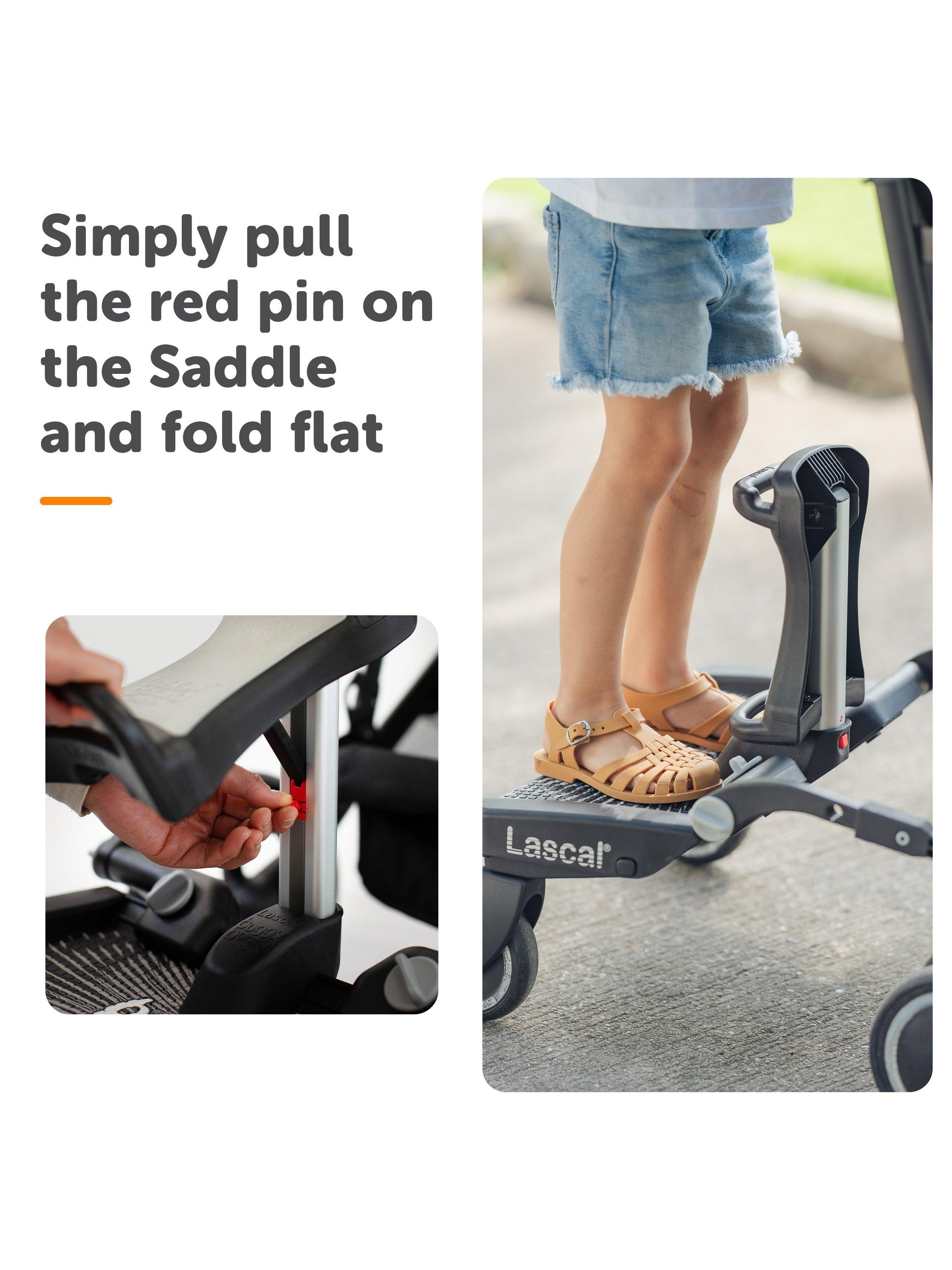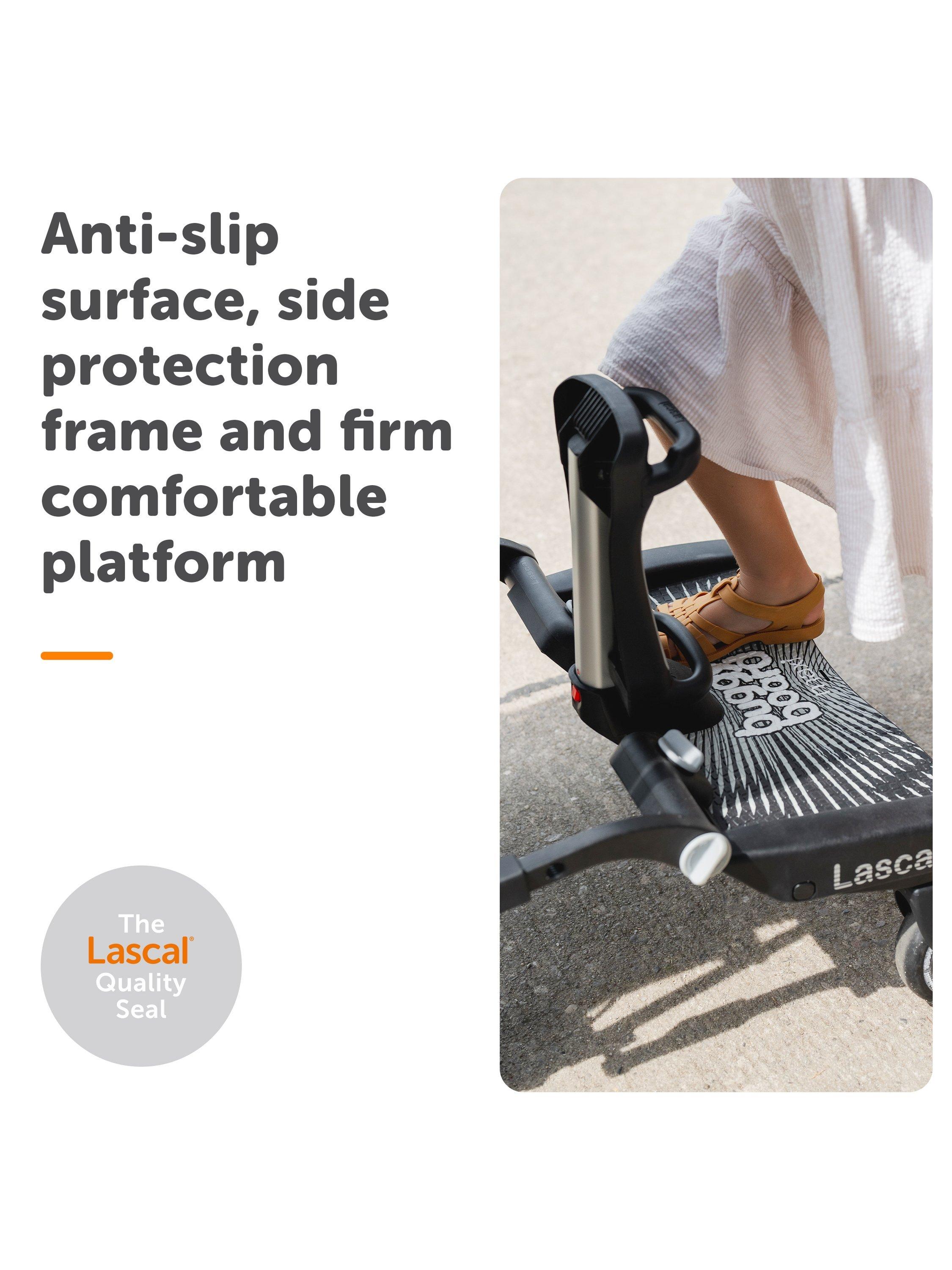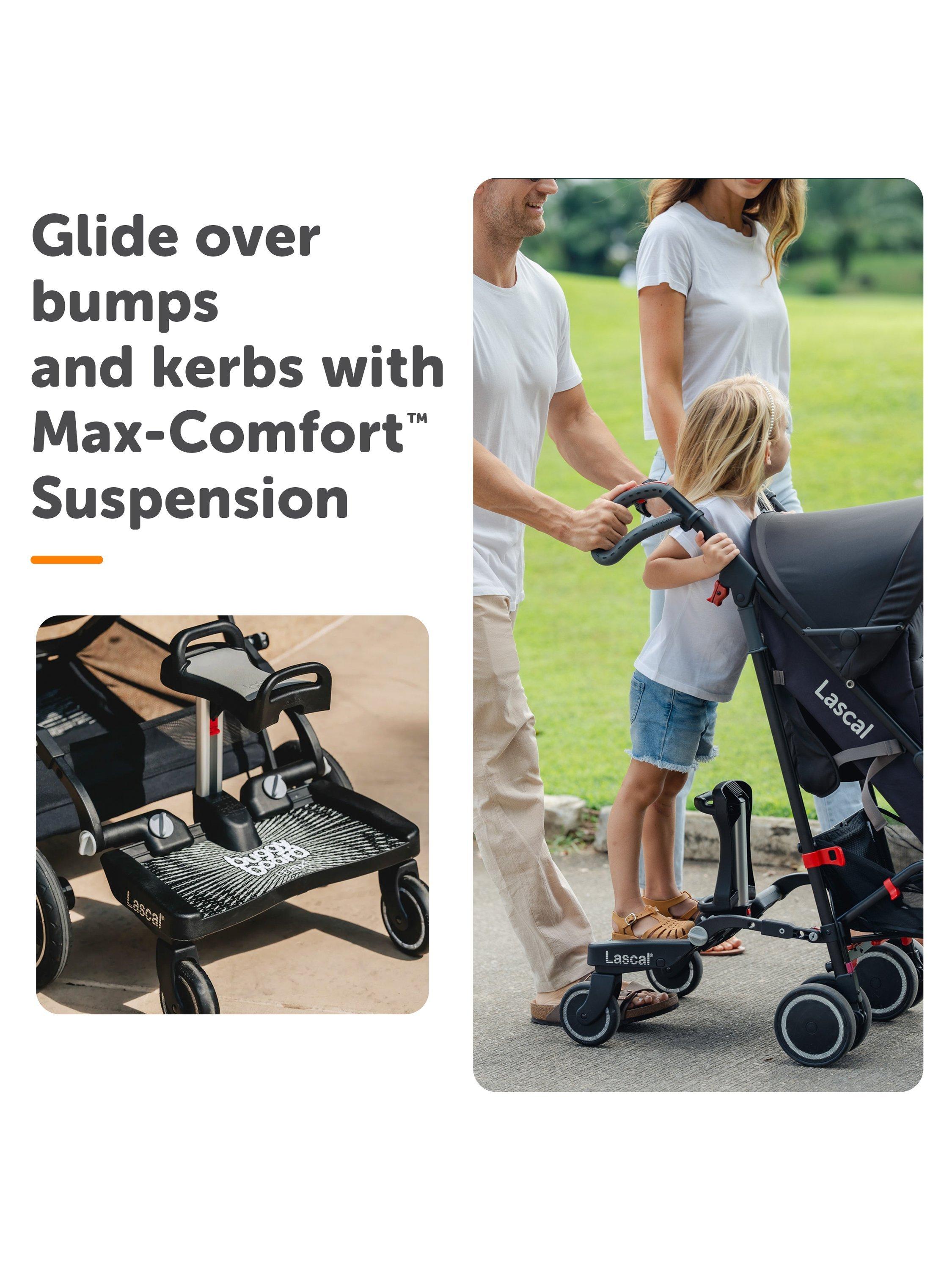- Extra large wheels make it easy to manouver the BuggyBoard® over kerbs and around corners, and also allow plenty of space for parents feet when walking beind the BuggyBoard®.