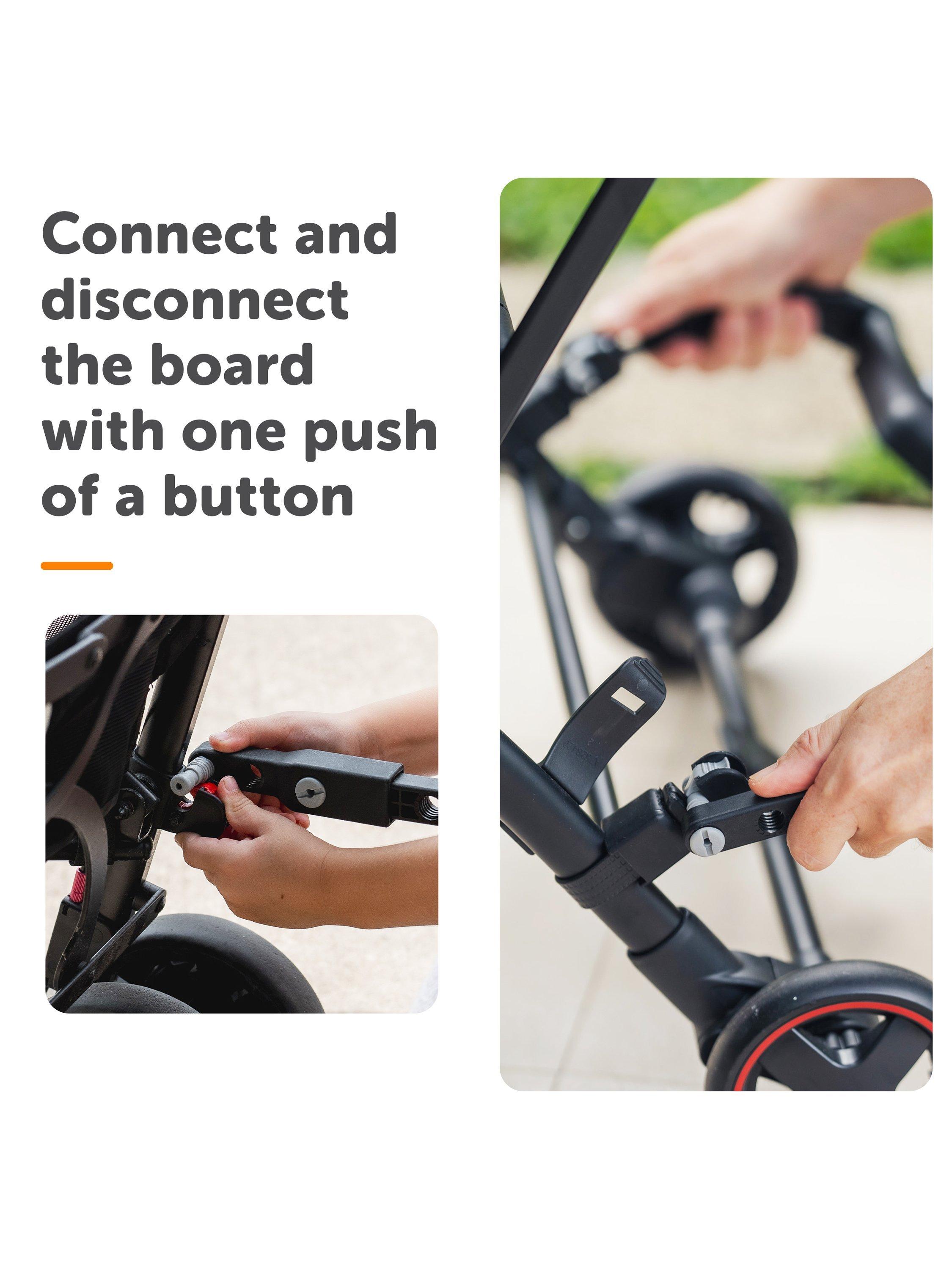 - Intuitive easy-fit ™ system, with quick release to easily take board on and off, or swap between different buggies