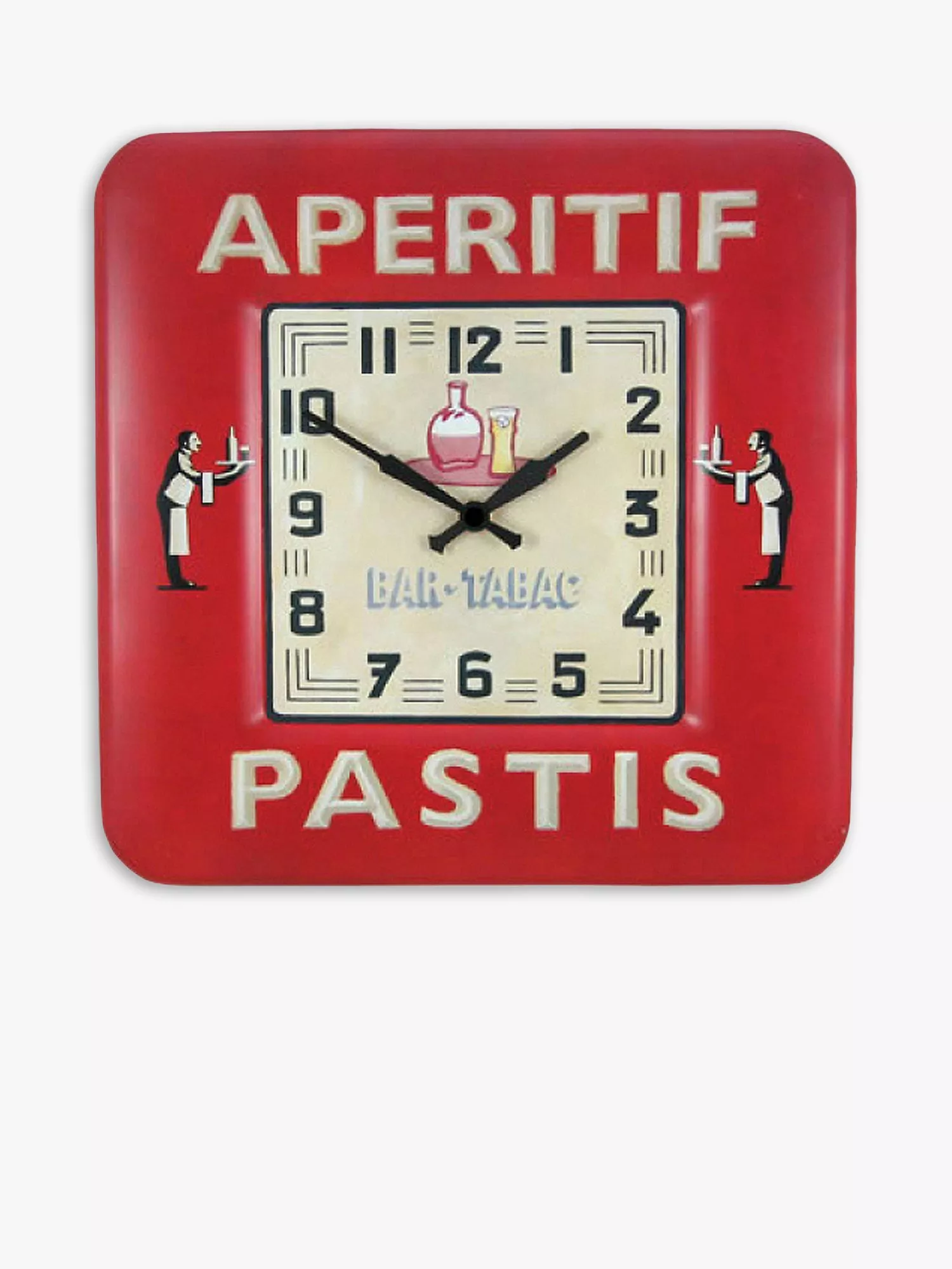 Taking inspiration from the French bistros of the 1930s, this square clock is a vibrant, retro addition to any modern kitchen. Its bright red border and pastis theme make it a perfect throwback feature for any fashionable home.