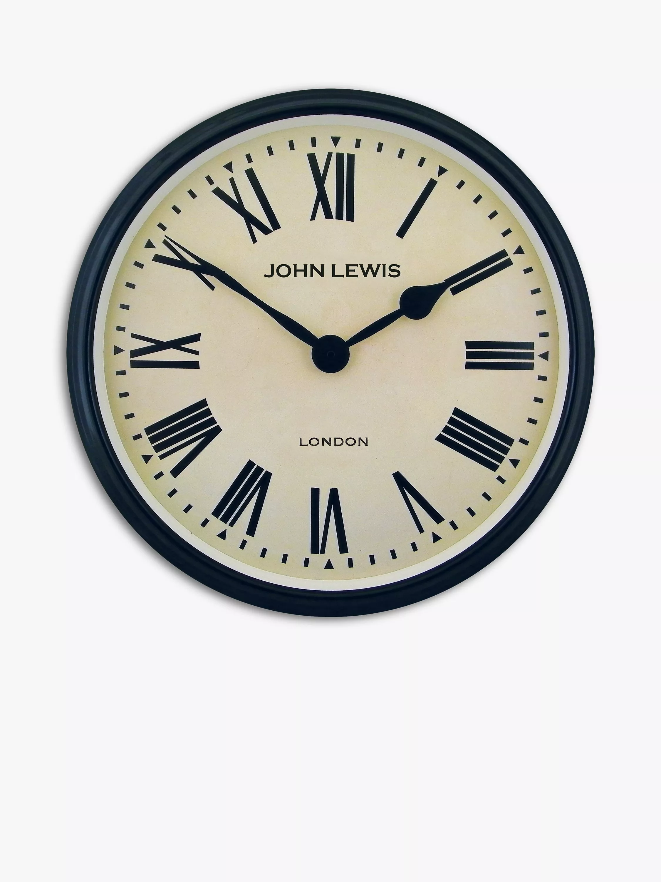 This oversized wall clock has a black gloss barrel case, 8cm deep, with vintage-style clock hands. Making a unique present, each clock is hand-assembled and packaged in a box with branding from clockmakers Lascelles.