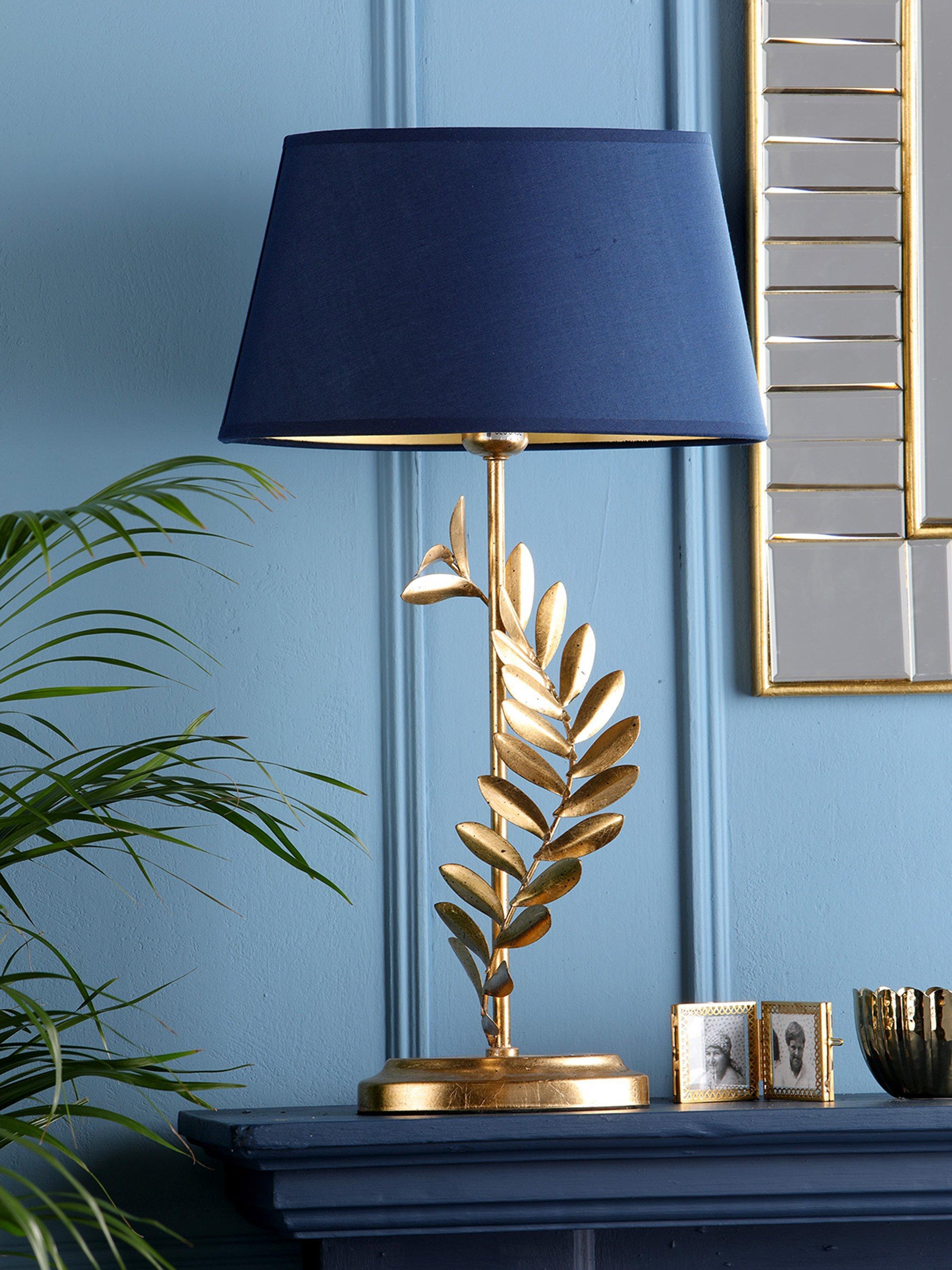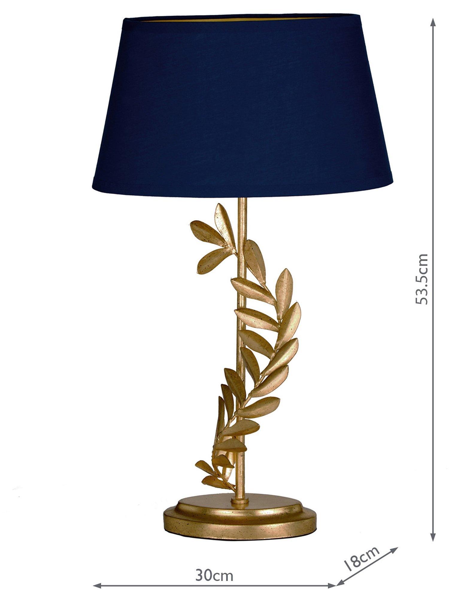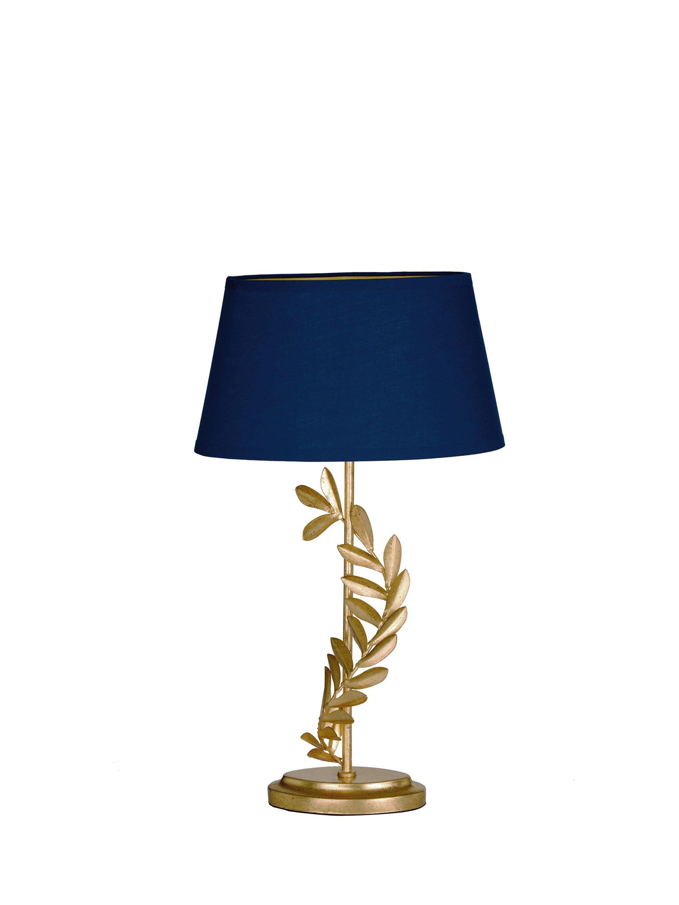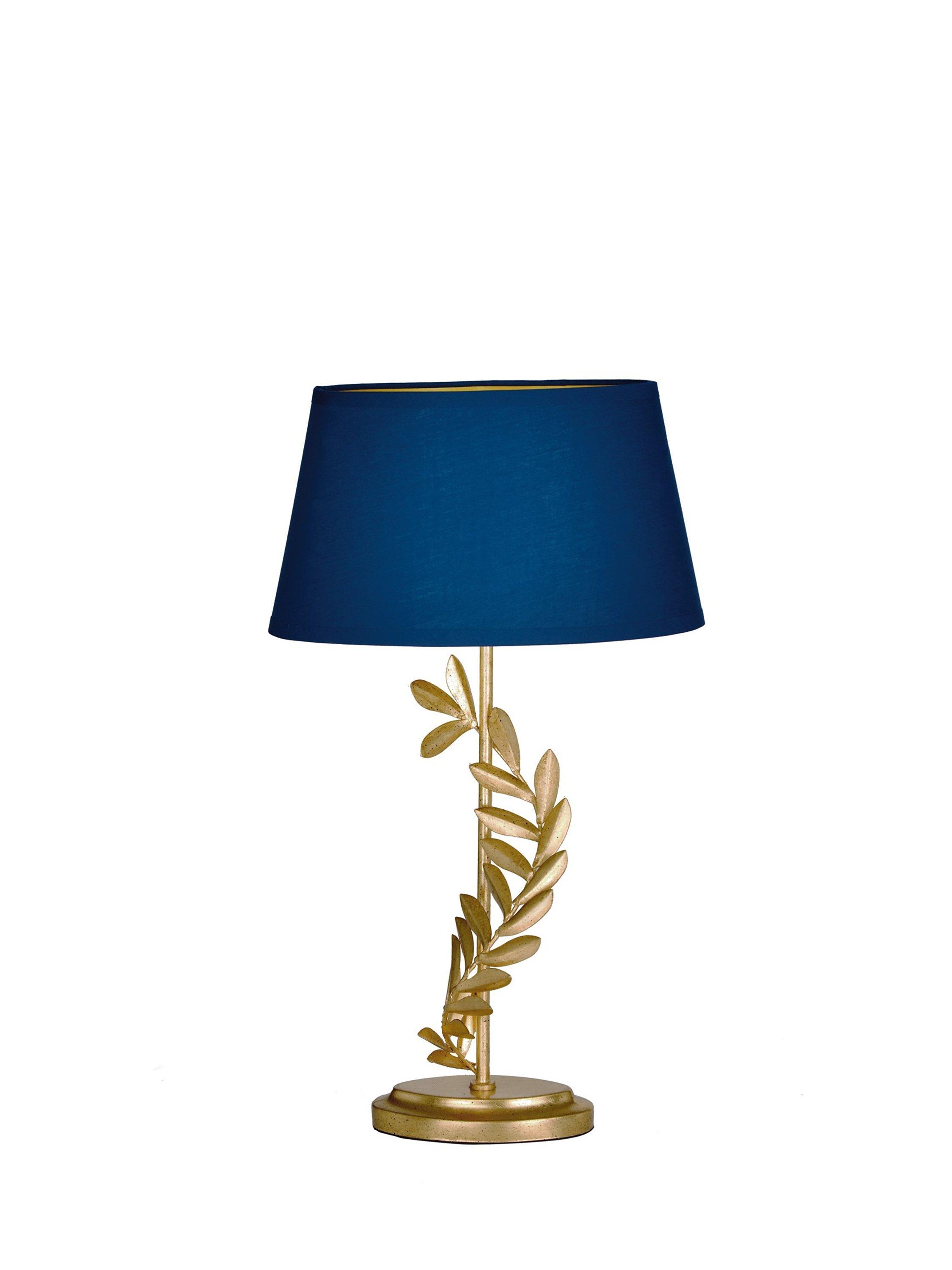 This decorative table lamp will draw the eye thanks to its gleaming gold leaf finish and elegant sculptured shape. Teamed with a tapered lampshade in a deep colour, it's a brilliant option for living spaces or bedrooms and one LED bulb is required.