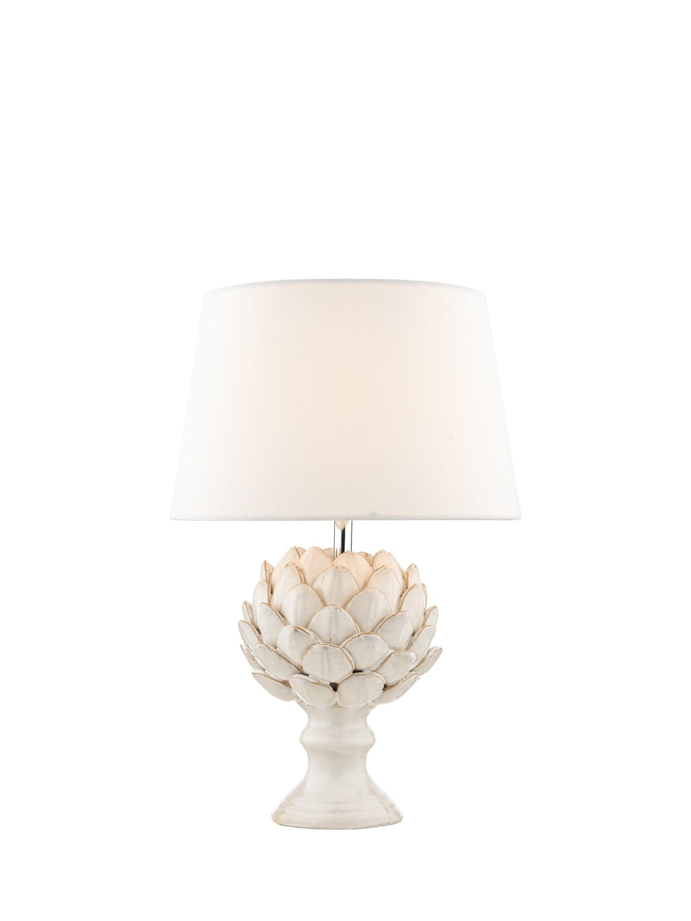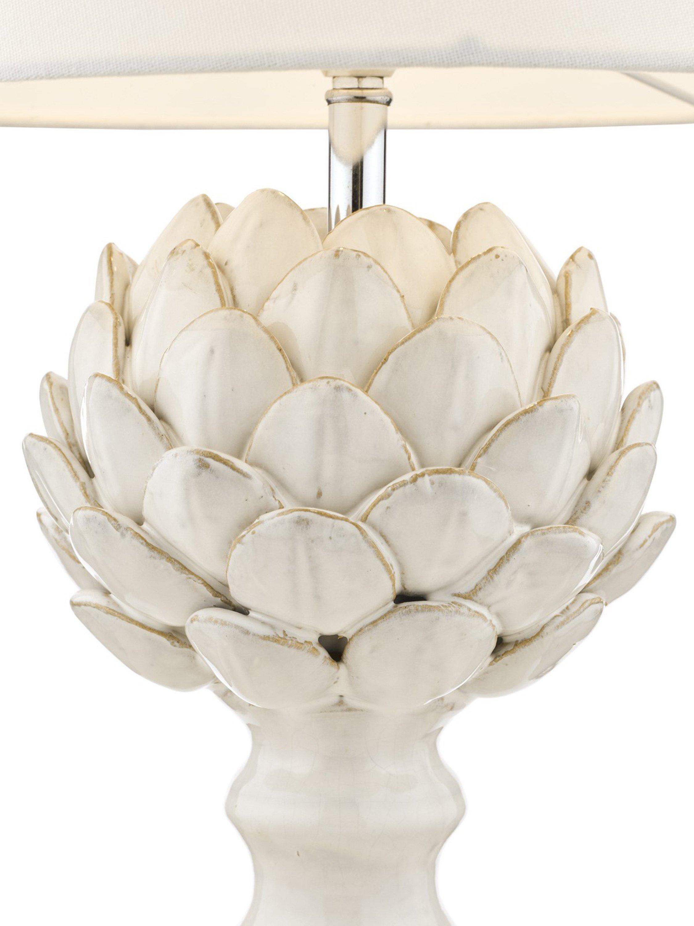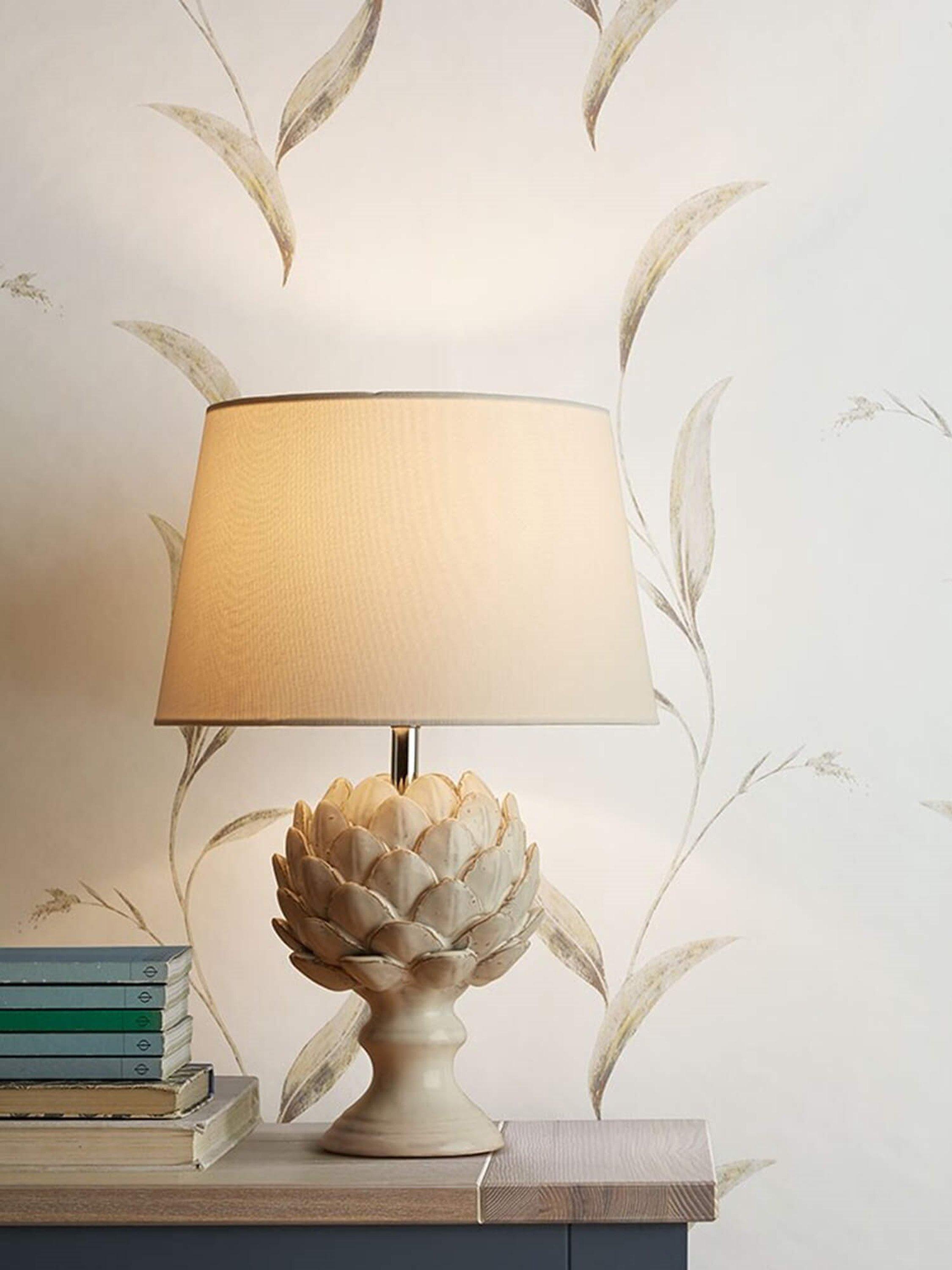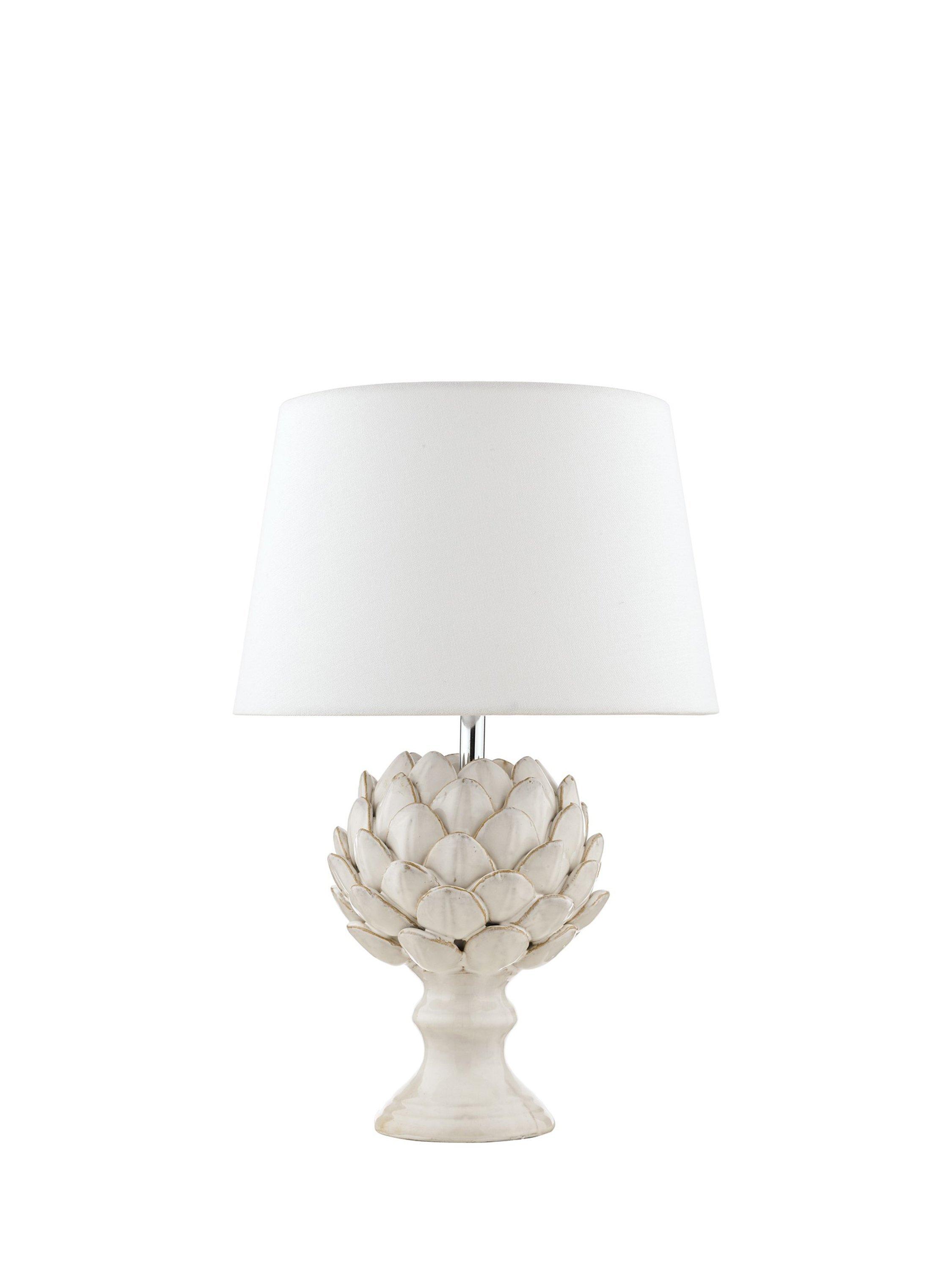 A ceramic table lamp with a quirky twist. Yes, inspired by the artichoke itself, this table lamp has a gloss-glazed finish that highlights the colour and shade variations of the curvy vegetable. It's teamed with a natural linen lampshade that enhances a warm glow of light and it will draw the eye wherever you style it in your home. One LED bulb is required.