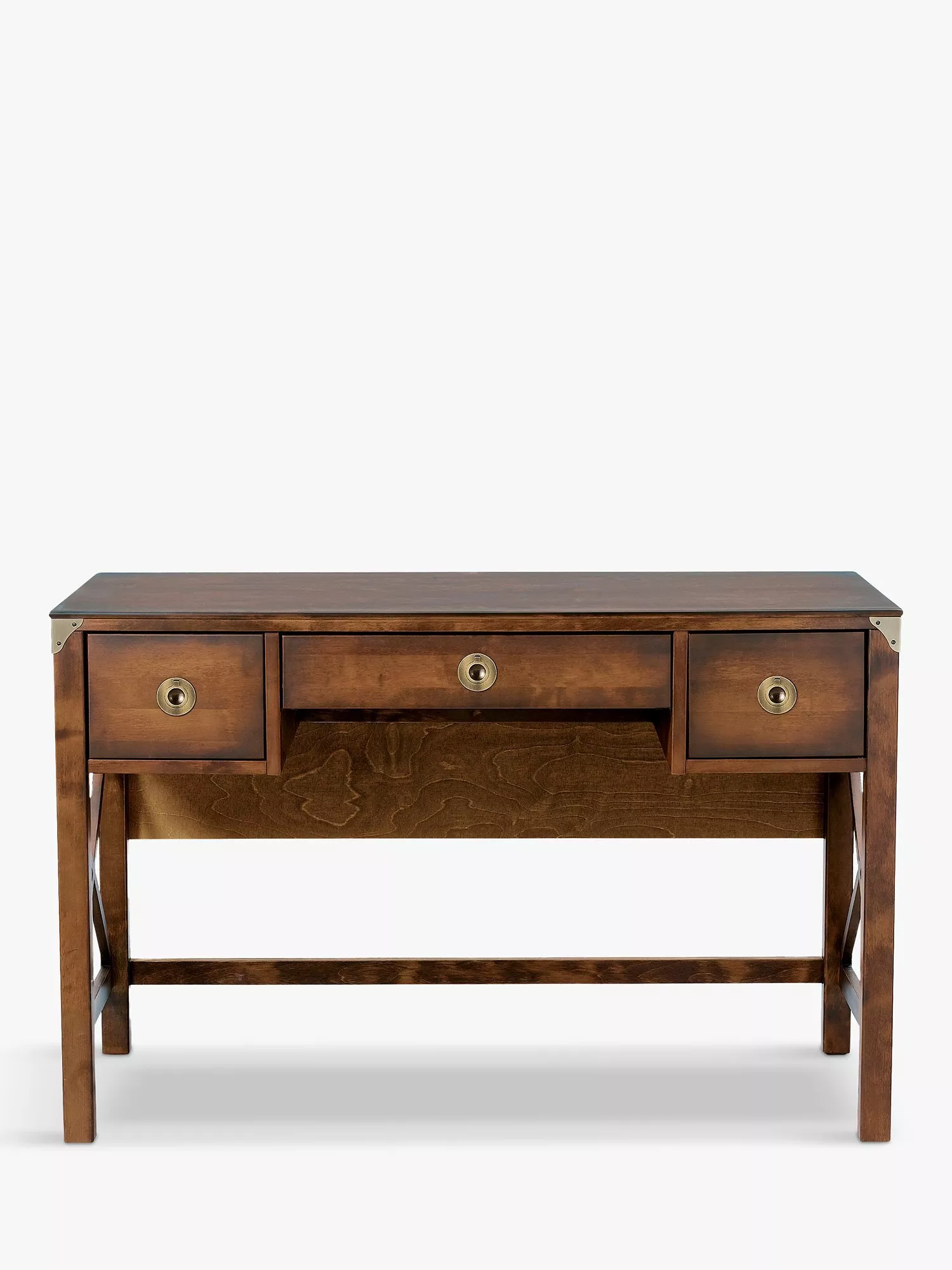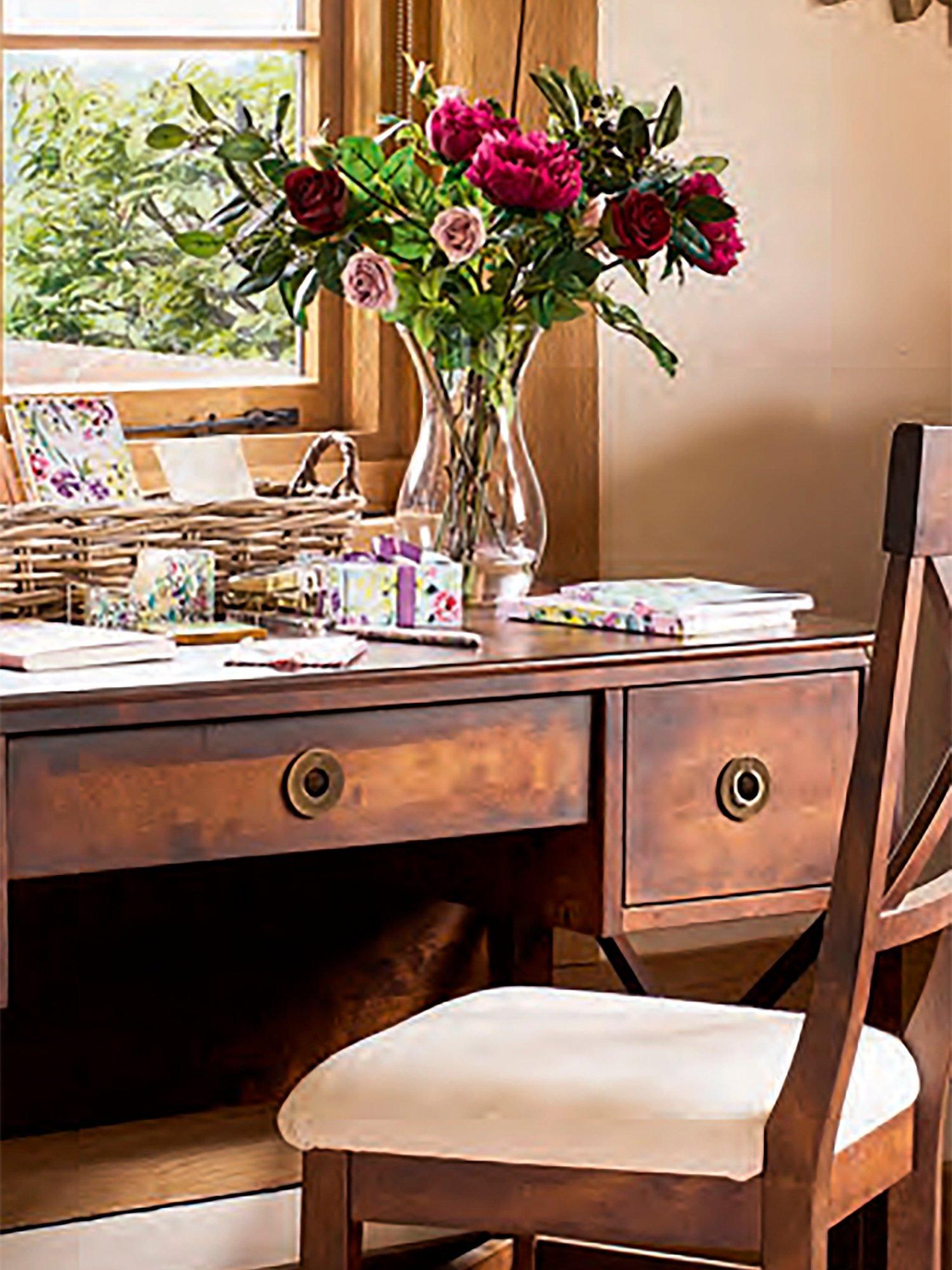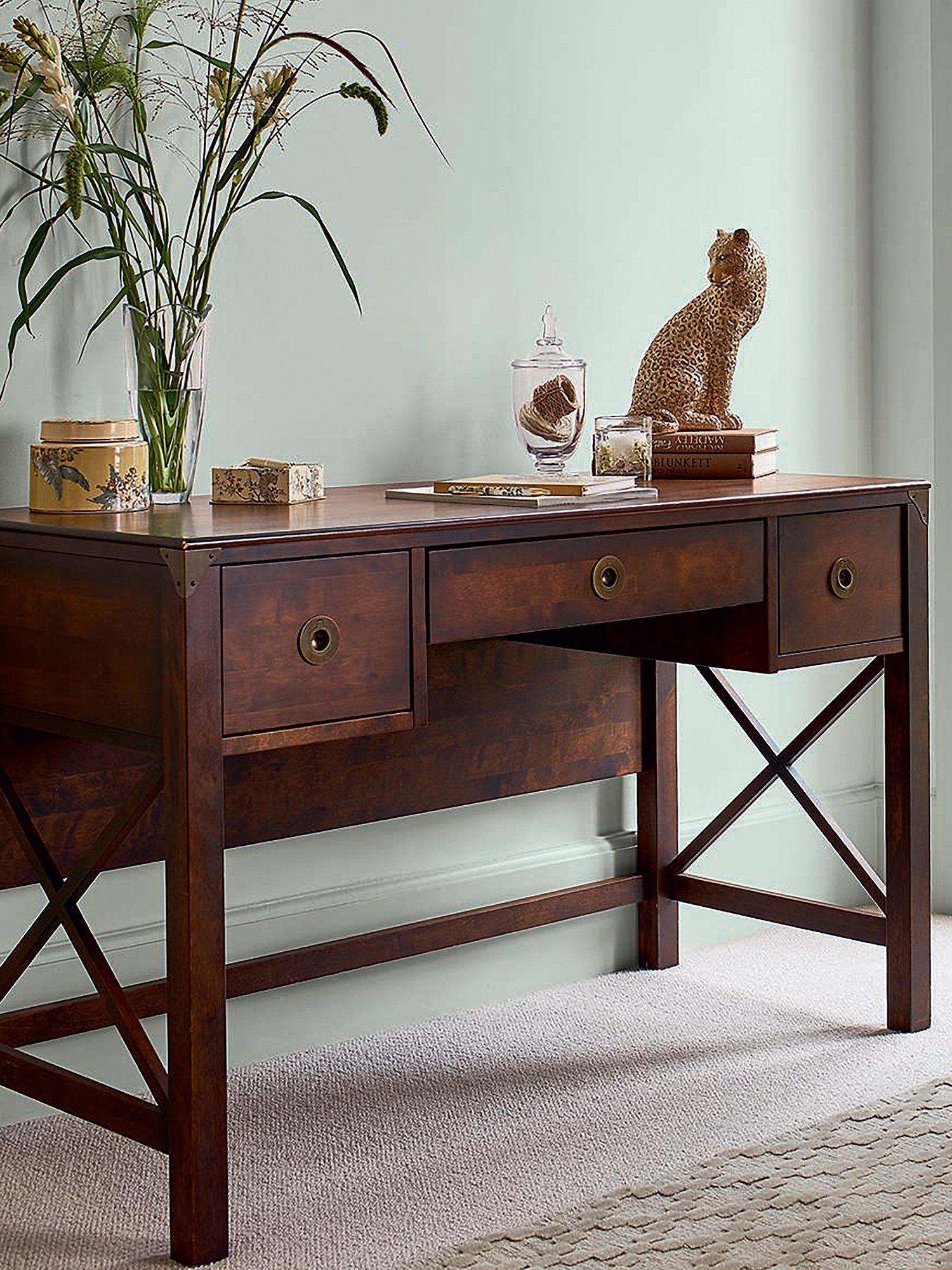 While it may epitomise traditional design, Laura Ashley's Balmoral desk addresses the need of the modern home worker thanks to a central drop front drawer which can accommodate a keyboard. Made from solid birch wood with metal hardware detail, this large desk offers storage space for your documents as well as a generous surface to work and place monitors. Note the cross design on either side of the frame which nods to its robust construction and classic aesthetic.