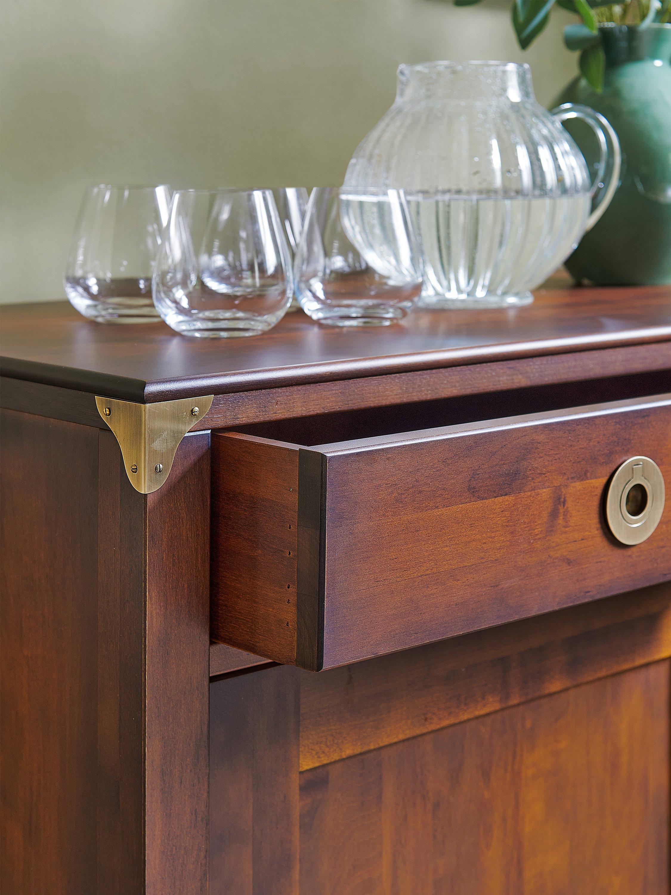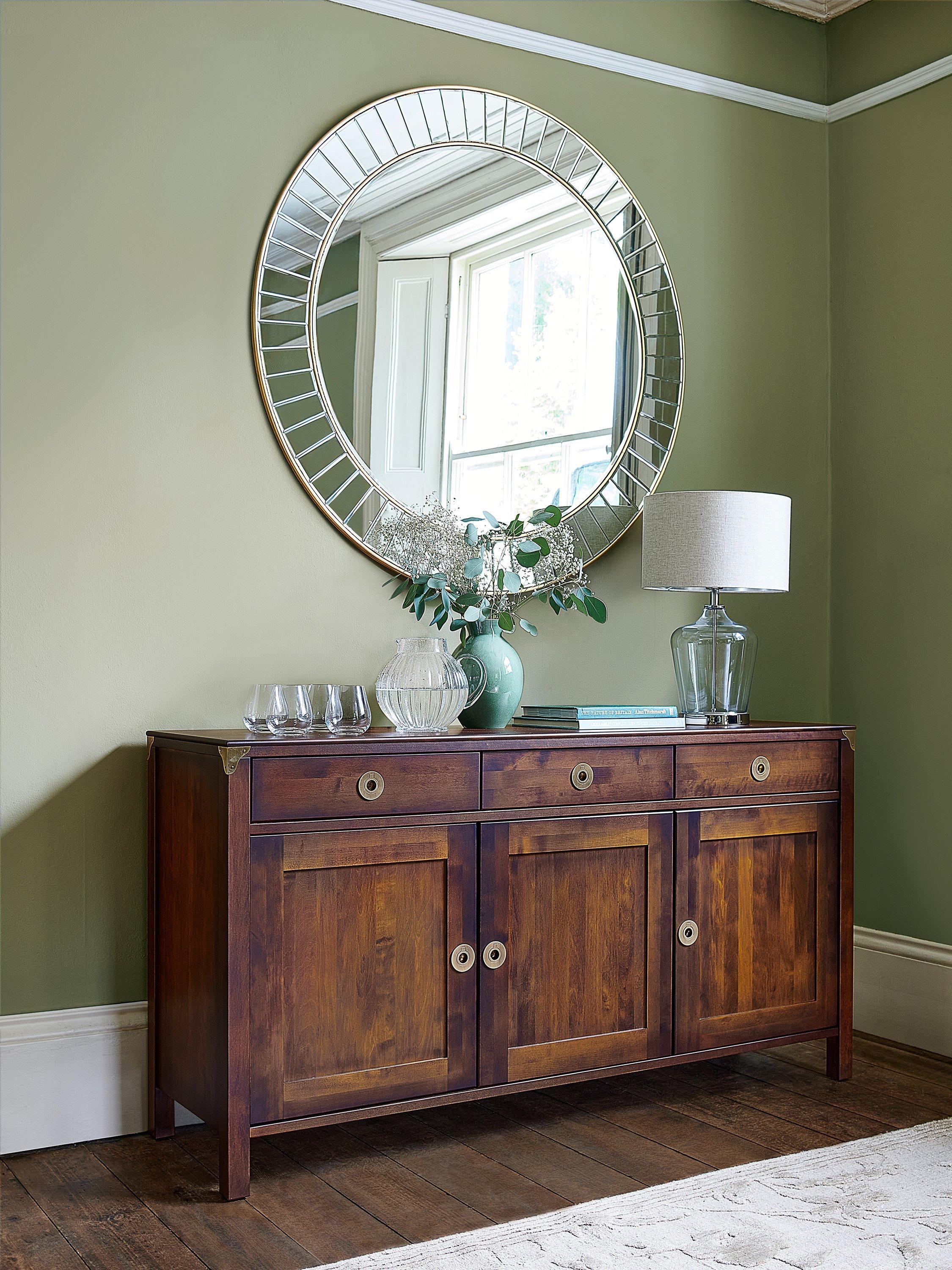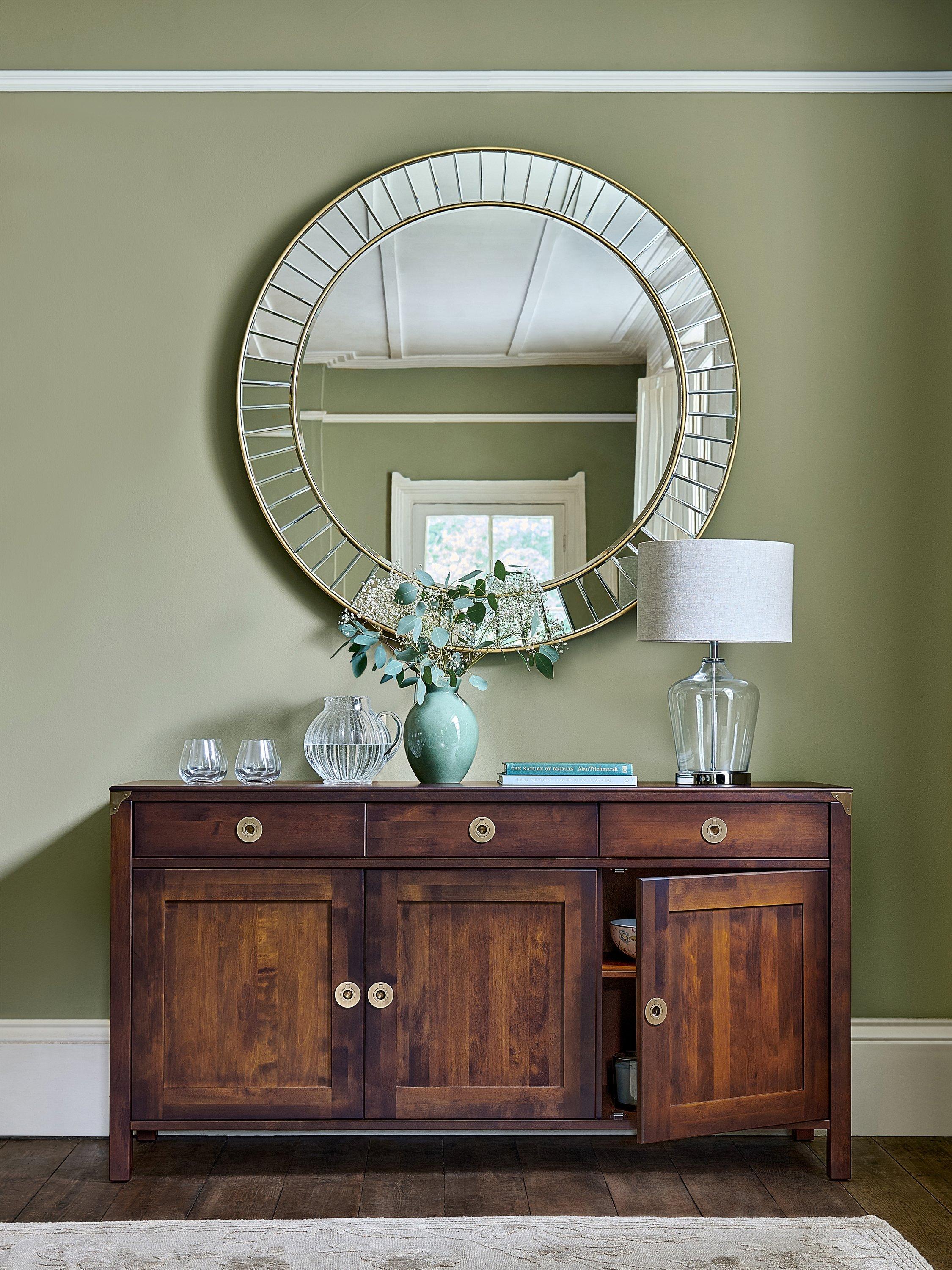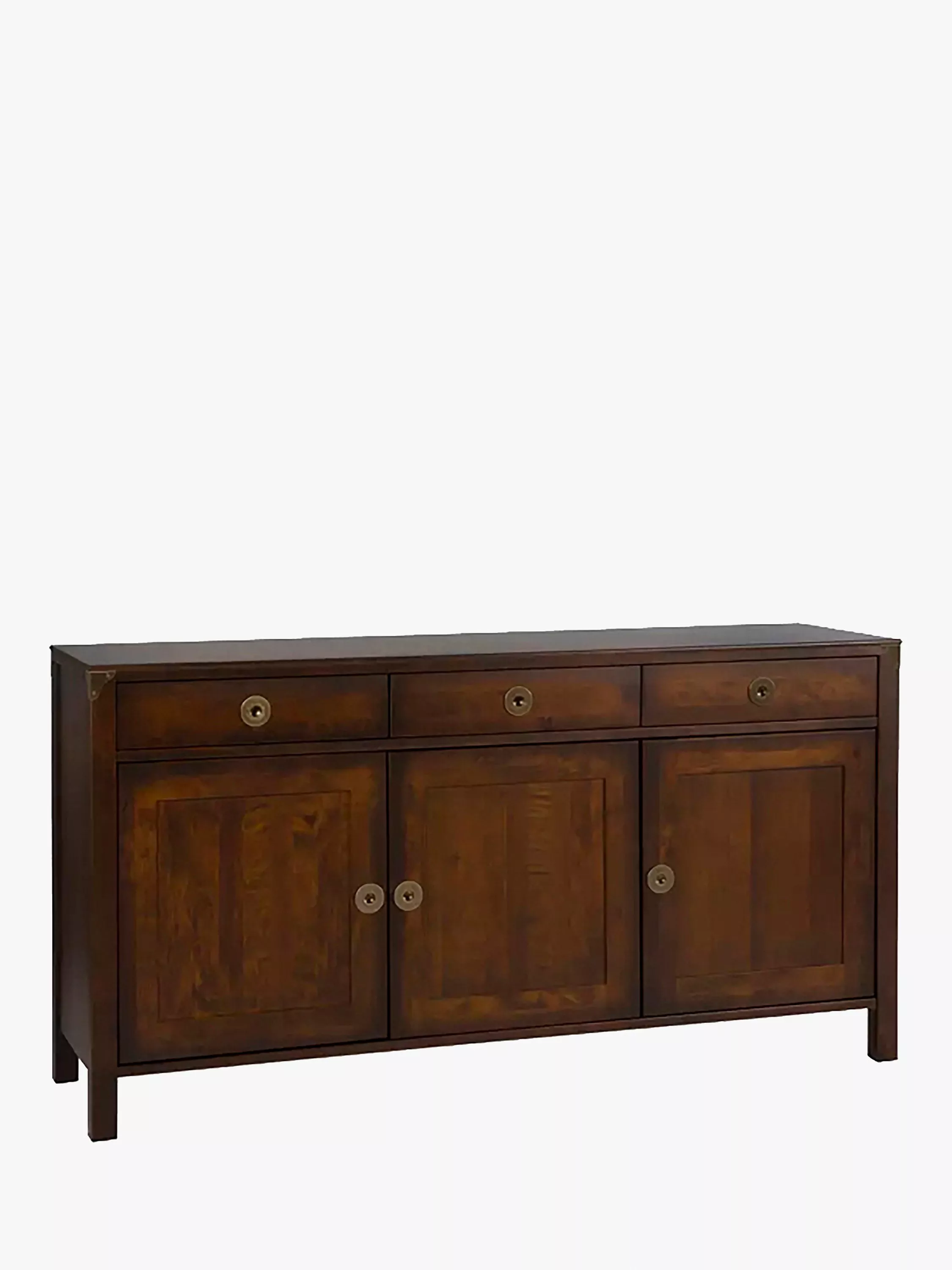 Made from solid birch and birch veneers with a hand-applied patina to highlight its natural grains and knots, this large sideboard provides a helpful amount of storage thanks to three drawers and a spacious cupboard section. While its design may suit traditional interiors, note the accents of antique-brass hardware. This gives it a retro, Art Deco edge and complements the warm colour and tone of the wooden frame. And even better? There are adjustable shelves inside so you can keep everything organised.
