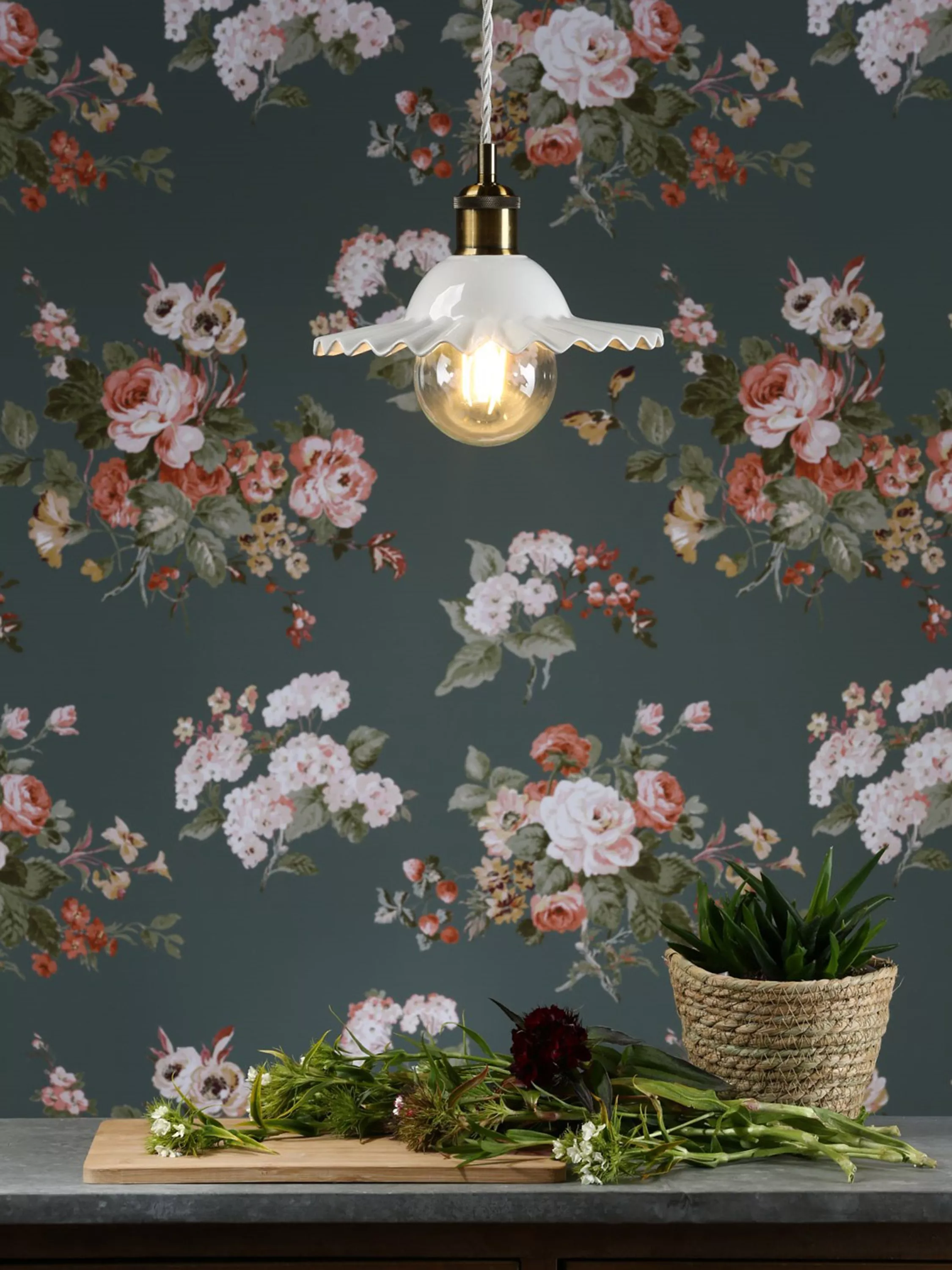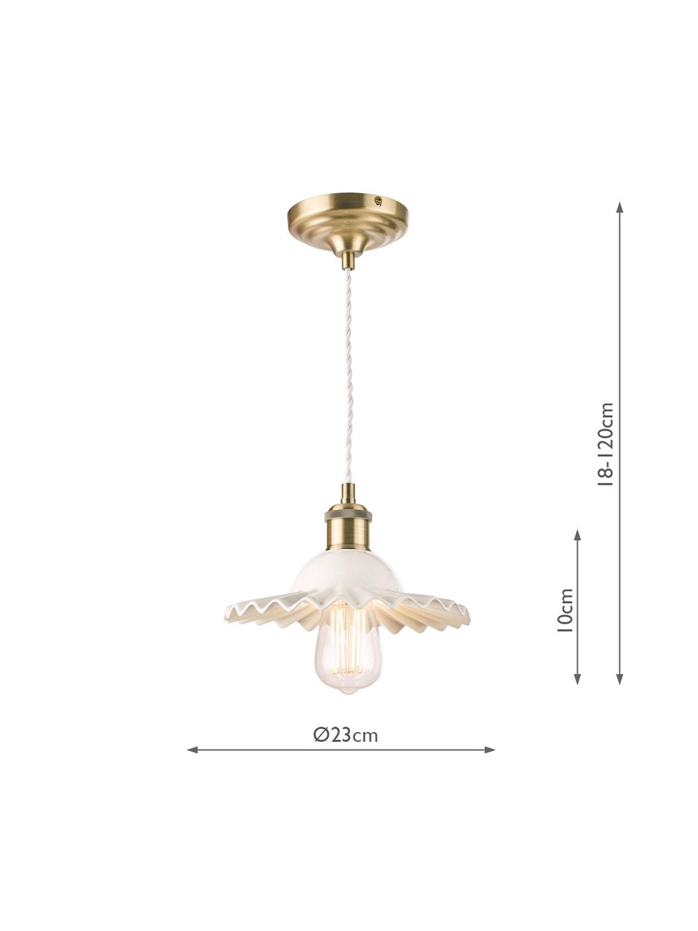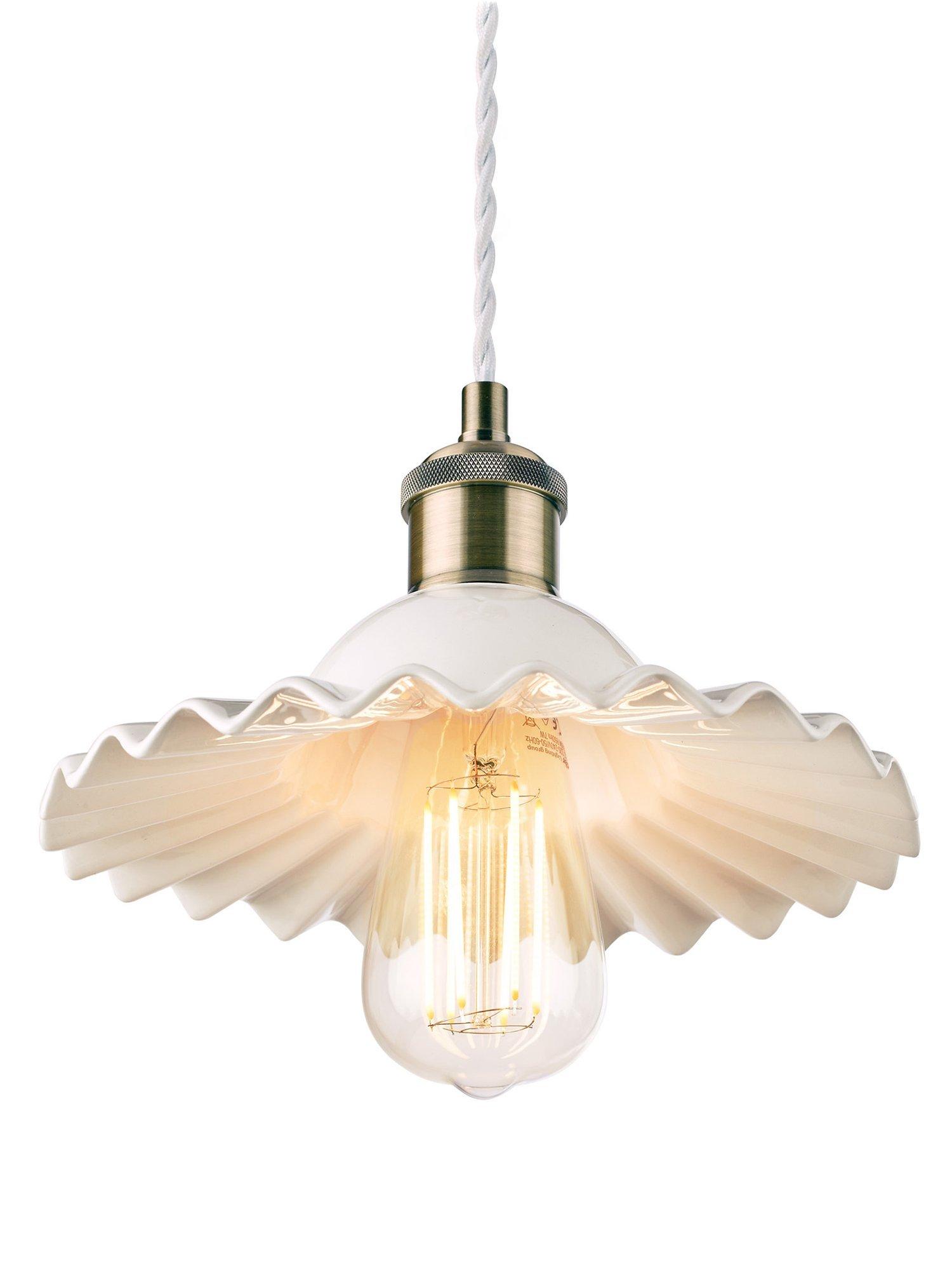 A pretty ceiling light, made from thick ceramic in a gloss-glaze finish. Its shape is reminiscent of a clam shell, with pretty undulations creating light and shadows, and it's accented with antique brass-finished metal fittings. It's height-adjustable at the point of installation and one LED bulb is required. Choose a vintage or rustic bulb with a decorative filament to make it even more eye-catching in your space. Also available in a larger size.