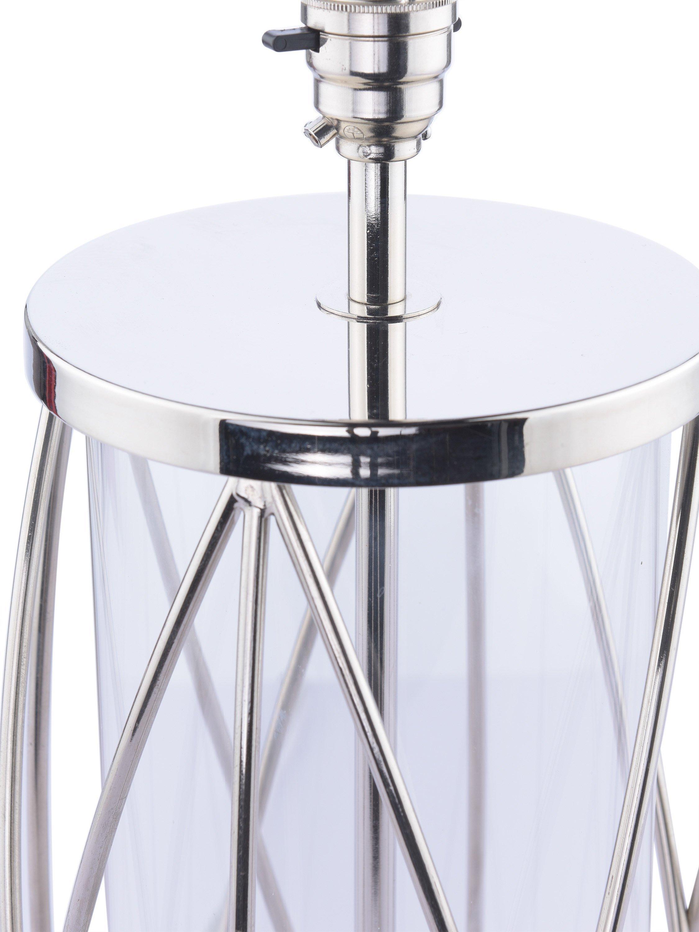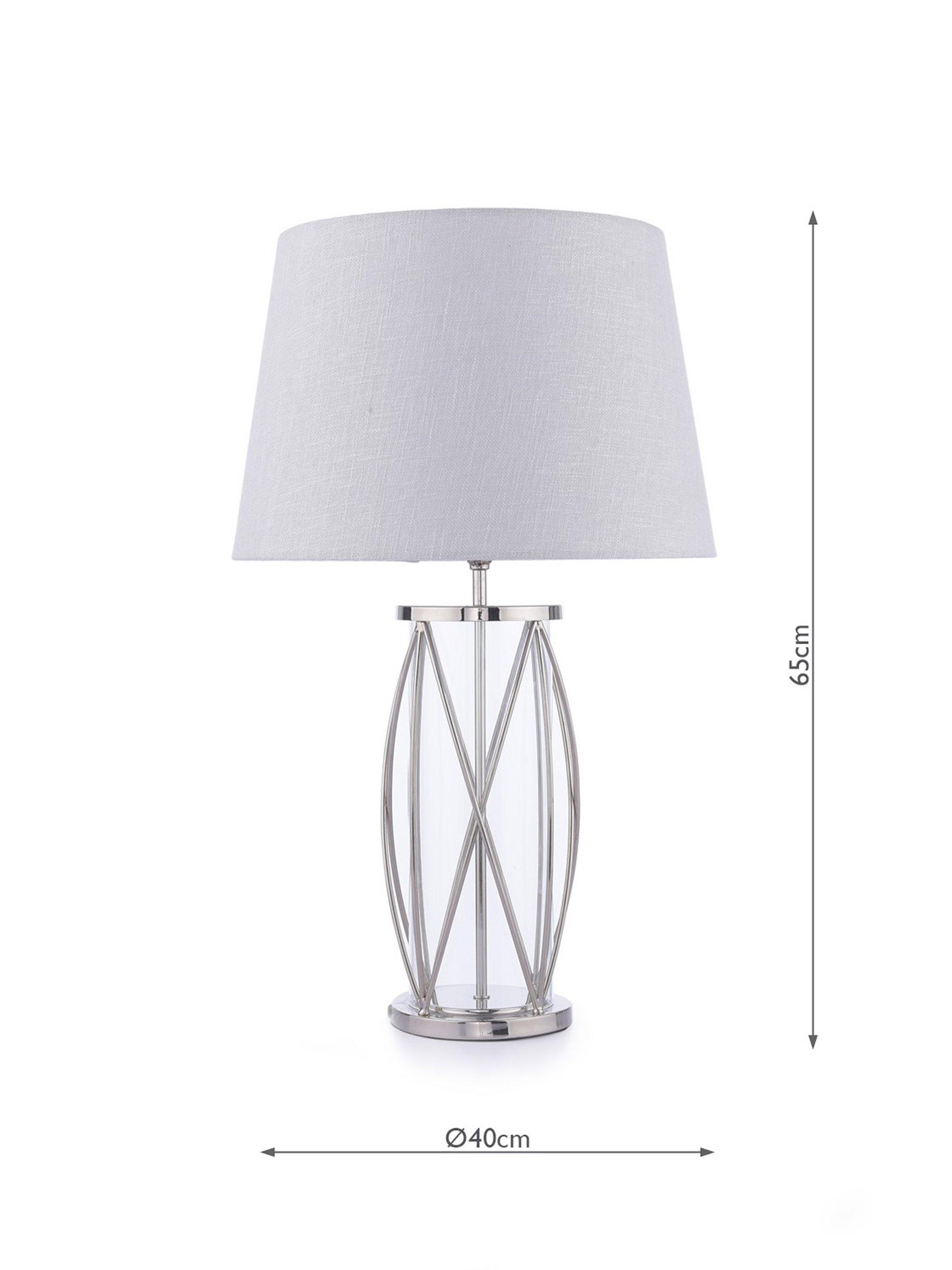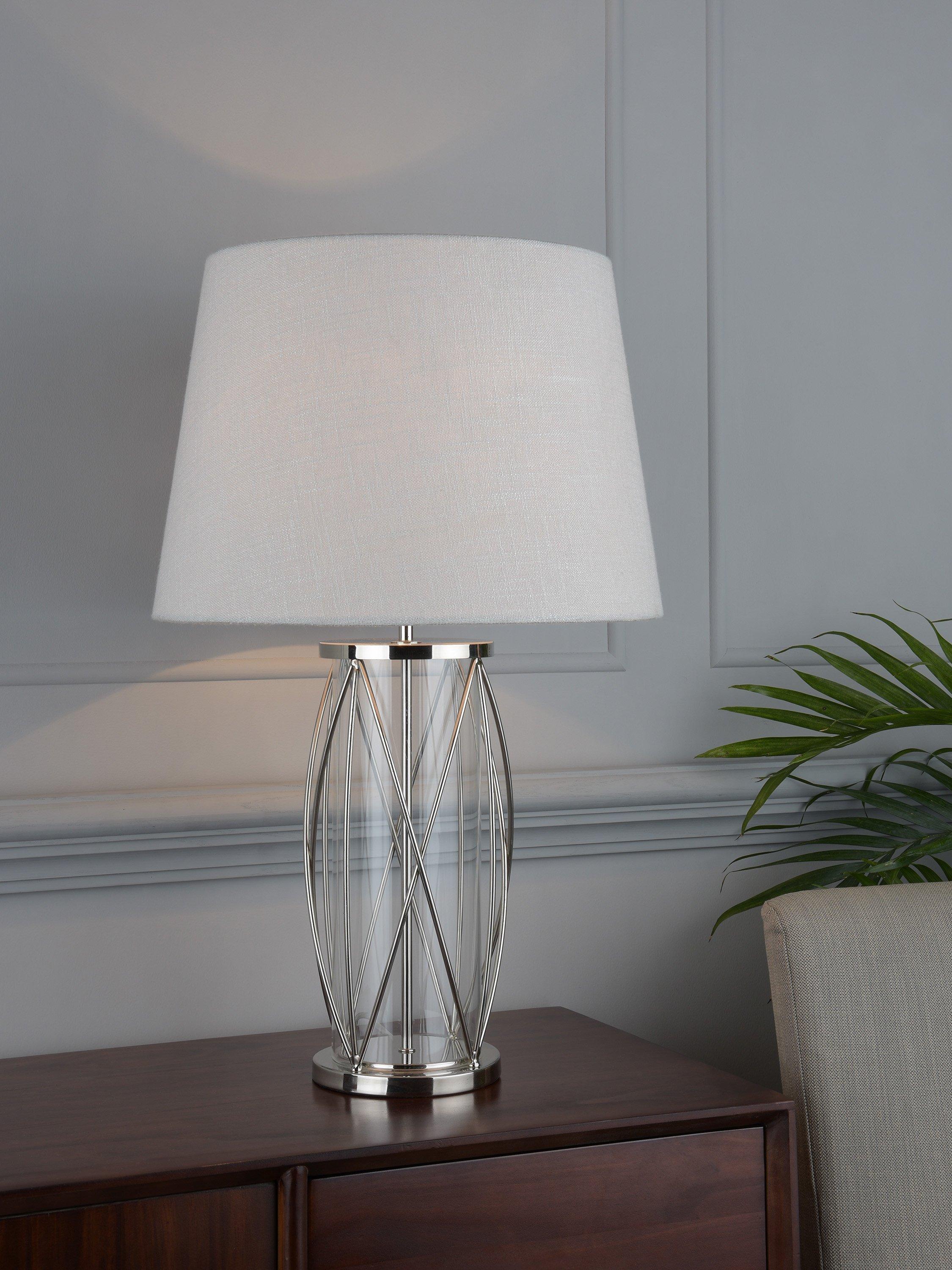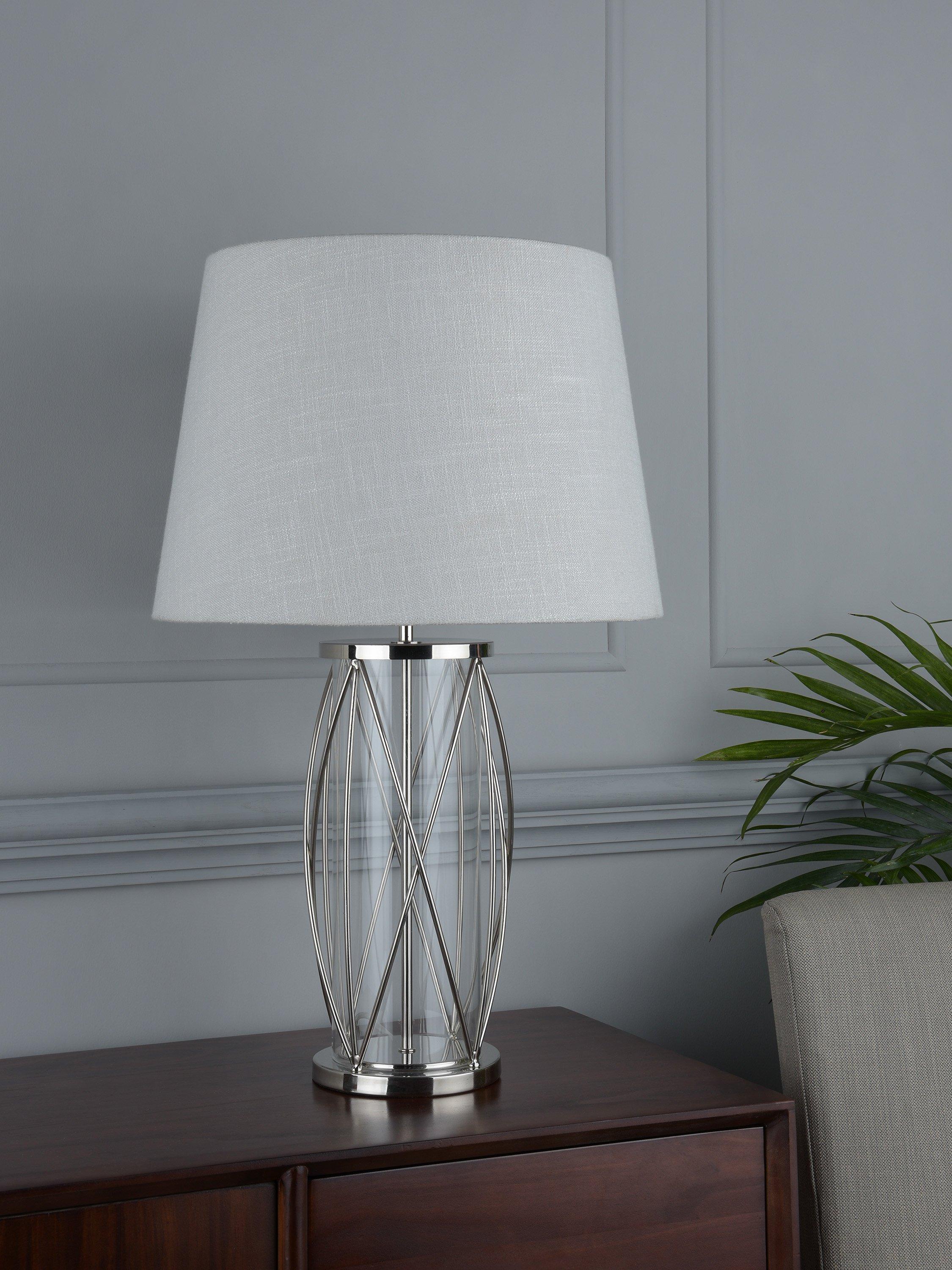 The glass base of this table lamp is encased in a metal frame that has a slick, lattice design. It's teamed with a natural linen lampshade that enhances a warm glow of light. What's best, it offers two different looks when switched on and off. A brilliant option for living spaces.
