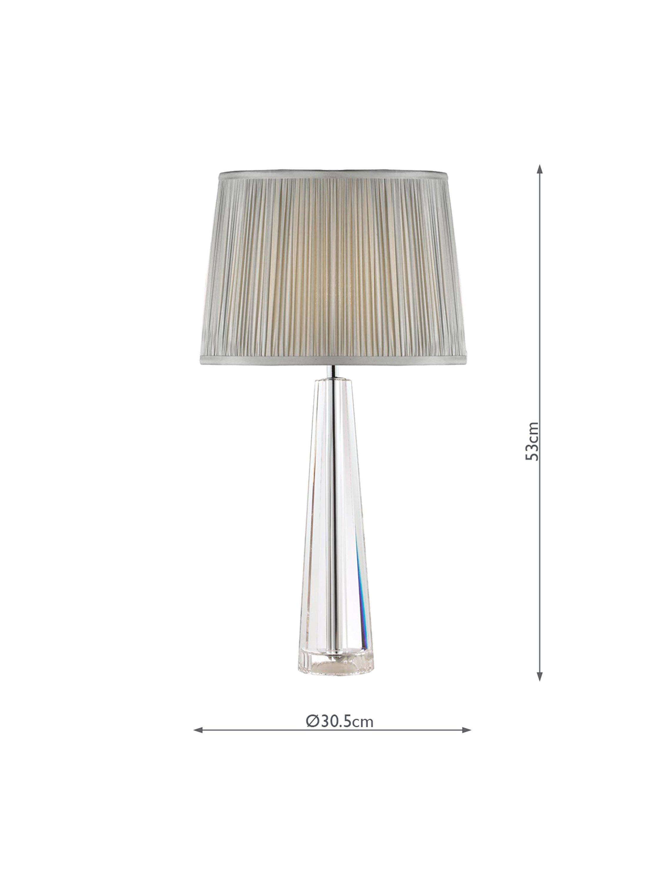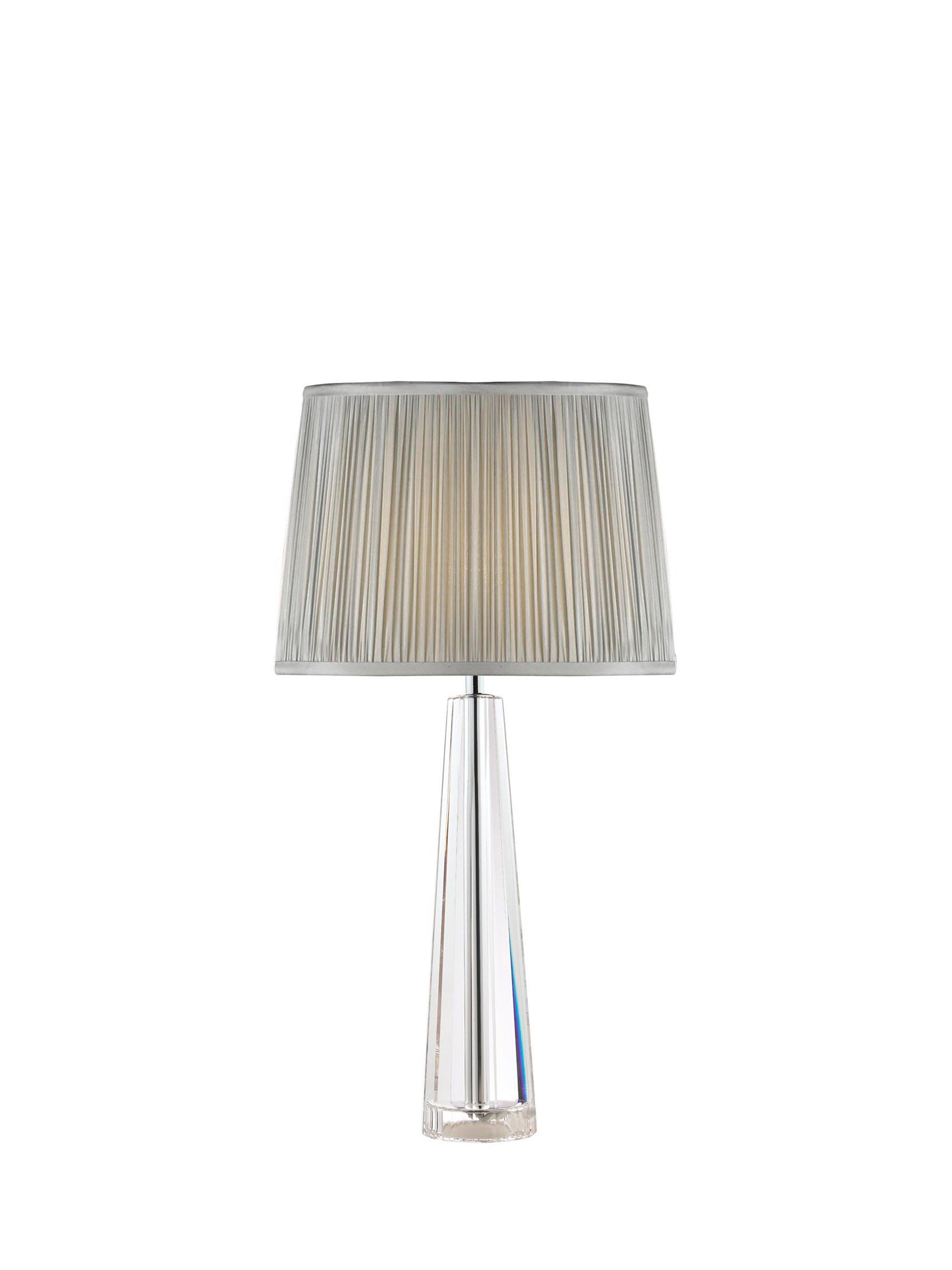 The Laura Ashley Blake table lamp is beautifully made from clear-cut crystal glass with four faceted walls which taper like an Egyptian obelisk. It's perfectly complemented with the Laura Ashley Hemsley charcoal grey, pleated shade that is made from silk and creates a warm glow of light. A brilliant choice if you want to create ambience in your space.