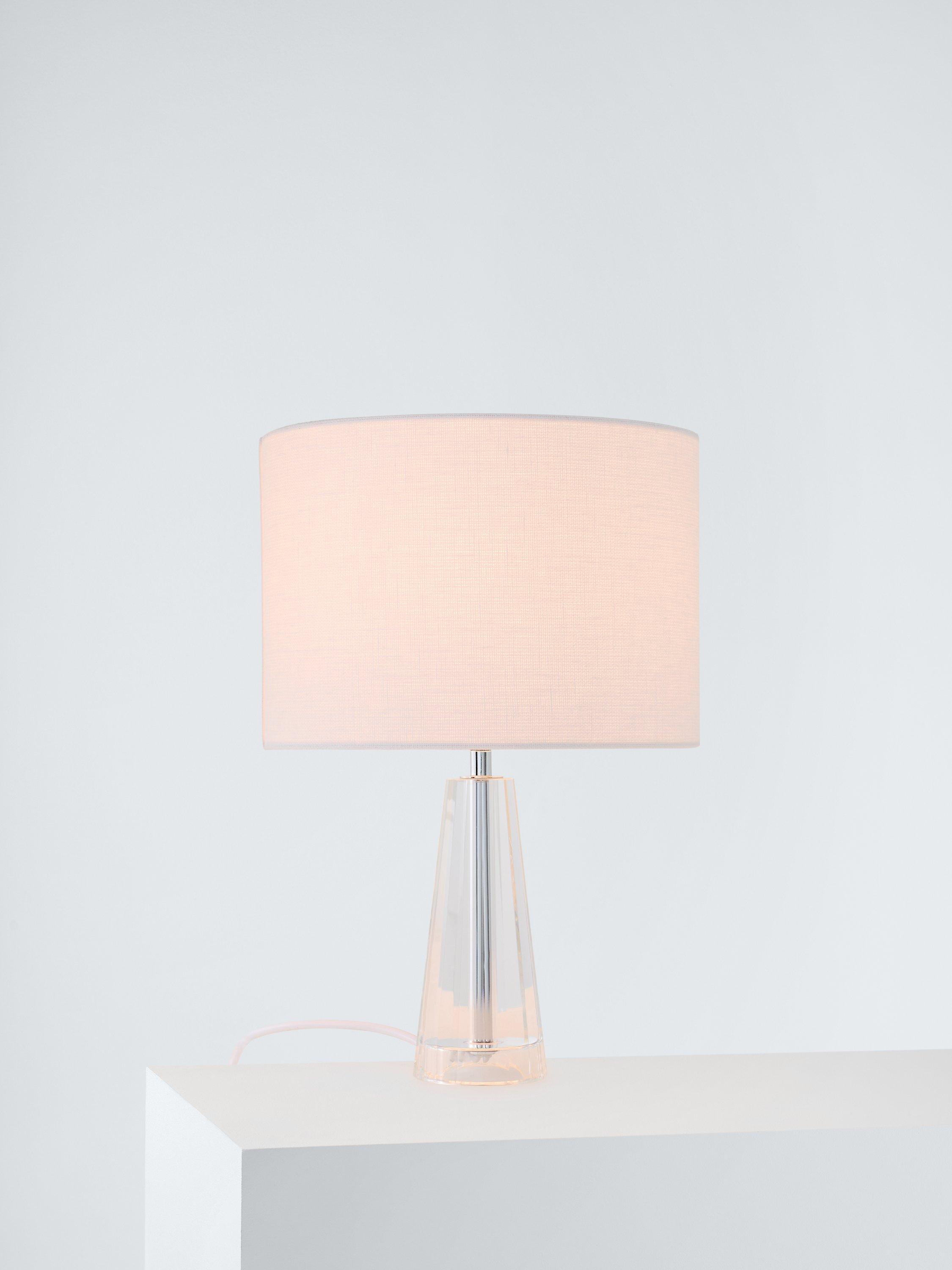 The base of this petite table lamp is beautifully made from clear-cut crystal glass with four faceted walls which taper like an Egyptian obelisk. It's perfectly complemented with a pleated empire drum lampshade that's made from silk and enhances a warm glow of light. Plus, this petite version is compact and elegant, making it a great choice for bedside tables.