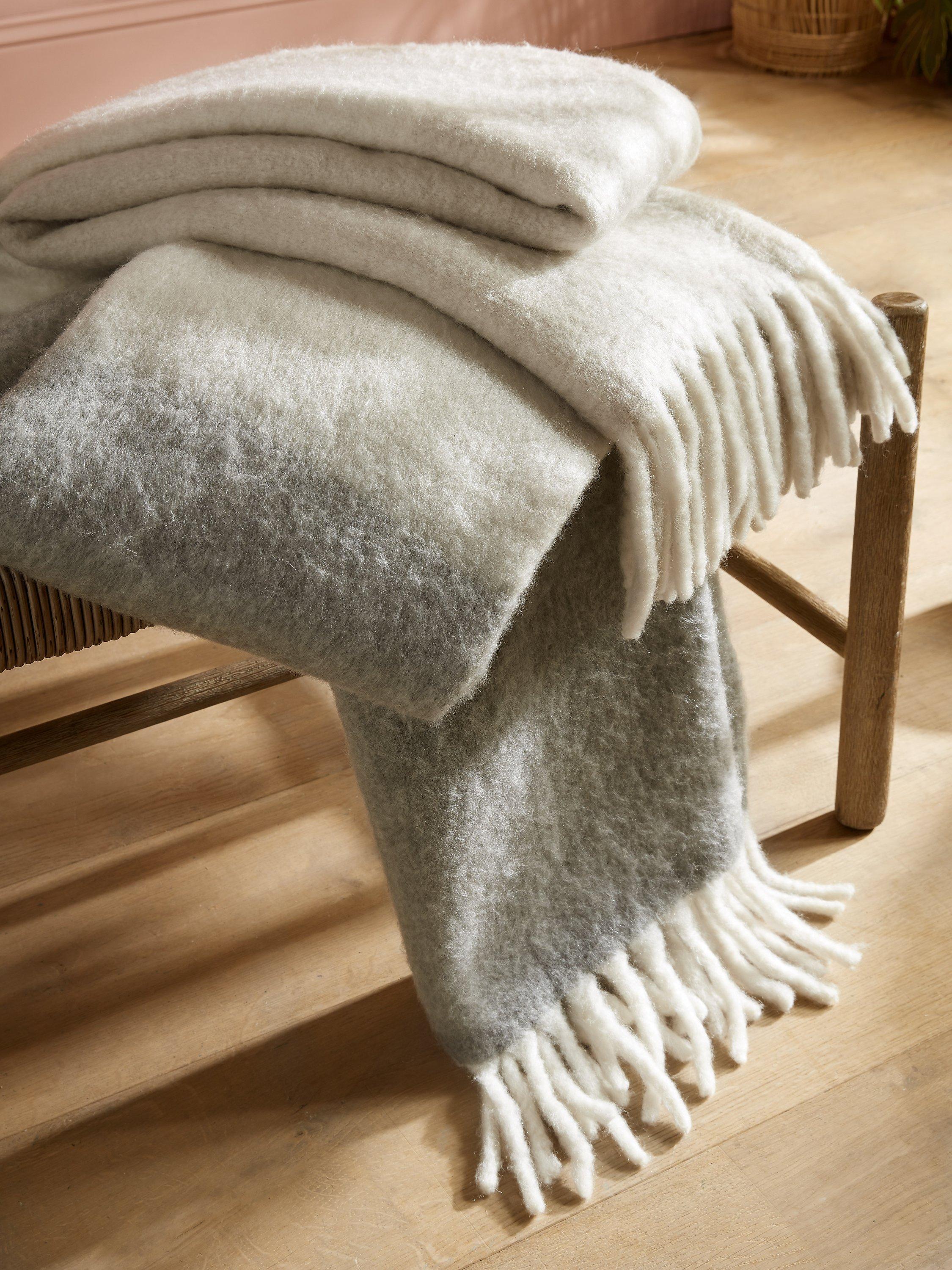 Add cosiness to any room with this luxuriously soft woollen blend throw. Woven in two complementing natural tones, the Bronwen throw is finished with soft, chunky tassels.
