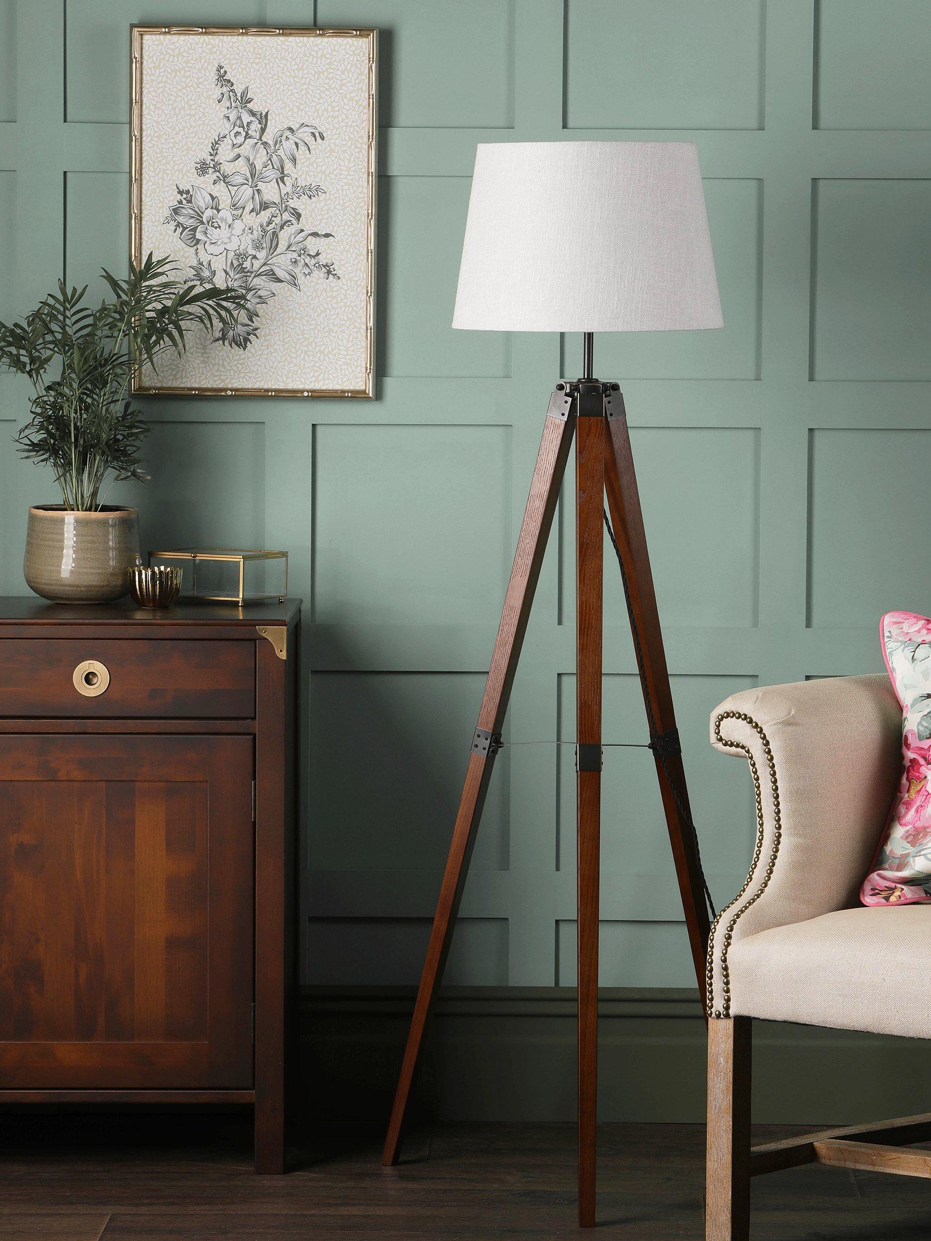 The Burdale floor lamp base by Laura Ashley is a classic tripod design, made from hand finished stained, ash wood. Antique brass metal detailing give the floor lamp a soft industrial feel. It is recommended that the base is styled with a 40cm shade. Featuring a twisted cable with a convenient push-bar switch. Perfect for your living area.