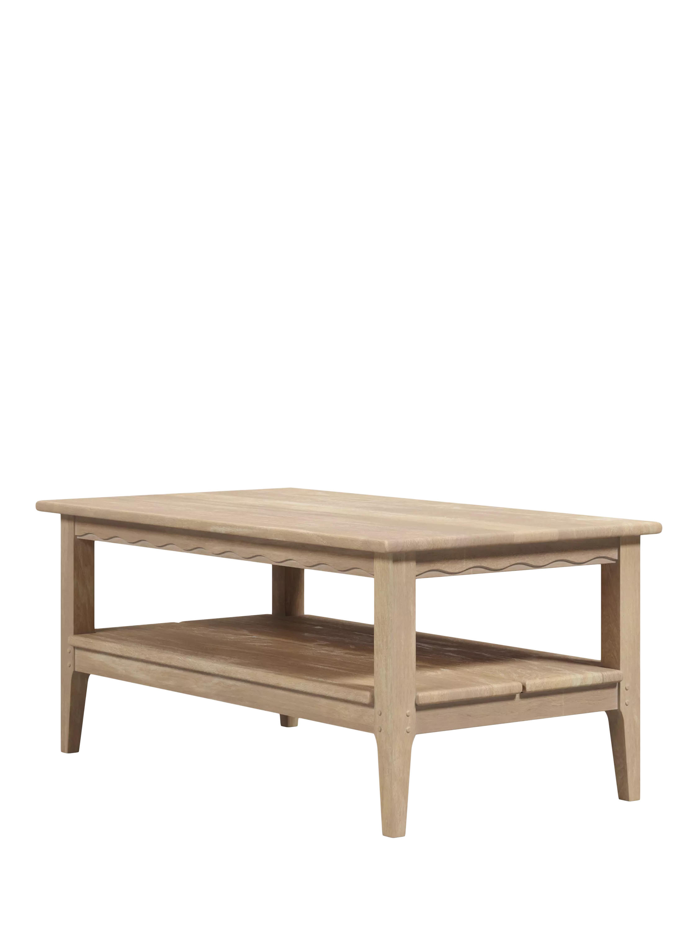 The Laura Ashley Calford Coffee Table exudes charm and makes a perfect addition to your living room. Inspired by Shaker style, this beautiful coffee table features a lower shelf providing additional storage. Crafted from solid oak with a white-washed finish, this piece features a scallop edge detailing.