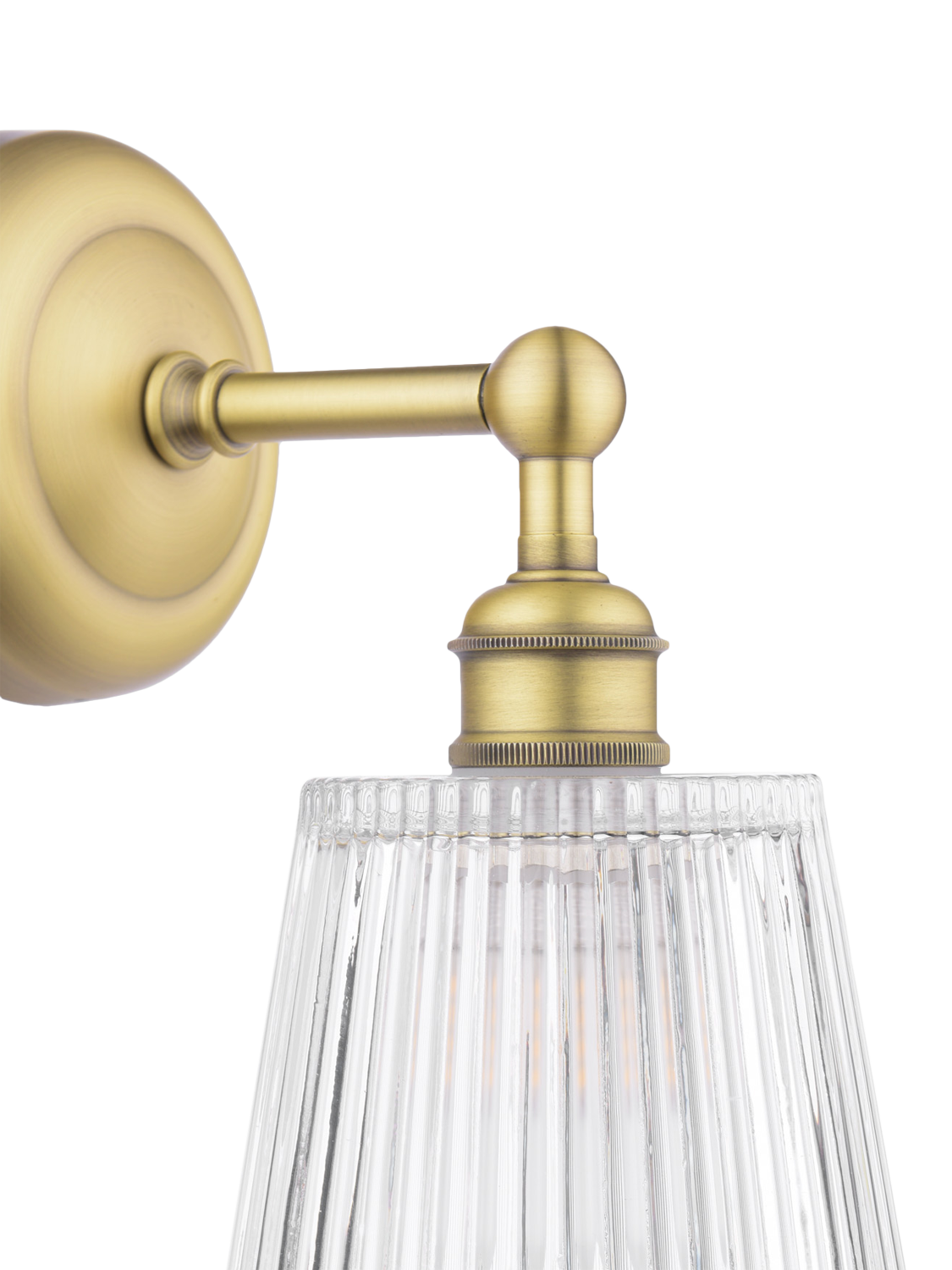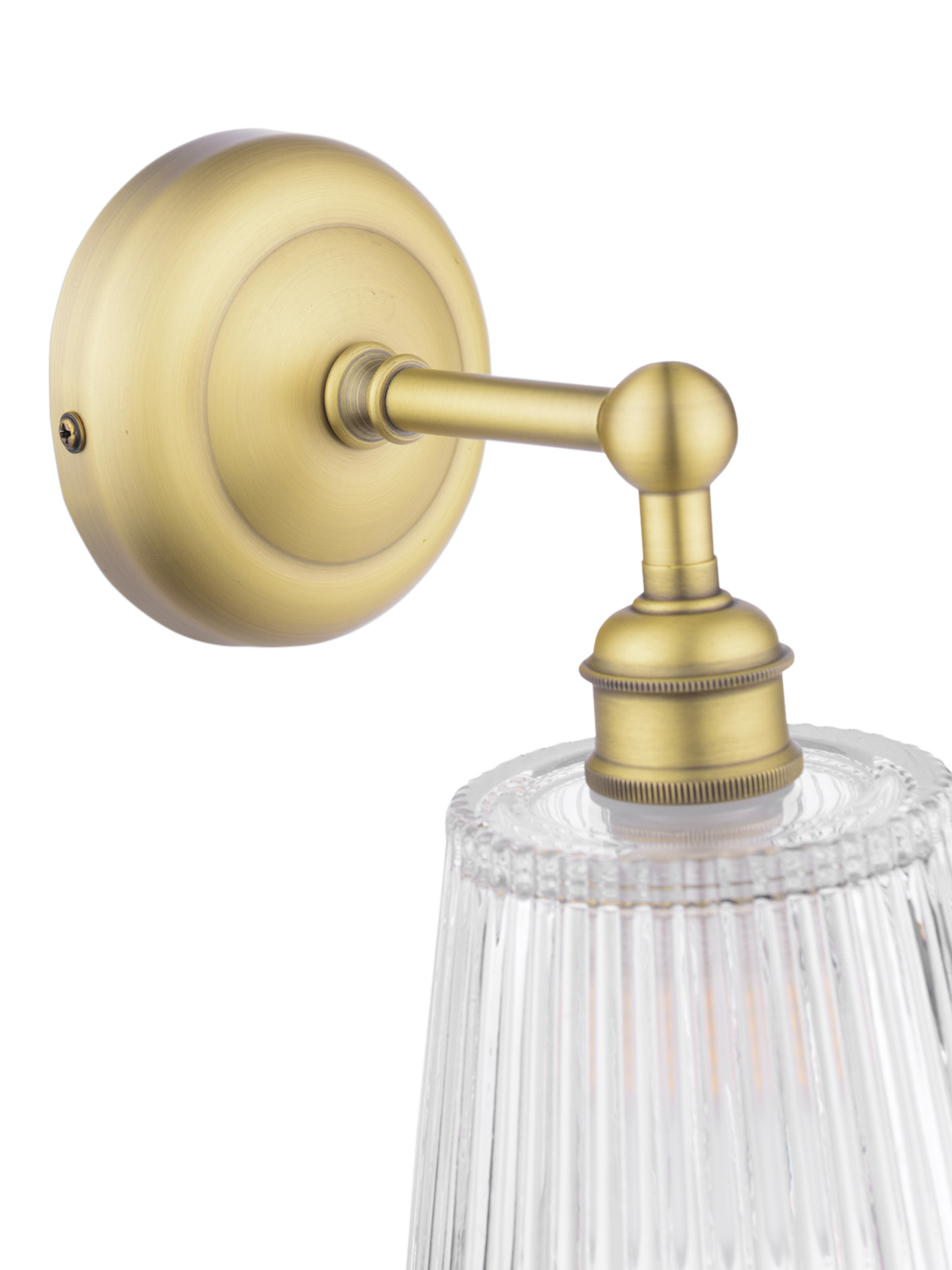 Brighten up any room with the gorgeous Laura Ashley Callaghan Wall Light. Featuring an elegant antique brass finish and a clear ribbed glass shade, this versatile light adds a timeless touch to any space.