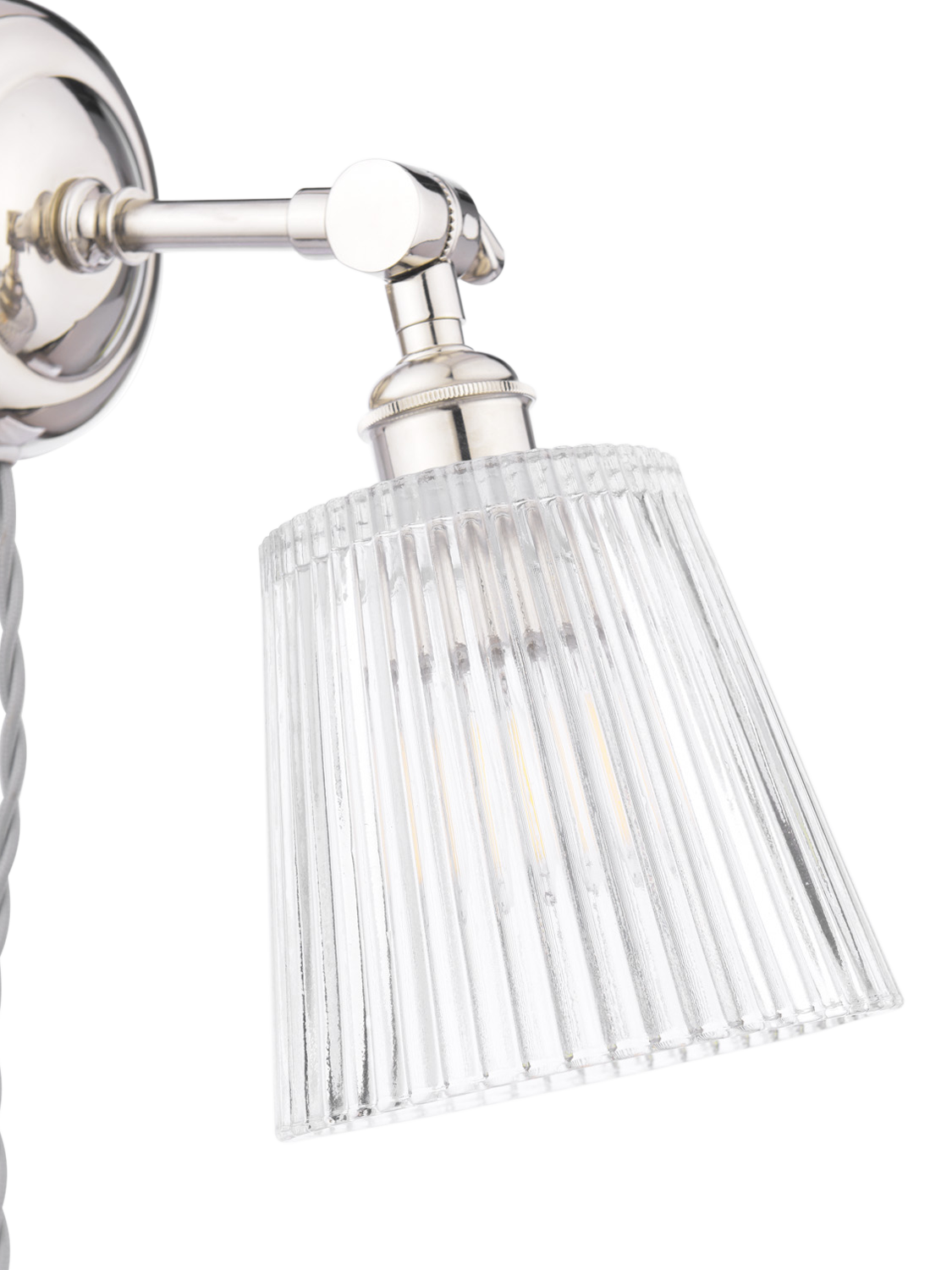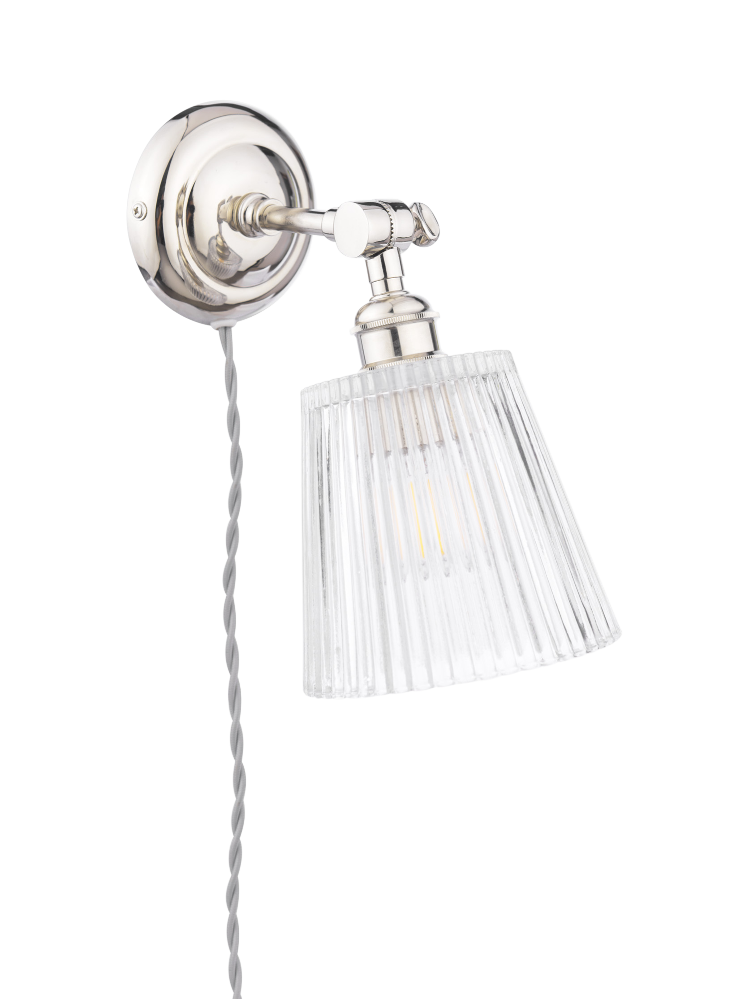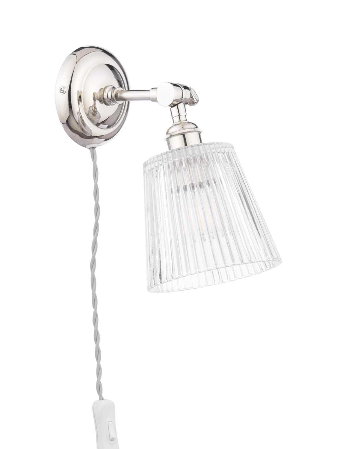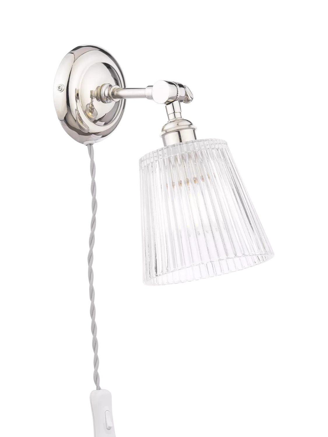 Brighten up any room with the gorgeous Laura Ashley Callaghan Wall Light. Featuring an elegant polished nickel finish and a clear ribbed glass shade, this versatile light adds a timeless touch to any space.