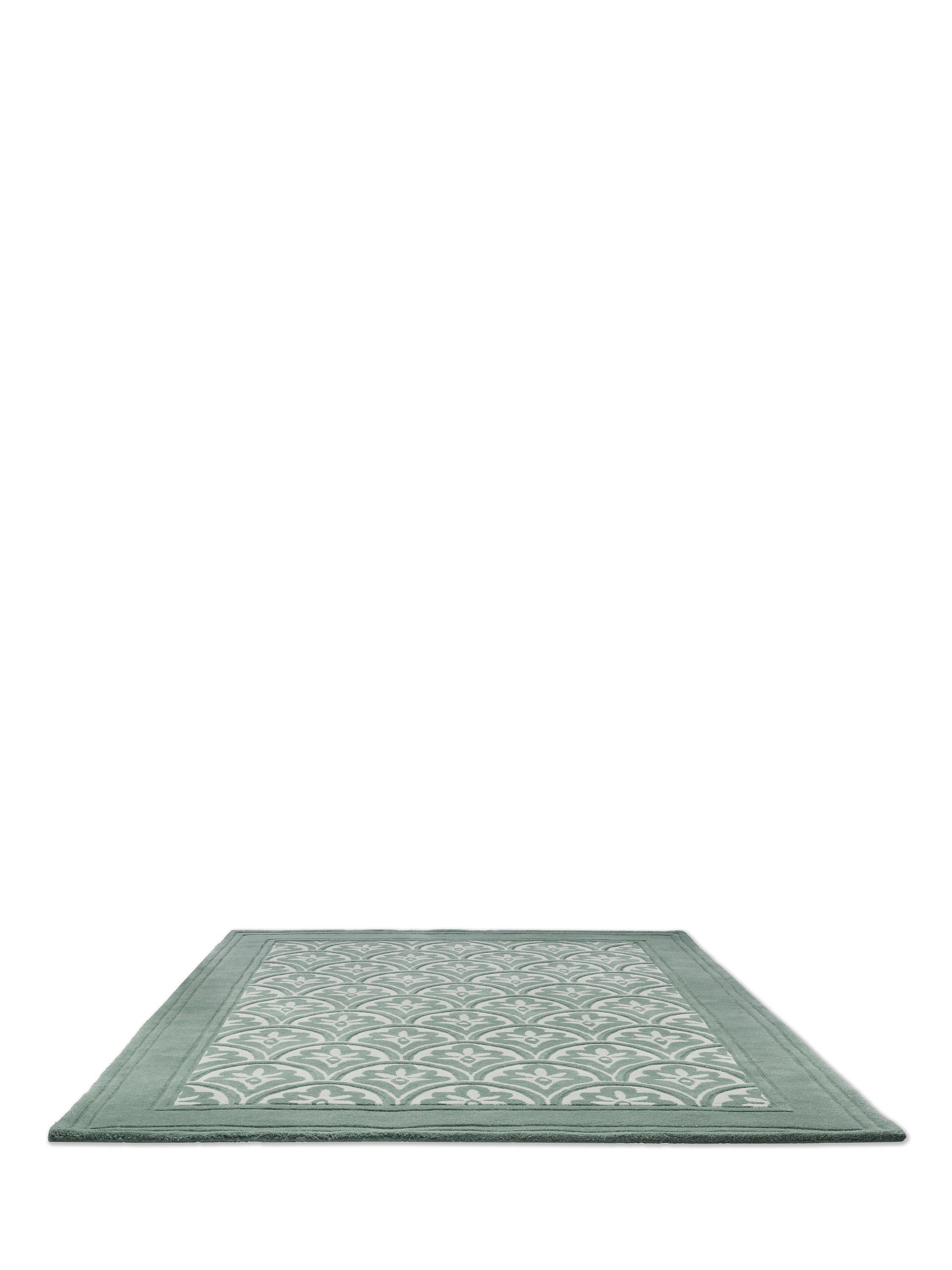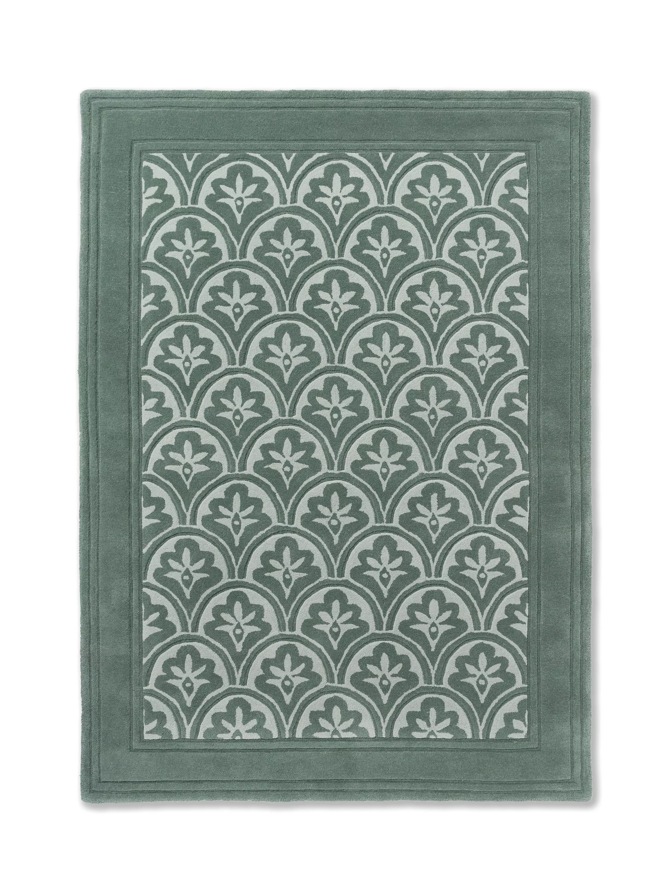 Timelessly elegant the Catarina design displays a repeat leaf motif outlined in a half circle. This rug is hand tufted in 100% wool. The wool is a New Zealand blended wool to create a softness and luxury to every interior. The deepened half circles and border lines add an extra refined touch to the rug.