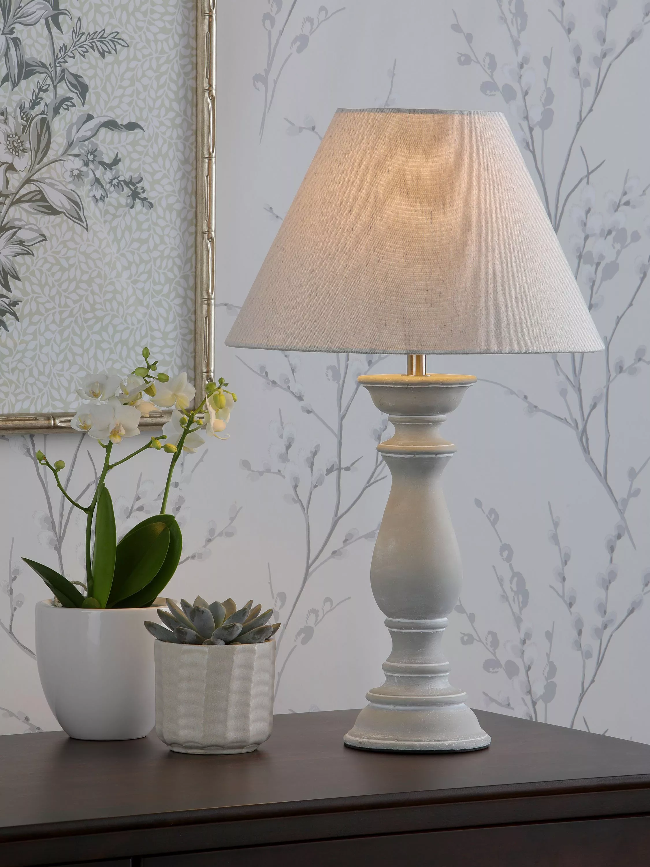The Chedworth table lamp by Laura Ashley will make a elegant and stylish addition to your home. It features a concrete moulded base in a classic shape, paired with a tapered natural linen shade and a braided grey cable with an in-line switch.