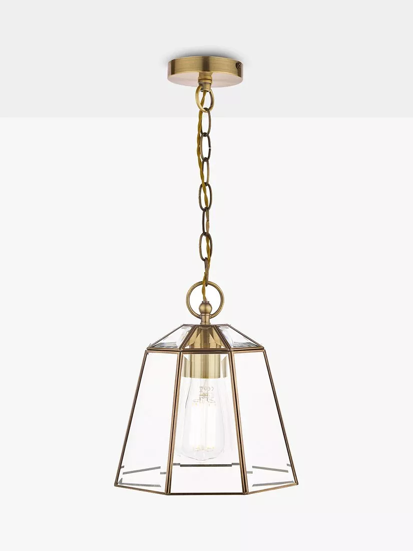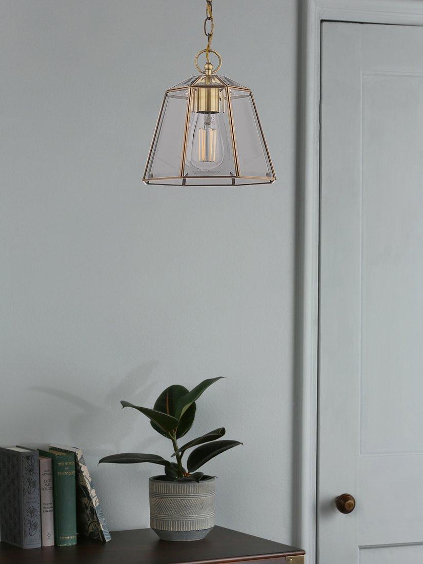 Laura Ashley’s Clayton is a great looking lantern-style ceiling light. Particularly at home in the hallway or an enclosed porch, the quality bevelled glass will radiate light to welcome your visitors. However, you can use this beautiful clear glass pendant in any room of the house. The small panels of glass are encased in thin metal strips like those of a stained glass window. Bulb not included.