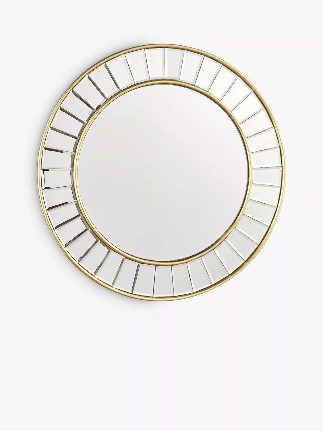The Clemence mirror from Laura Ashley features a deep rim of bevelled mirror tiles bordered by luxurious gold leaf.