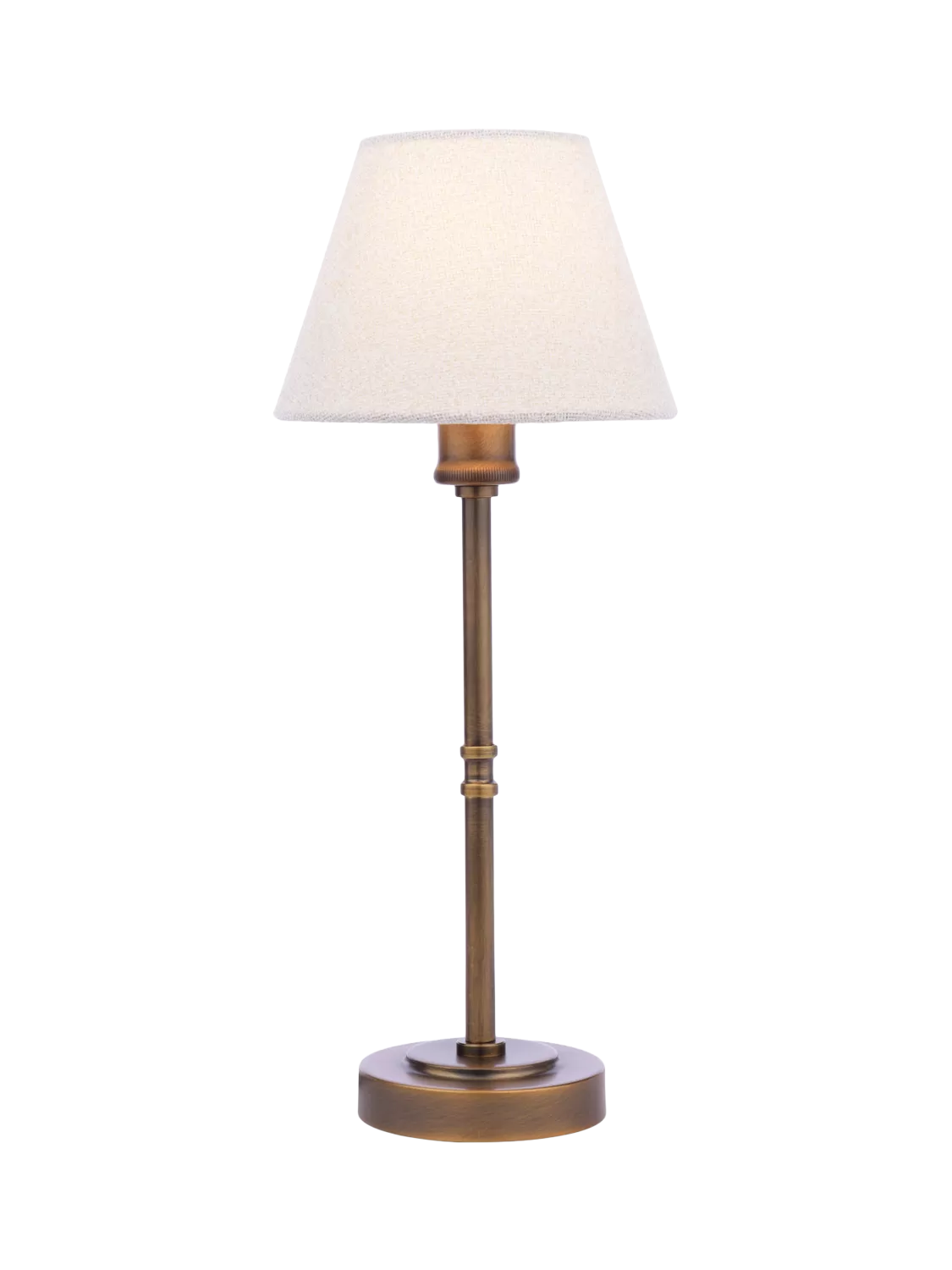 Elevate your living room or bedroom with the Laura Ashley Denston Table Lamp. Featuring a boucle fabric shade in warm cream cotton and an antique bronze finish stand, this table lamp makes a stylish statement on bedside or end tables.