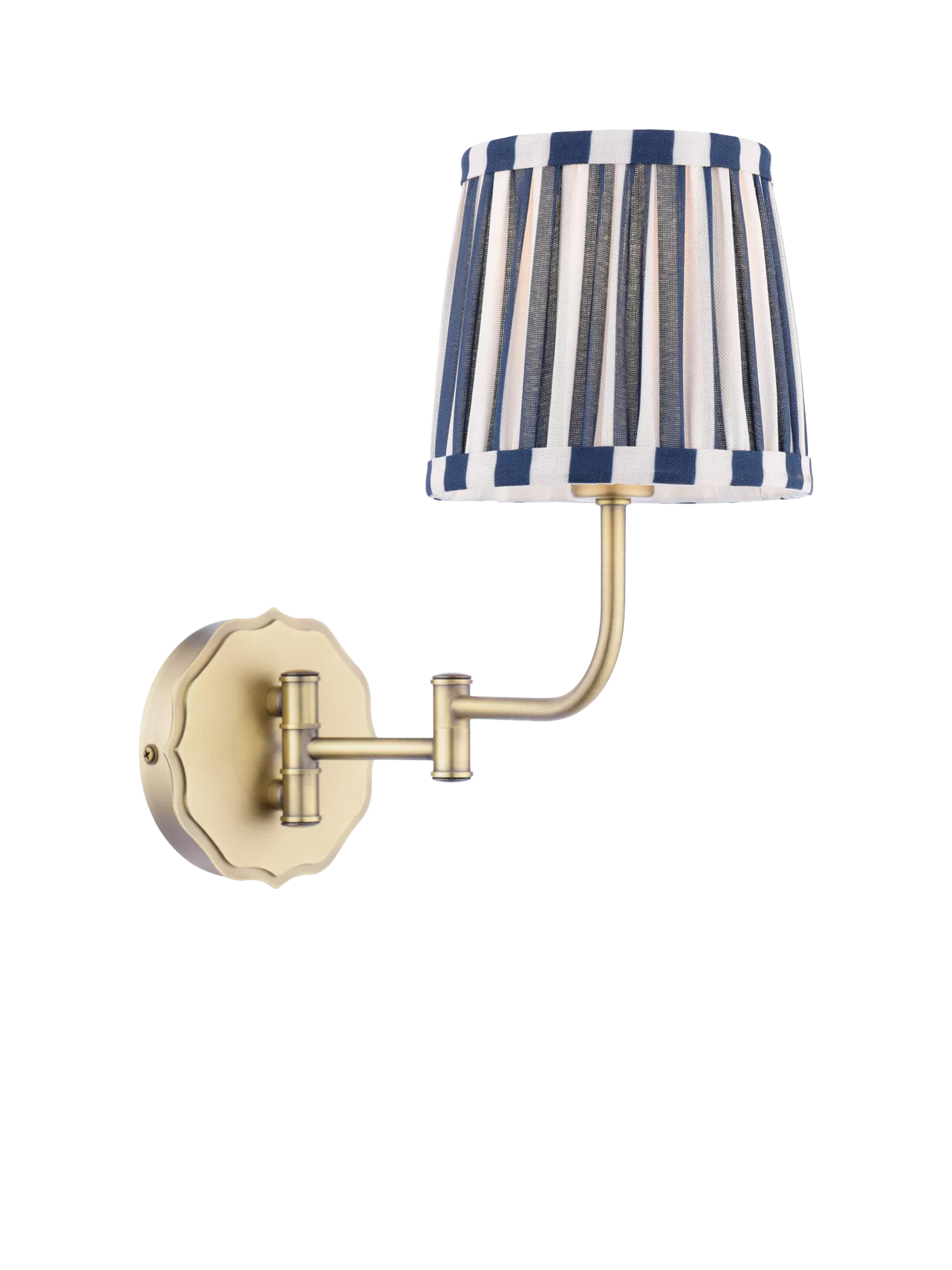Elegant and timeless, the Laura Ashley Denwick Wall Light features a dual-toned navy and cream striped shade that offers a classic yet contemporary look. Crafted with an antique brass base and detailing, this wall light exudes subtle vintage charm, elevating any room.