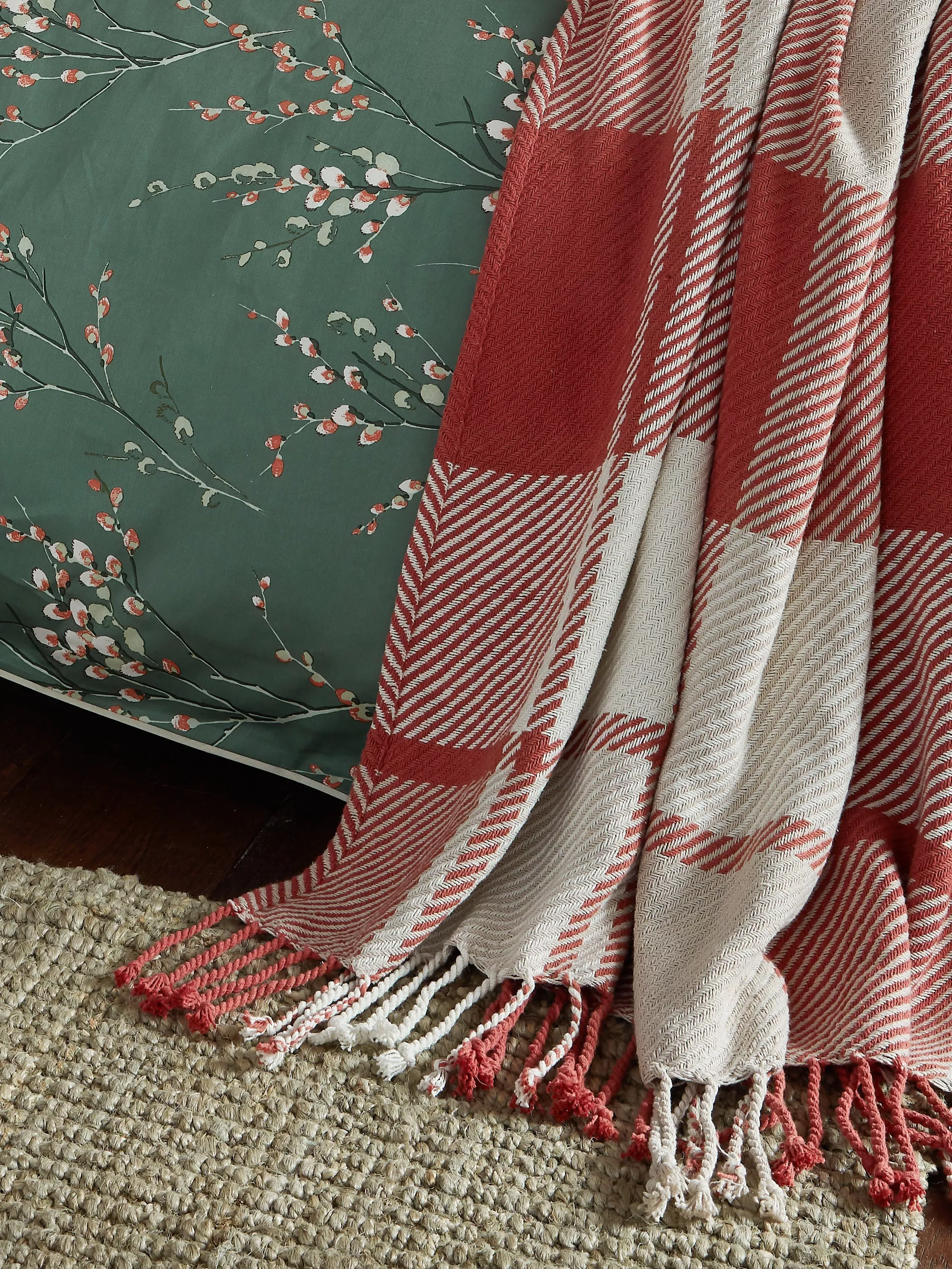 Add style and comfort to your living space with this classically simple, woven check Laura Ashley throw. Edged in tassels, it will add a soft and elegant touch to your bedroom.