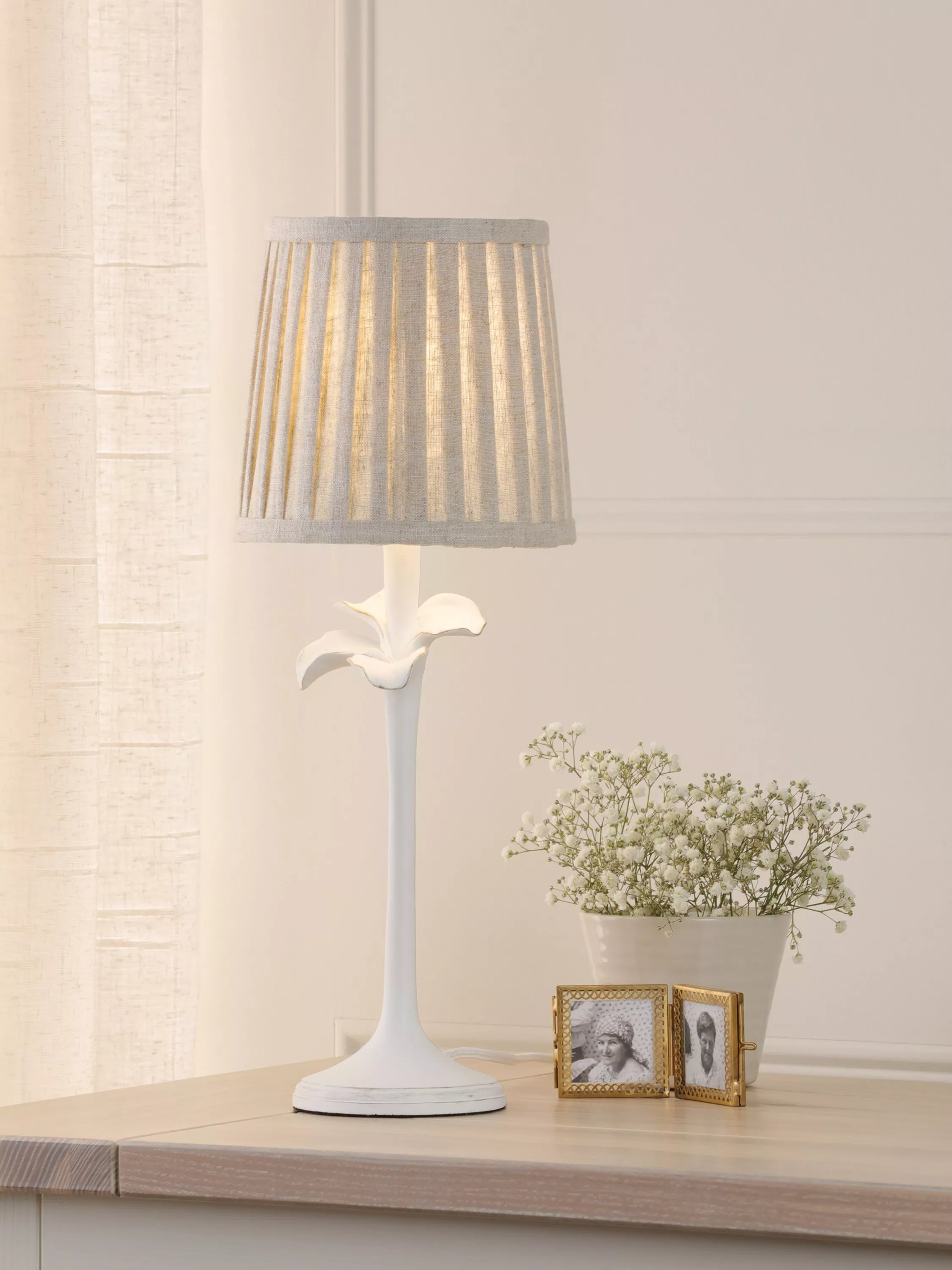 Undeniably elegant, the Eleni Table Lamp features an intricate floral-style stem and is beautifully complemented by a pleated linen fabric shade. Brings a touch of sophistication and warmth to any room.