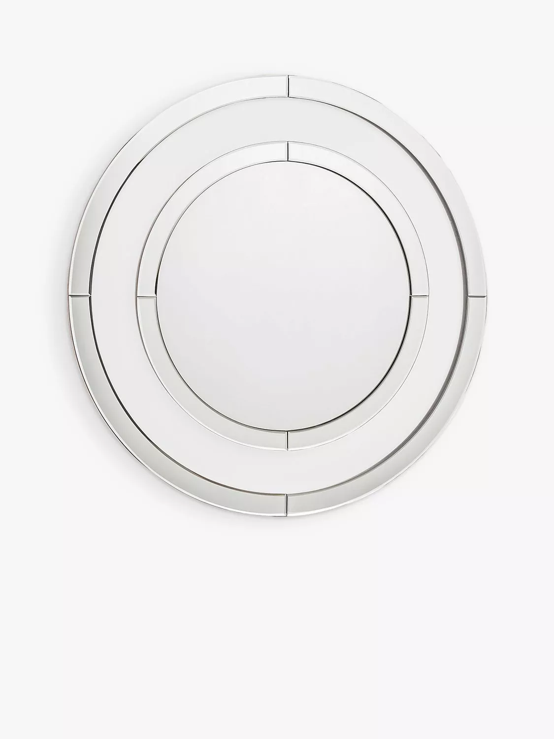 Evie from Laura Ashley is a mirror within a mirror effect with your wall decor showing through on the transparent glass rim. The round mirror appears to float above the background, whether it is a wallpaper or a painted surface.
