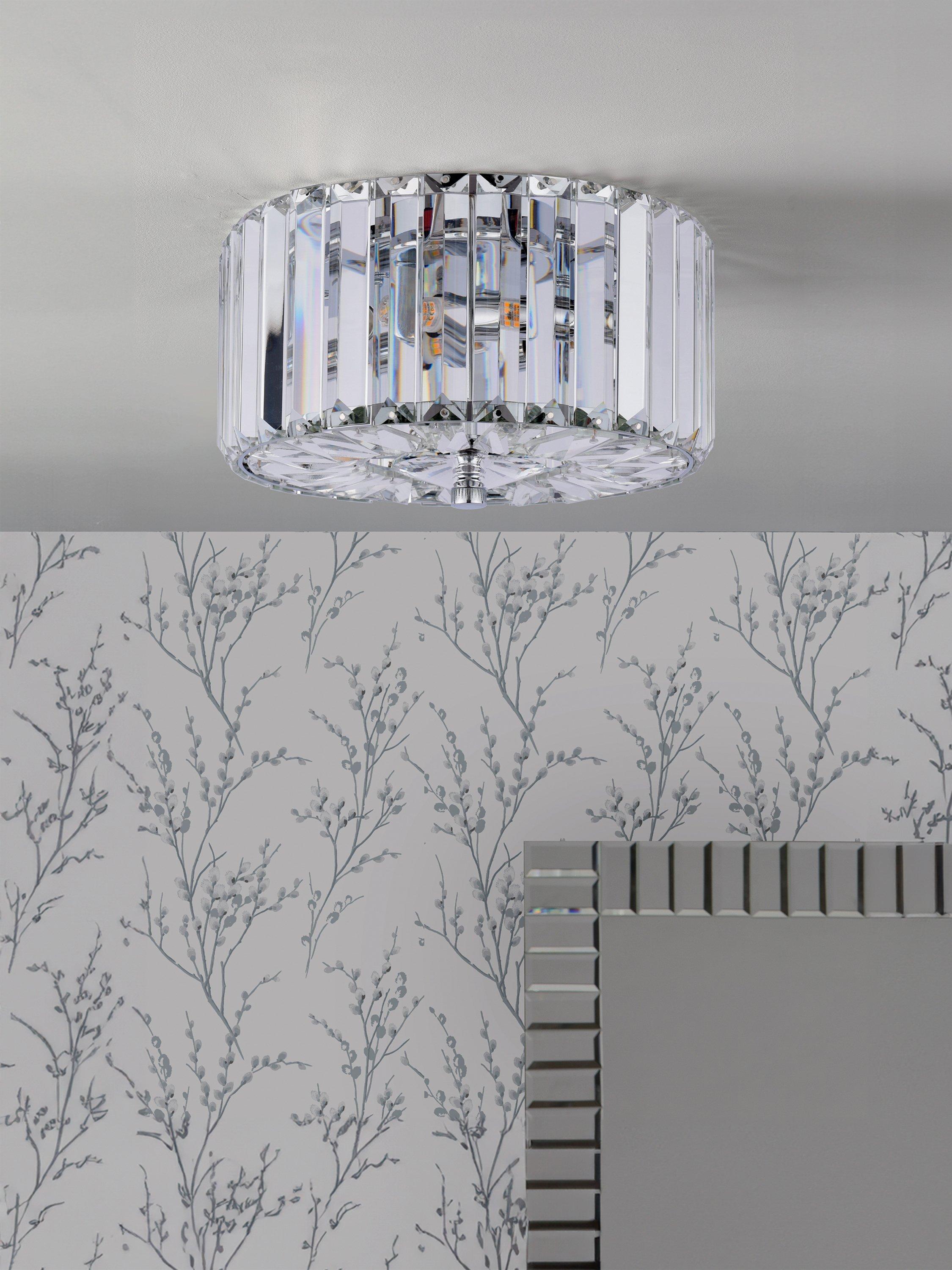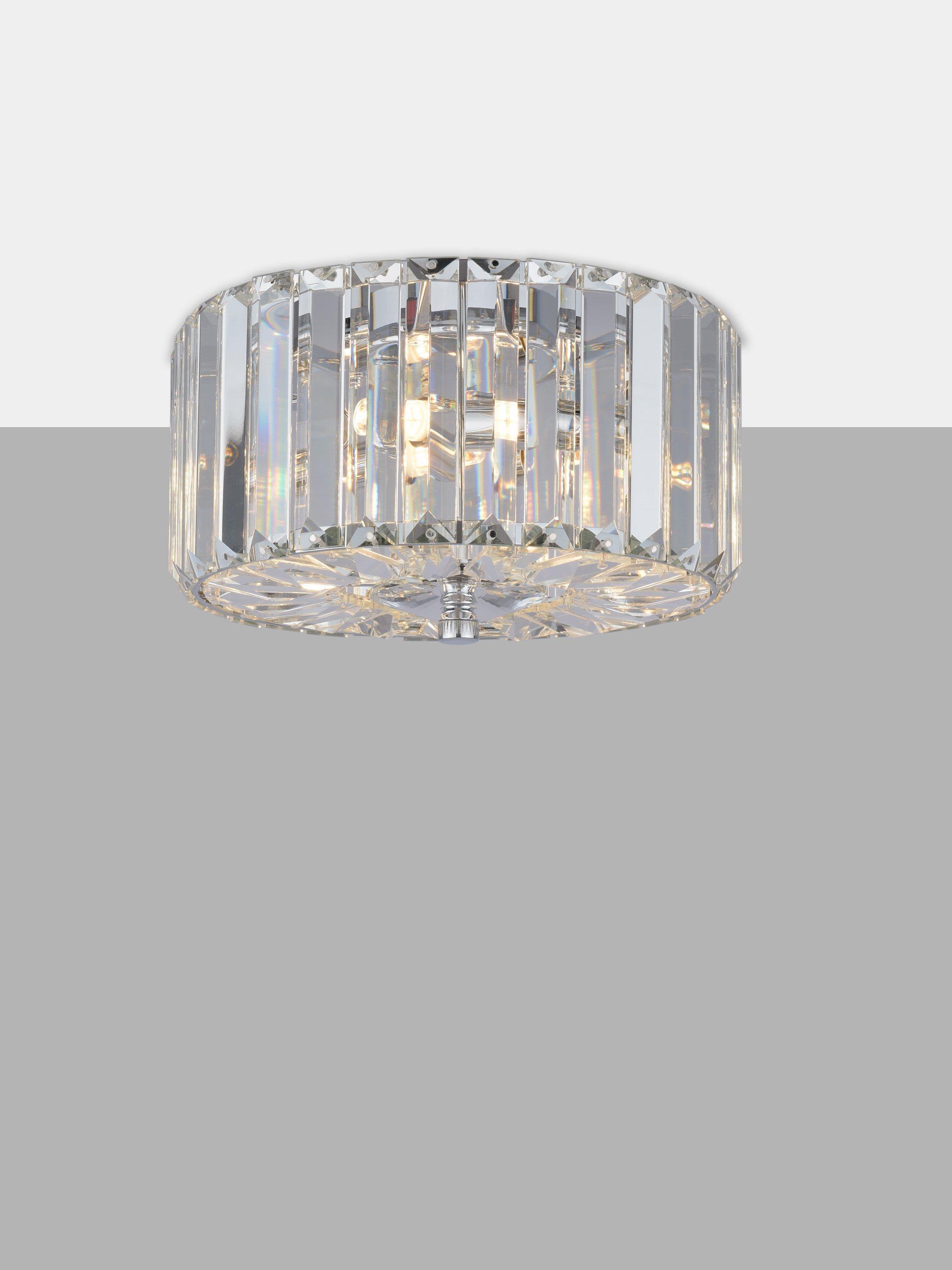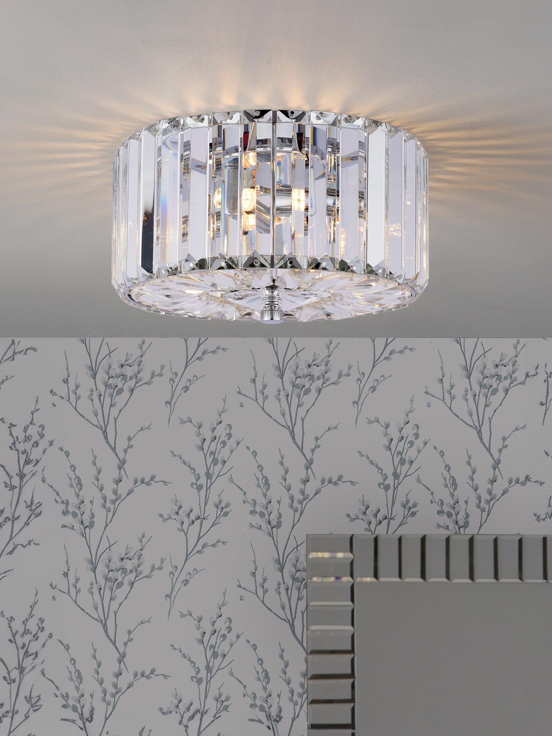 Enjoy the way light bounces off the crystal of the Fernhurst flush ceiling light from Laura Ashley, which simply oozes Art Deco style. Wonderfully opulent, with faceted crystals.