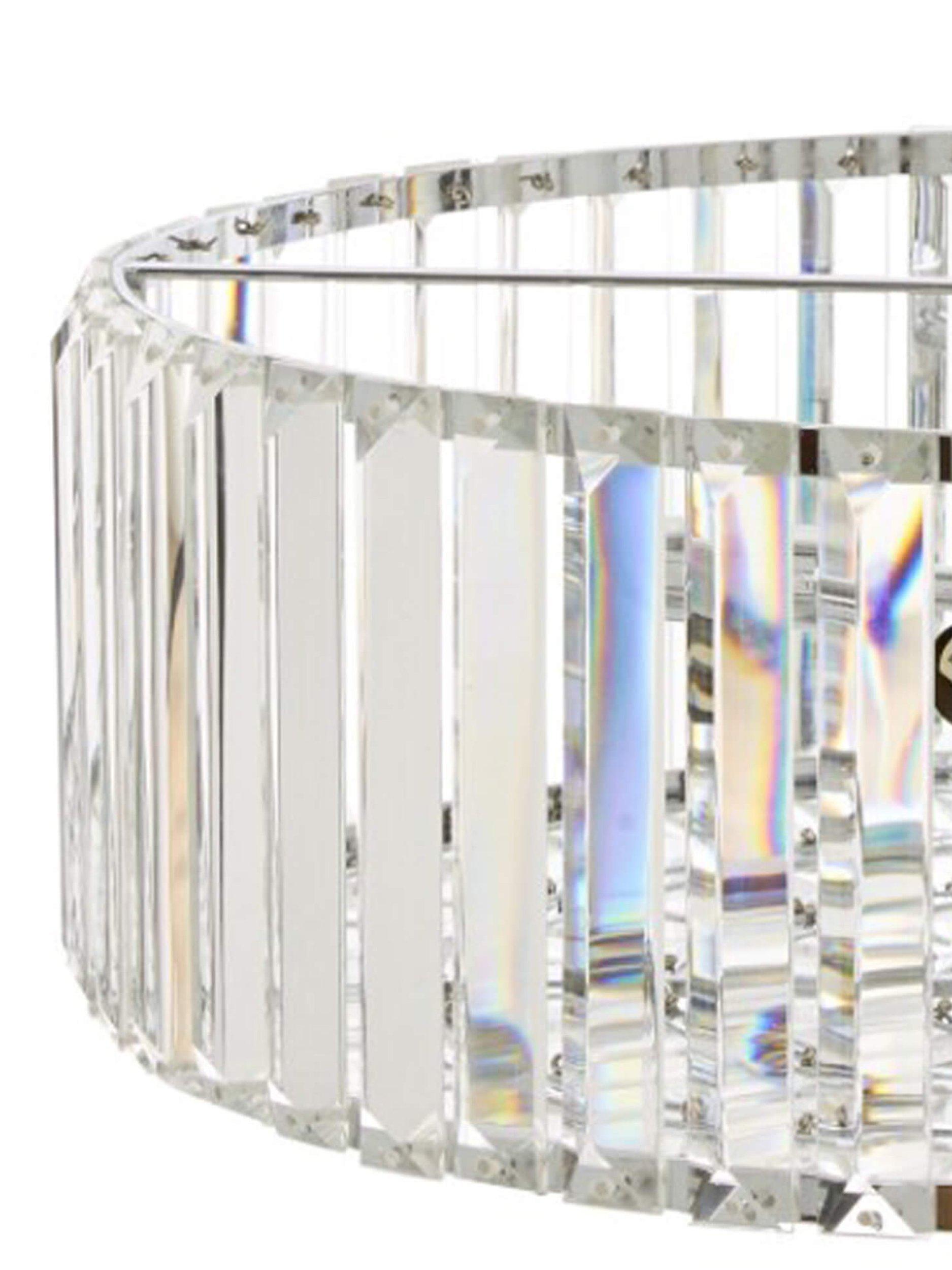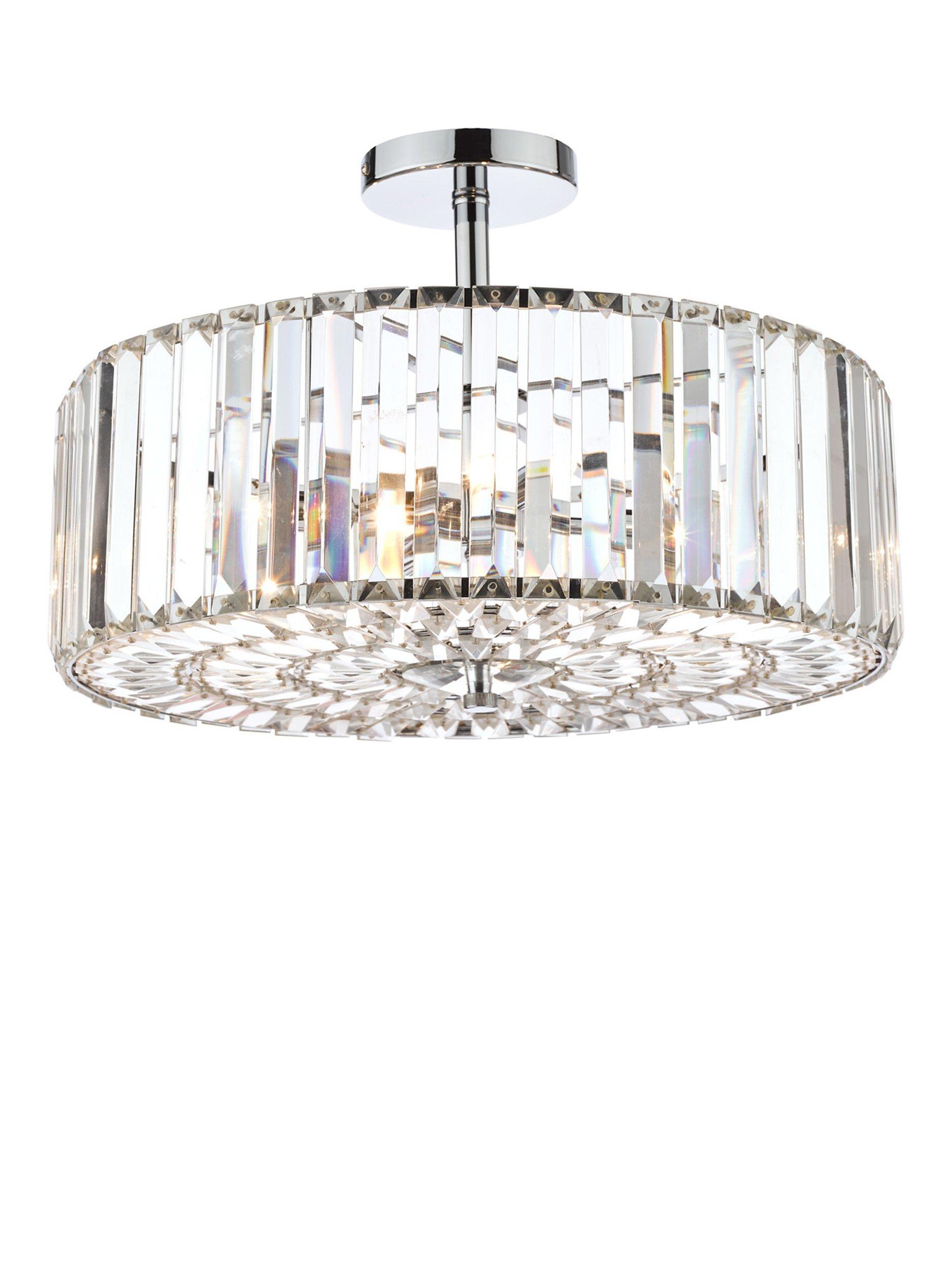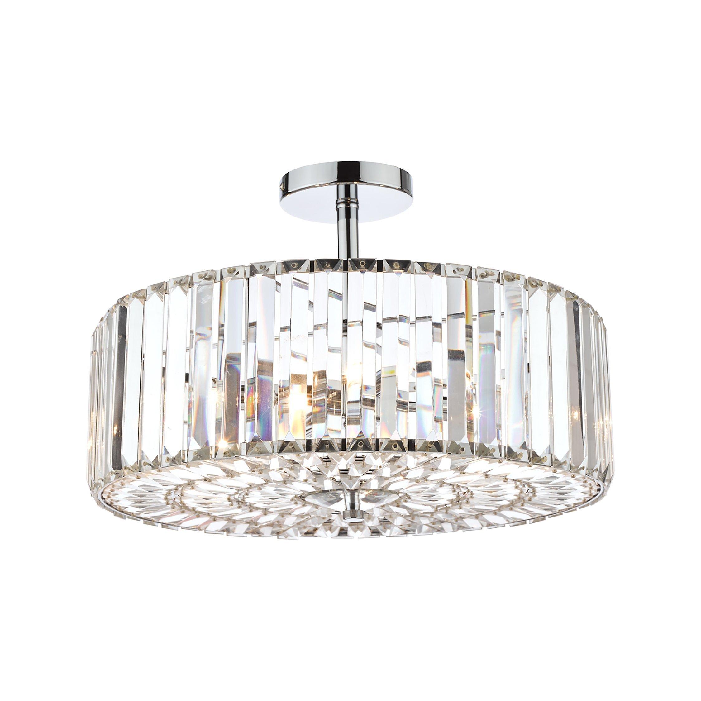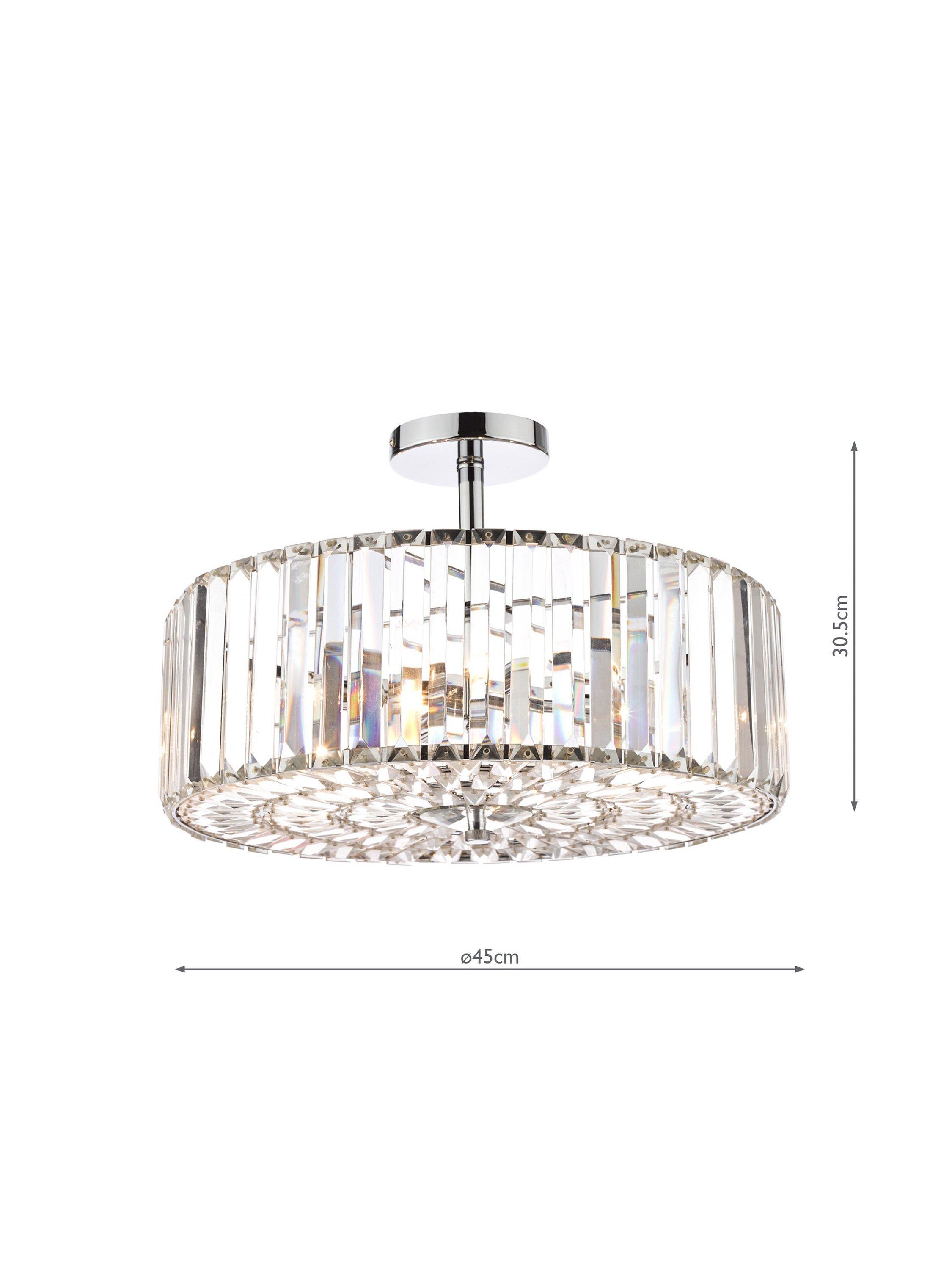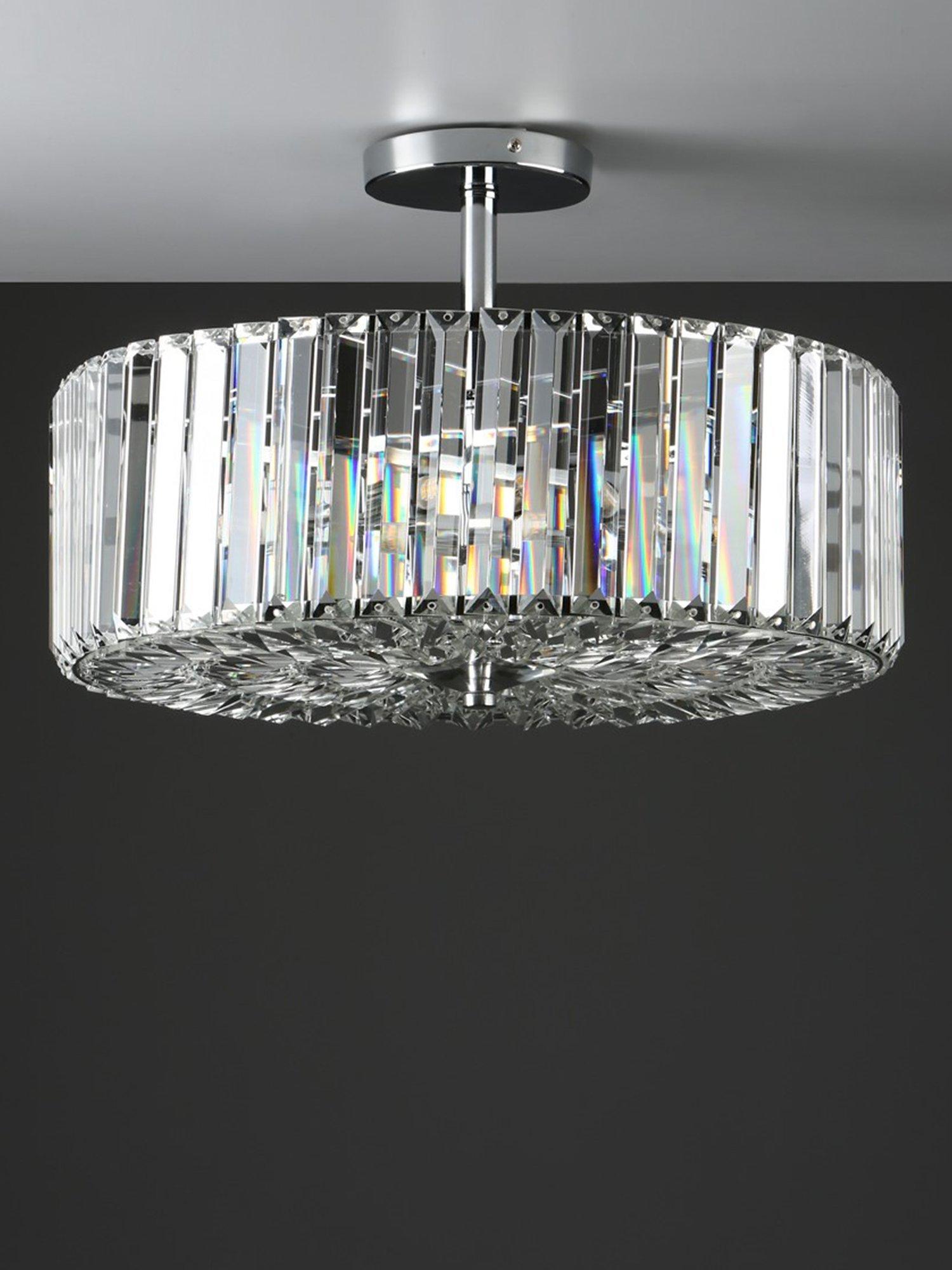 Enjoy the way light bounces off this large semi-flush ceiling light, which oozes Art Deco style. Chic, yet simple, it's made from crystal rods that encase a total of four LED bulbs and it's supported by a polished chrome frame. It offers a bright and effective glow of light. Semi-flush fittings are well-suited in smaller rooms as they sit close to the ceiling, allowing for an easy, decorative and functional transformation to your space, without any cables on show.