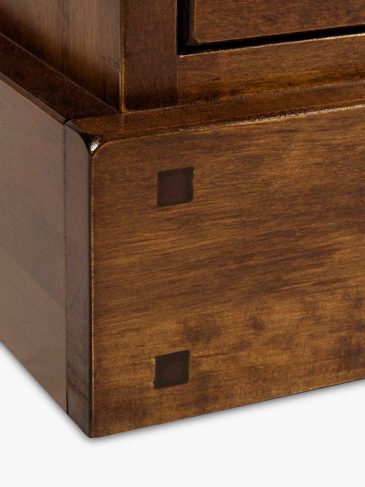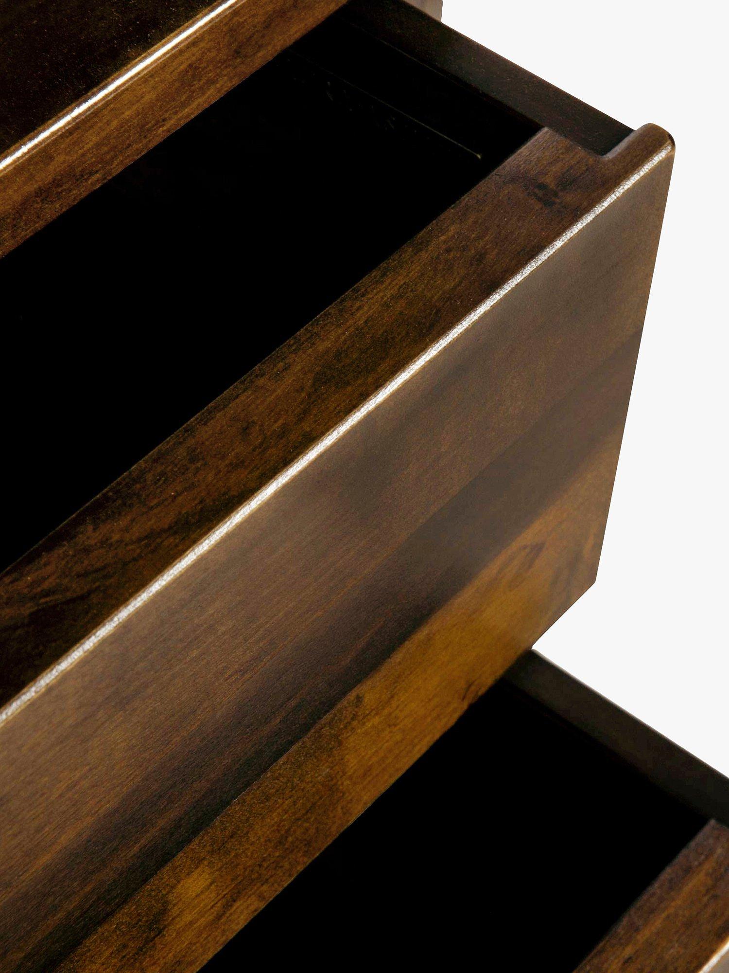 With a tall, yet narrow profile, this bookcase provides a handy amount of storage and it won't take up too much room. It's made from solid birch with high-quality birch veneers and features three adjustable shelves as well as two drawers. We like how it's been stained as it brings out the rich tones and colours of the natural wood. Plus, assembly is straightforward as all you have to do is position and attach the top half to the base before it's ready to be styled with your favourite books and ornaments.