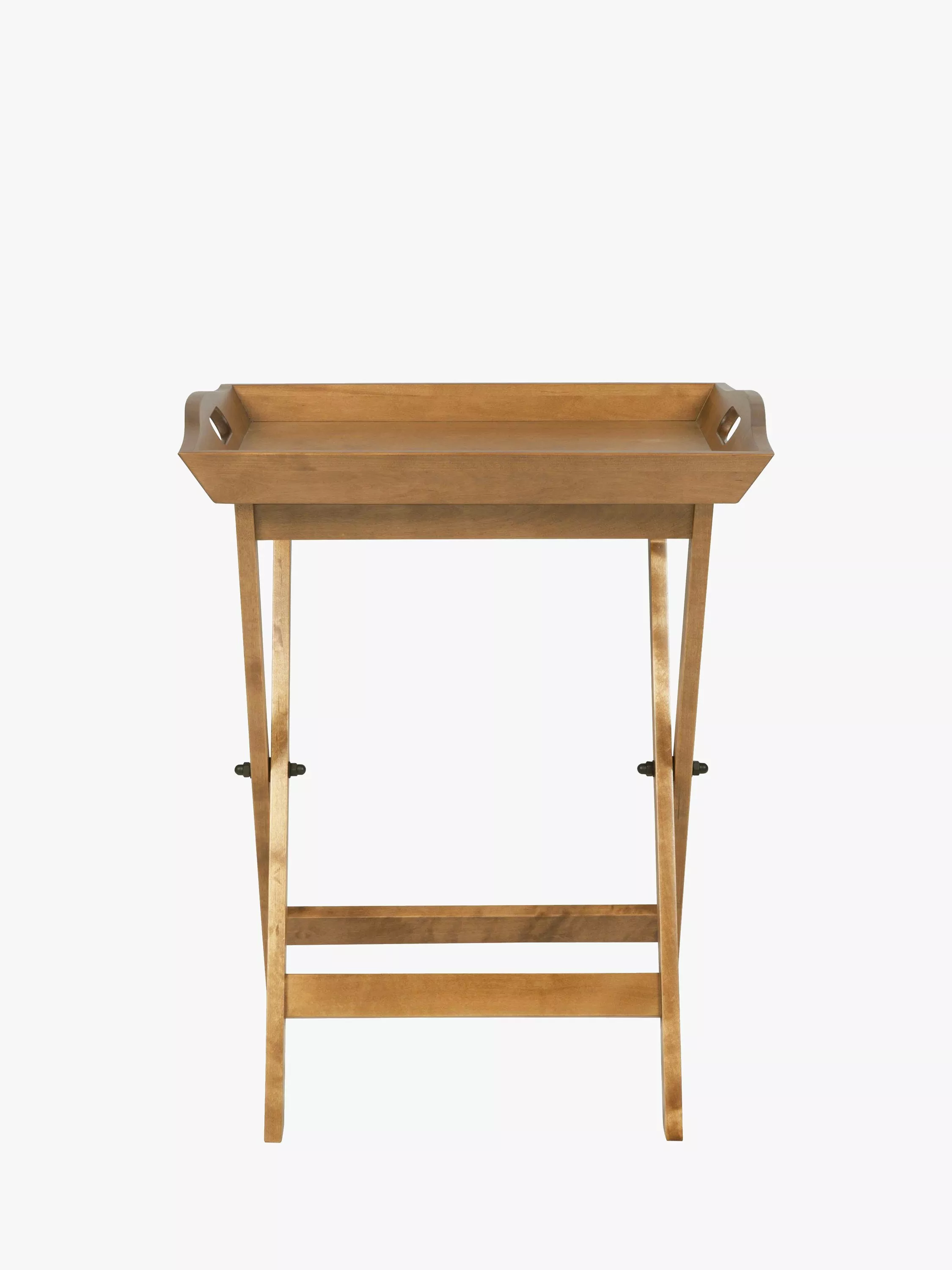 Crafted from predominantly solid birch but with some birch veneer modern materials, the Laura Ashley Garrat butler's tray features a removable tray with handles which sits atop a folding stand.