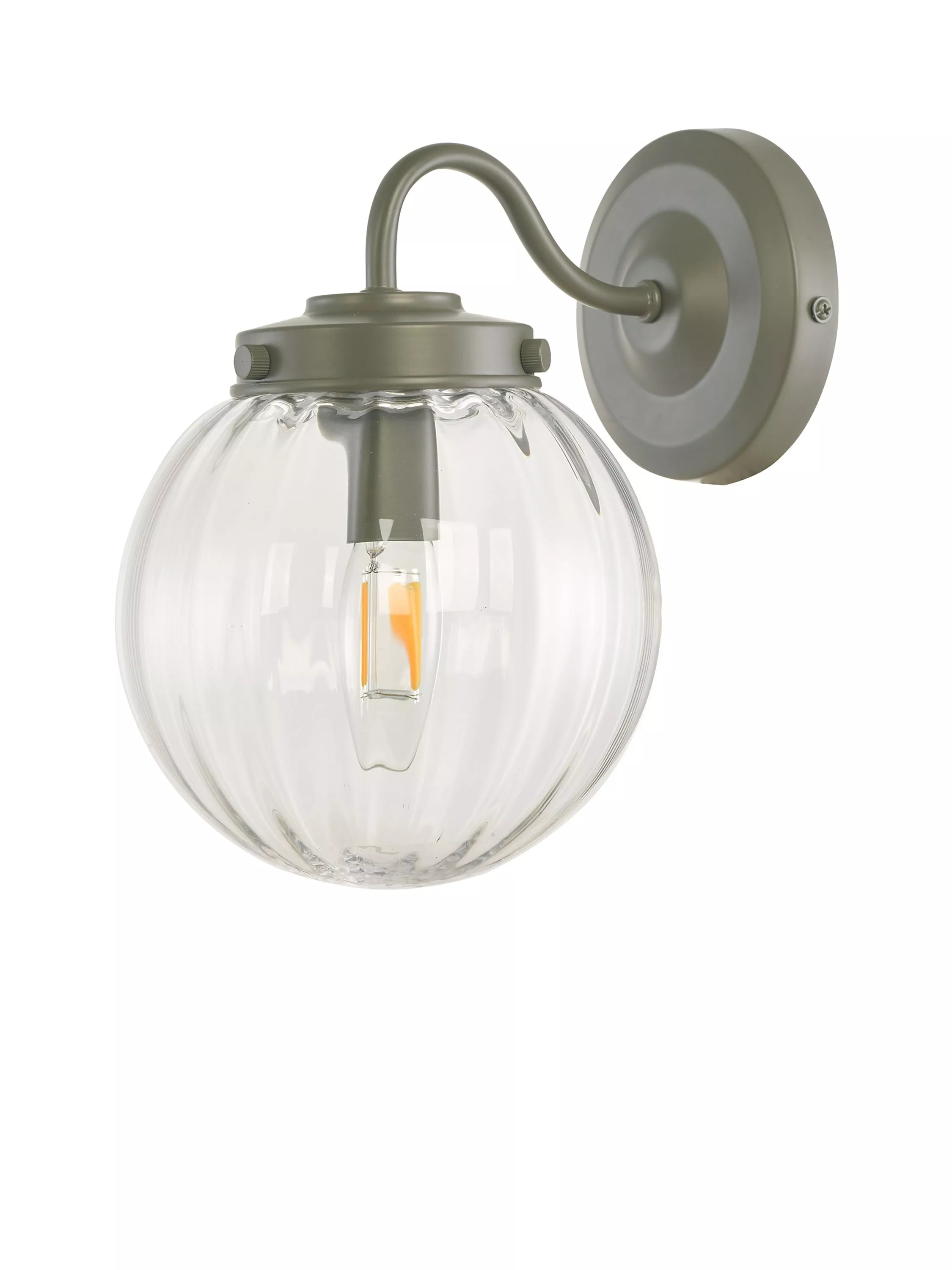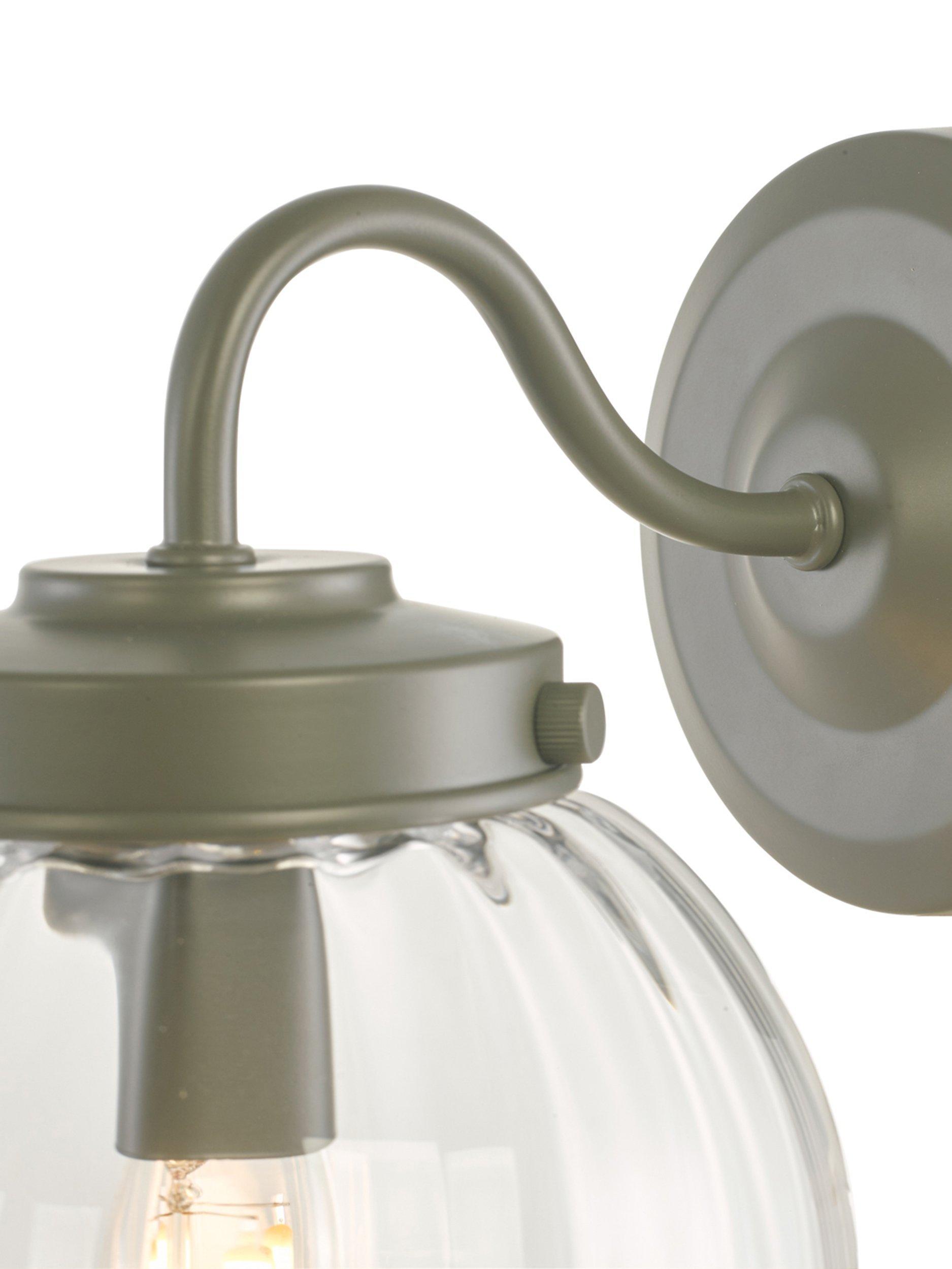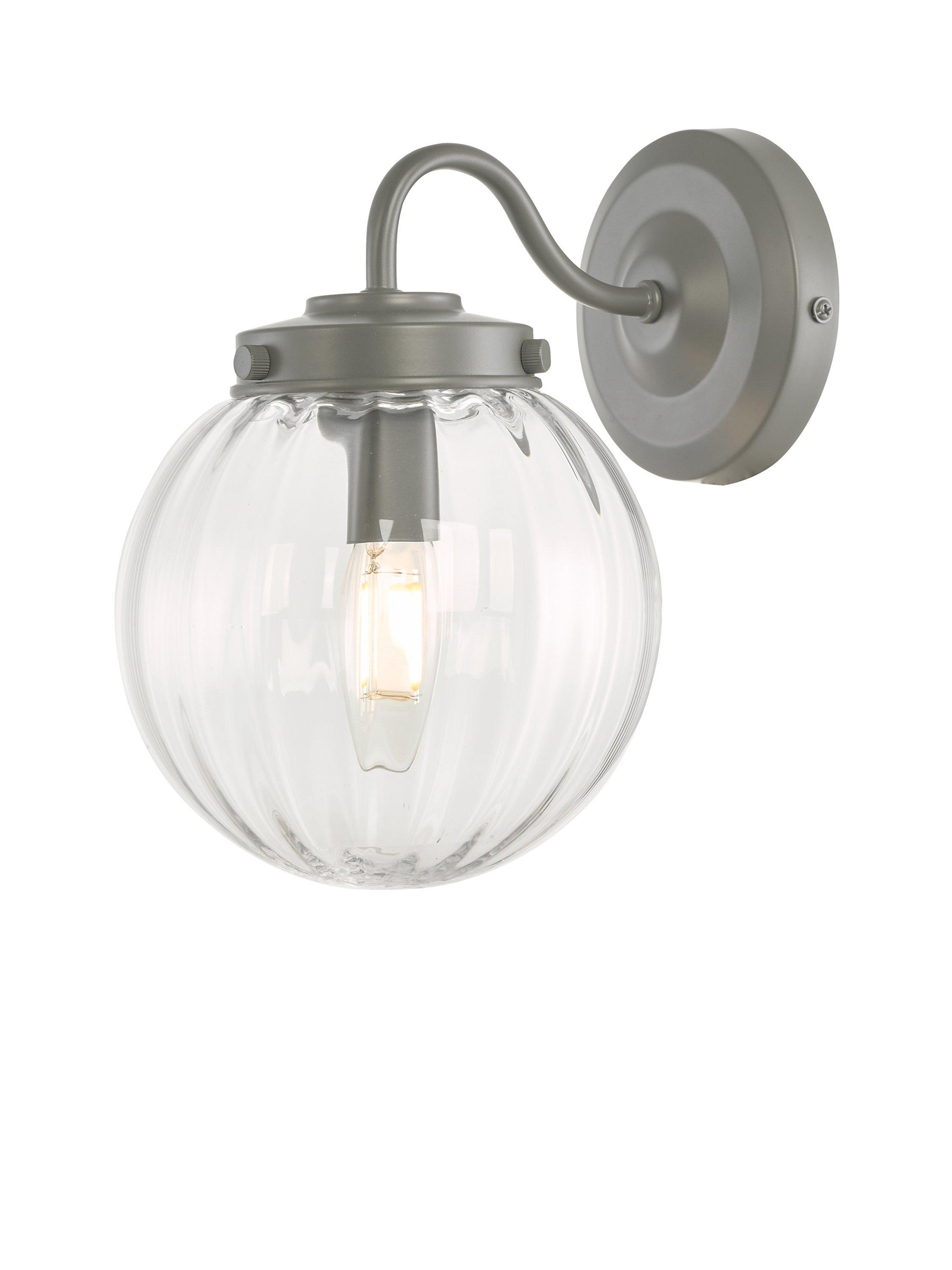 Laura Ashley’s Georgie wall light is designed with a graceful swan neck. The clear glass globe shade has soft ribbing on the inside which create highlights when lit. This outdoor wall light is finished in a soft grey, matt, powder-coated paint and is perfect for fitting, beside or over a doorway. Bulb not included.