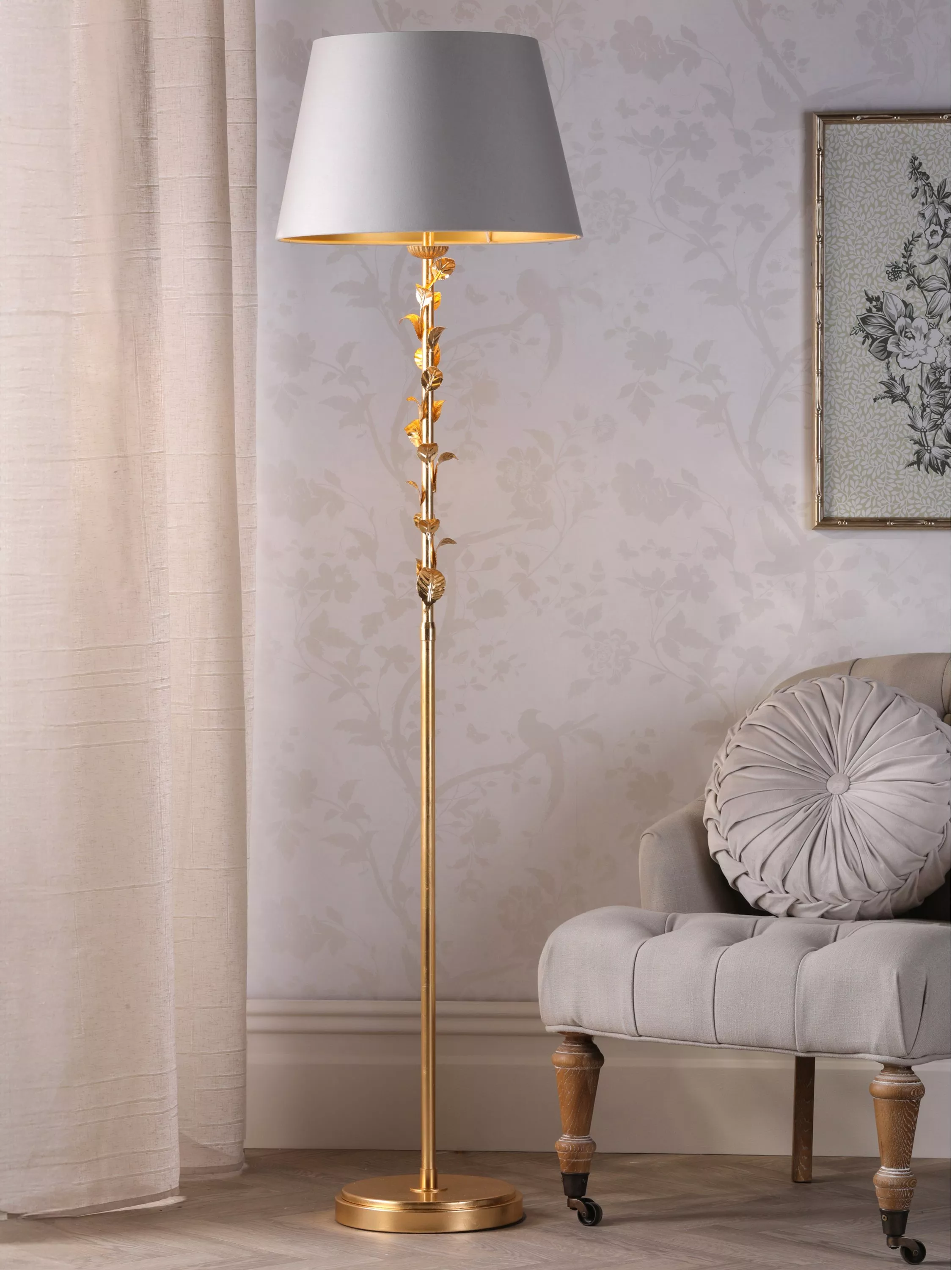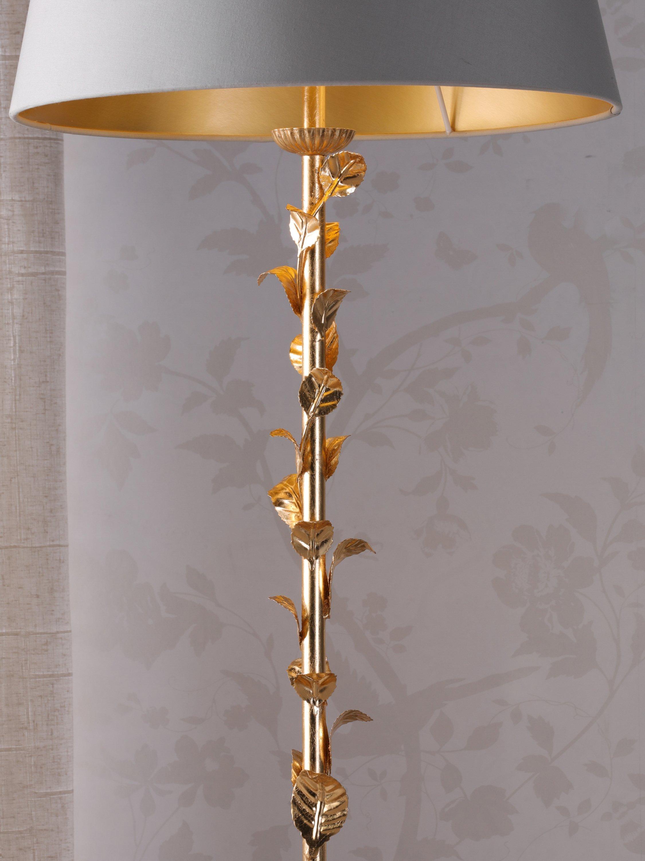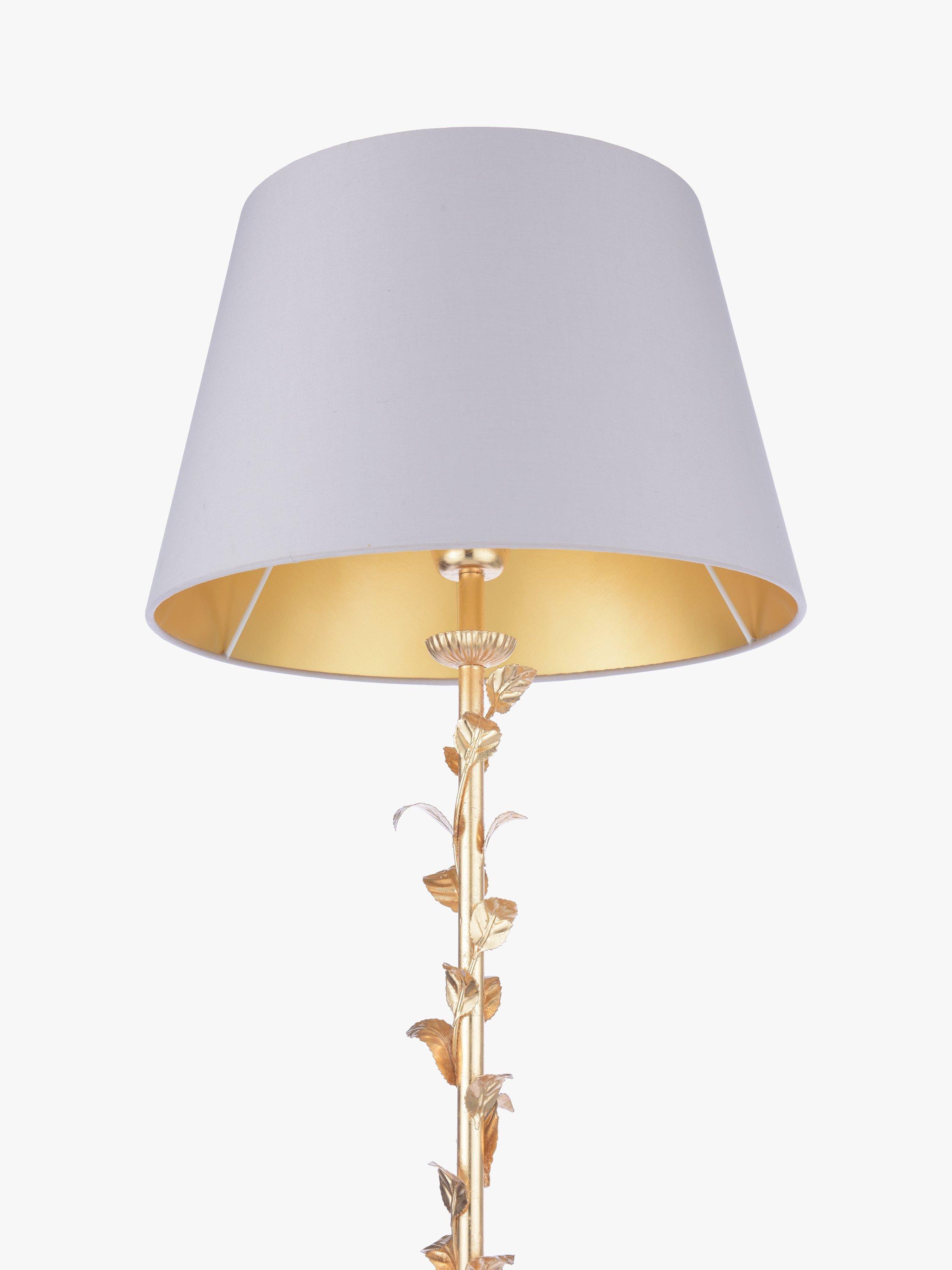 The Halton floor lamp by Laura Ashley is chic and on-trend, boasting ornate nature-inspired climbing foliage detailing in a gold tone. A tapered shade finishes this elegant look for a reading corner or nook.