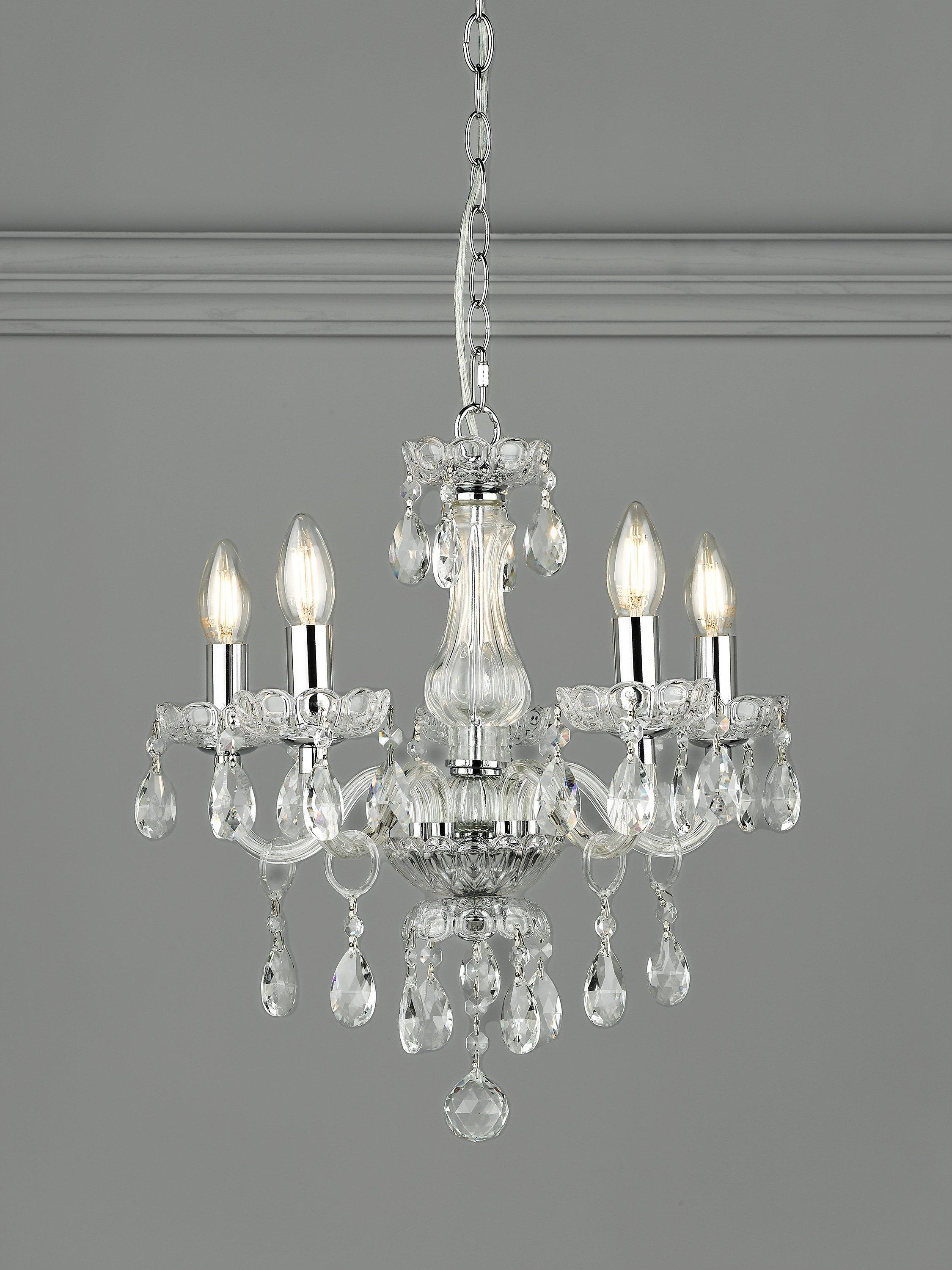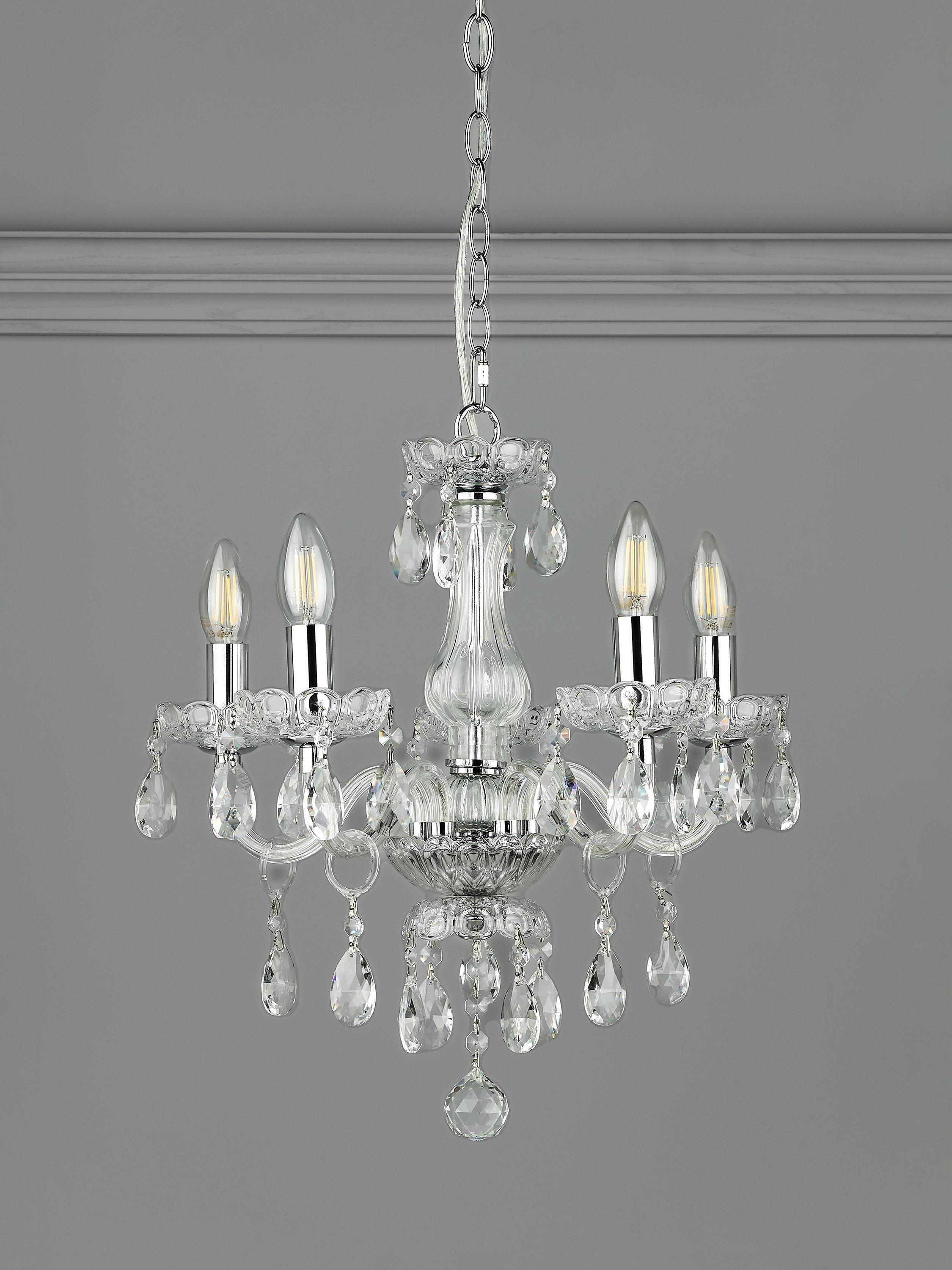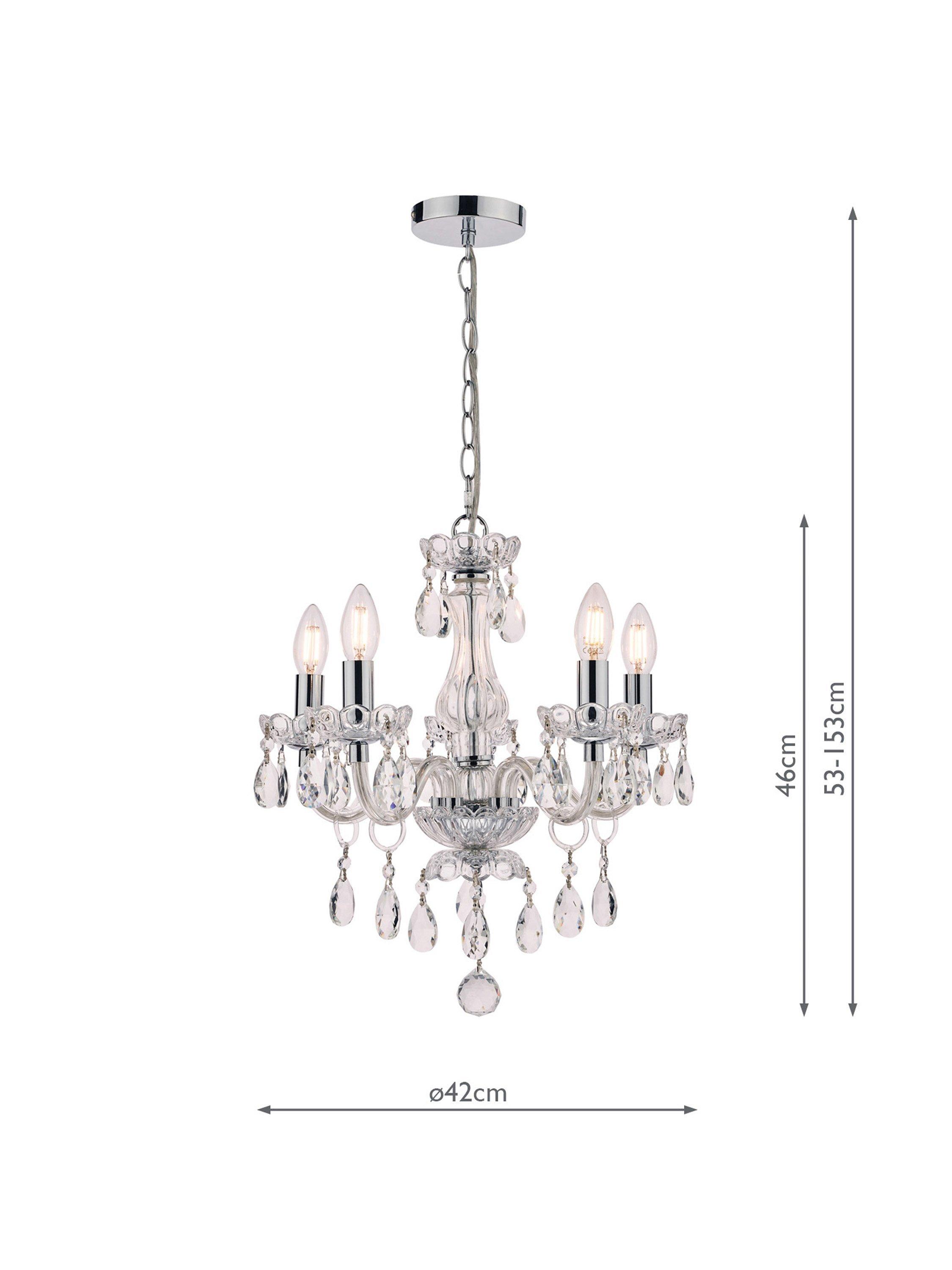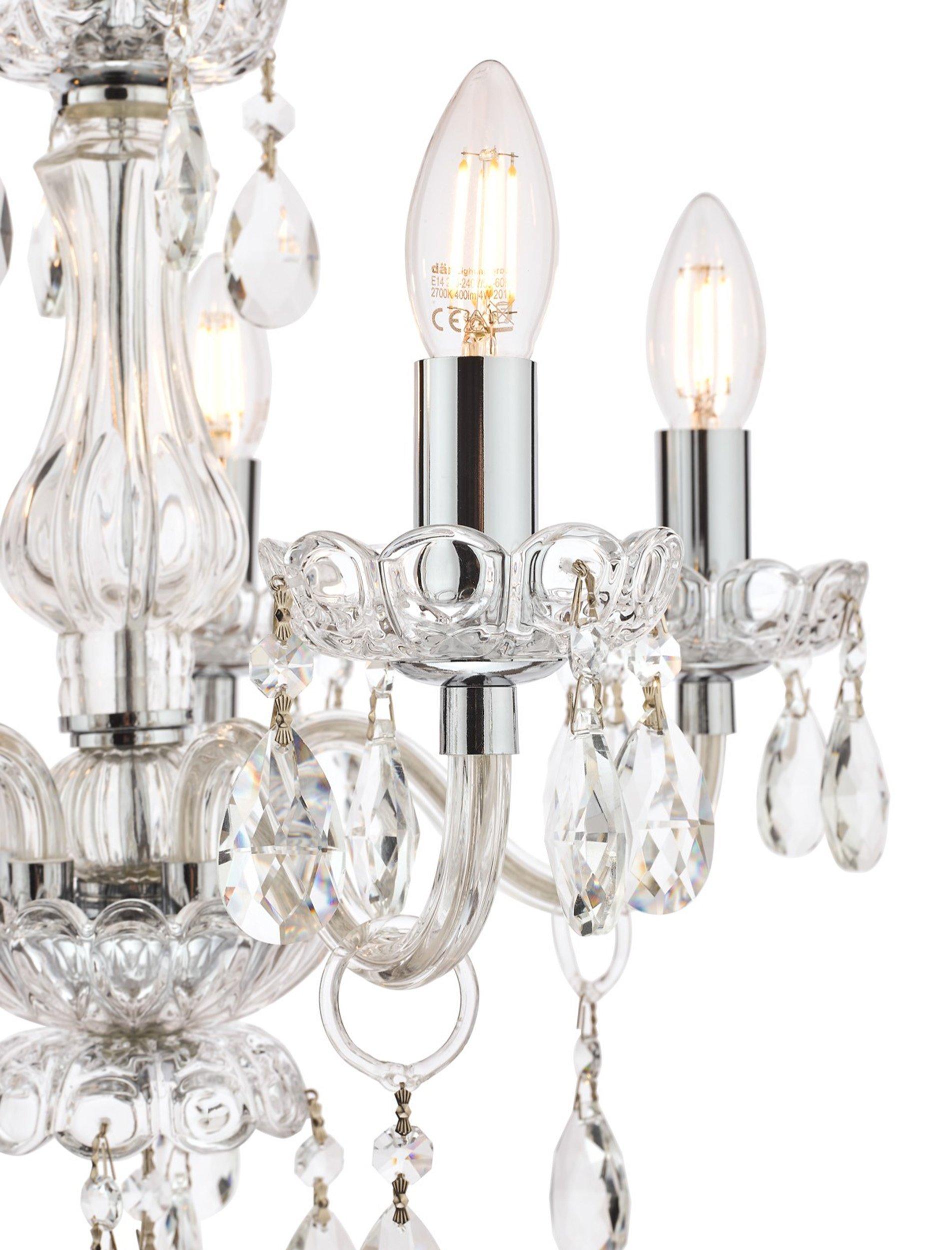 Light-refracting faceted crystals hang from five crystal arms on this opulent ceiling light. A modern take on a traditional French chandelier, it's accented with polished chrome fittings and offers a bright, glistening spread of light. Height-adjustable at the point of installation, five LED bulbs are required.