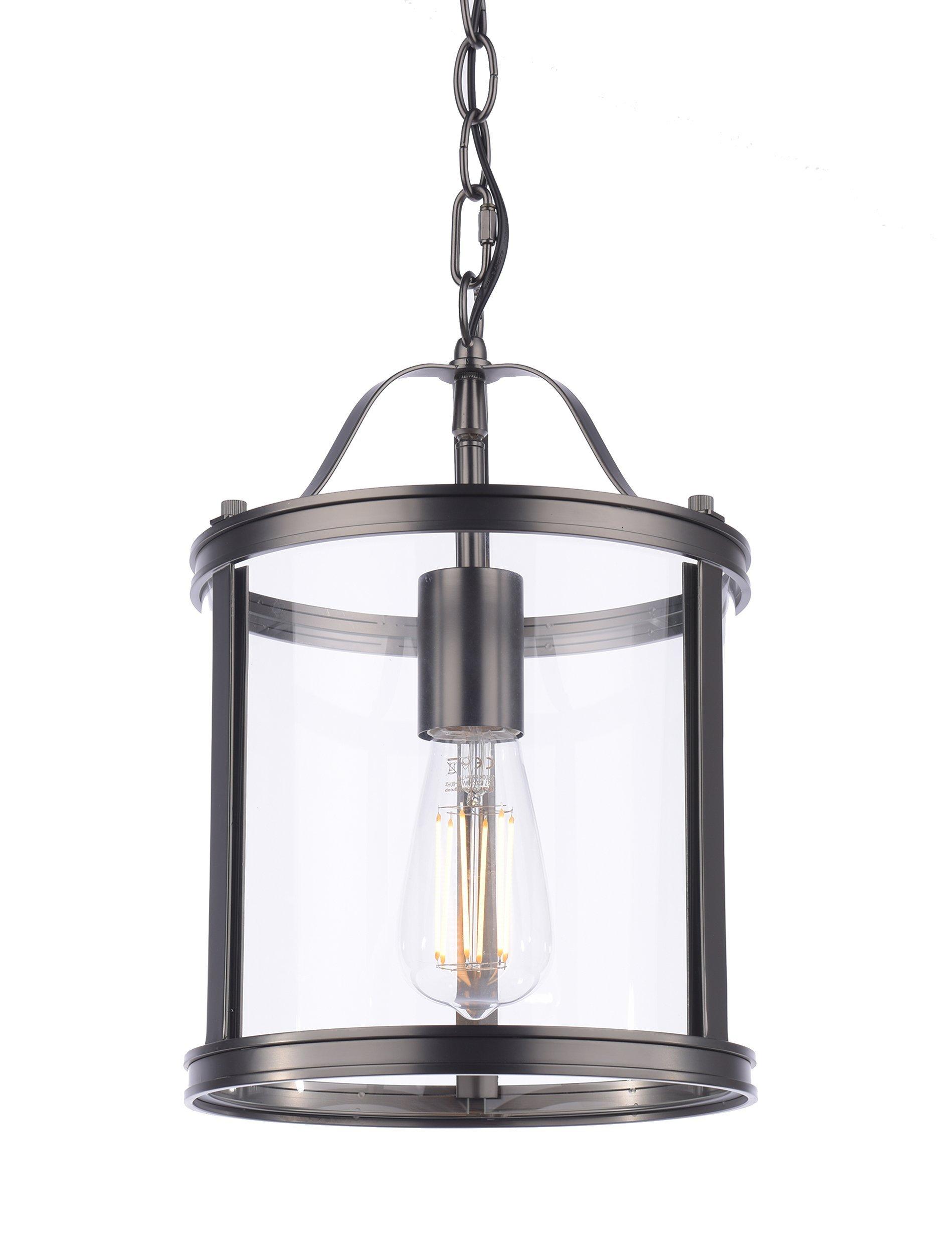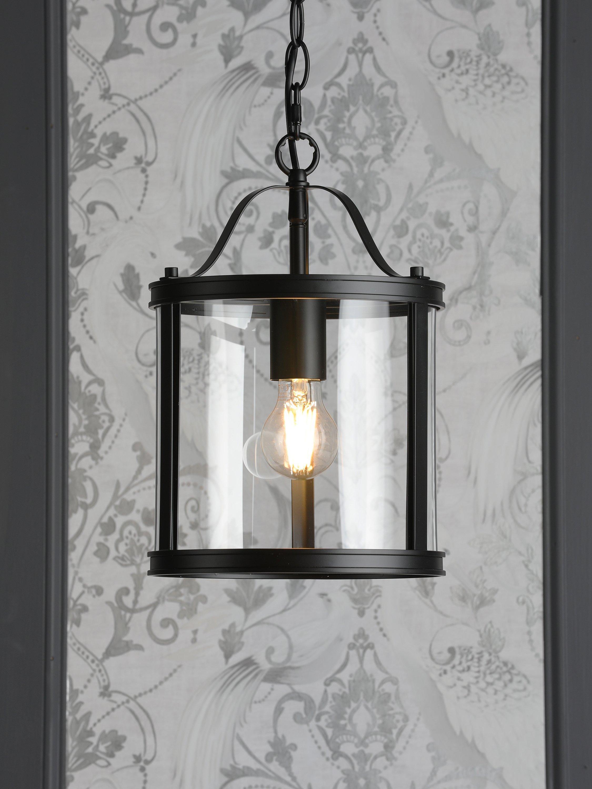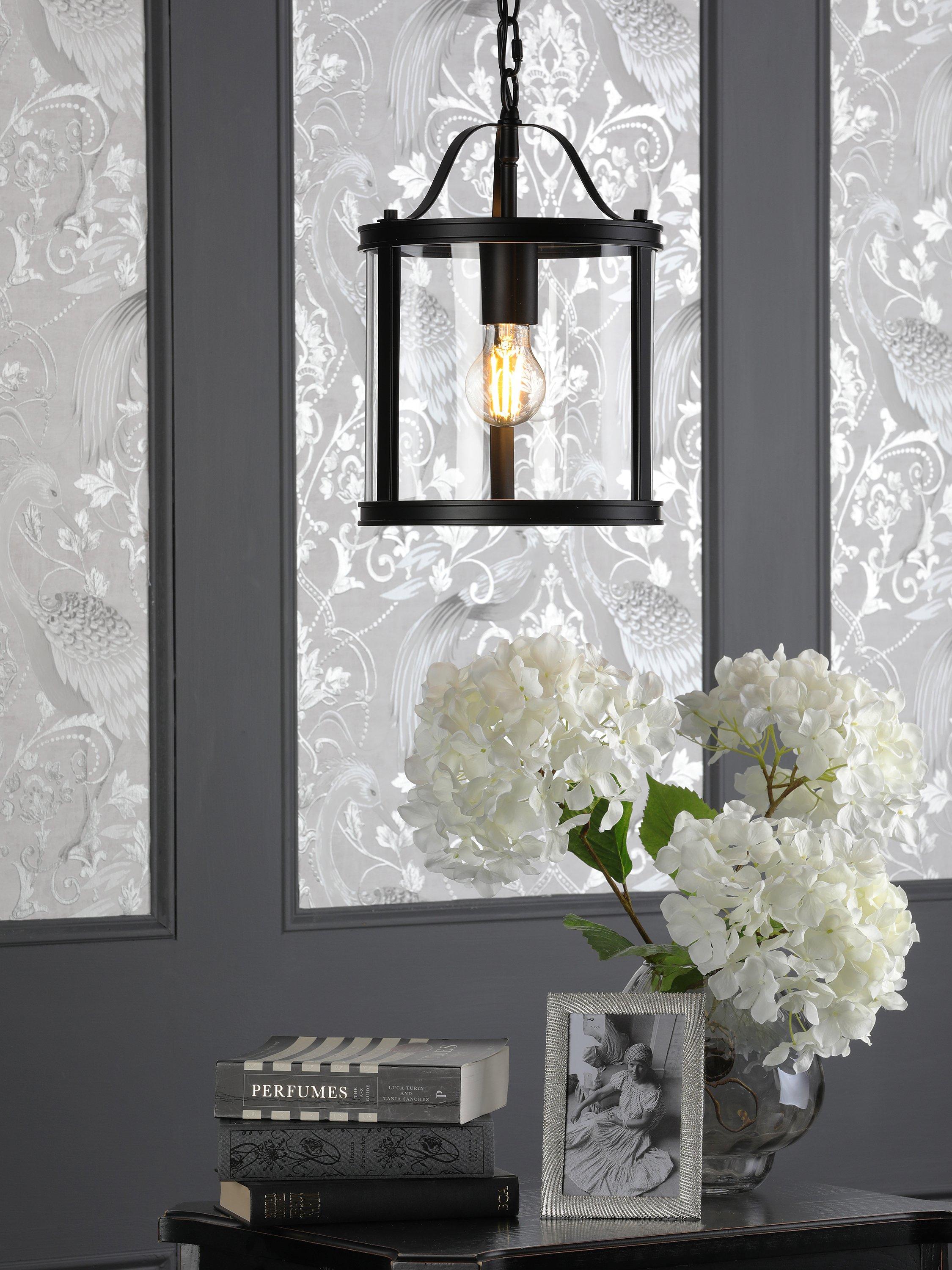 The clean lined Laura Ashley Harrington ceiling pendant light is a graceful blend of clear glass and sleek metal. A simple, lantern style case surrounds a single lamp-holder, with a vintage finish for an effortlessly elegant look. This stylish piece will illuminate your favourite room and create a bright, inviting space. Height adjustable at the point of installation.