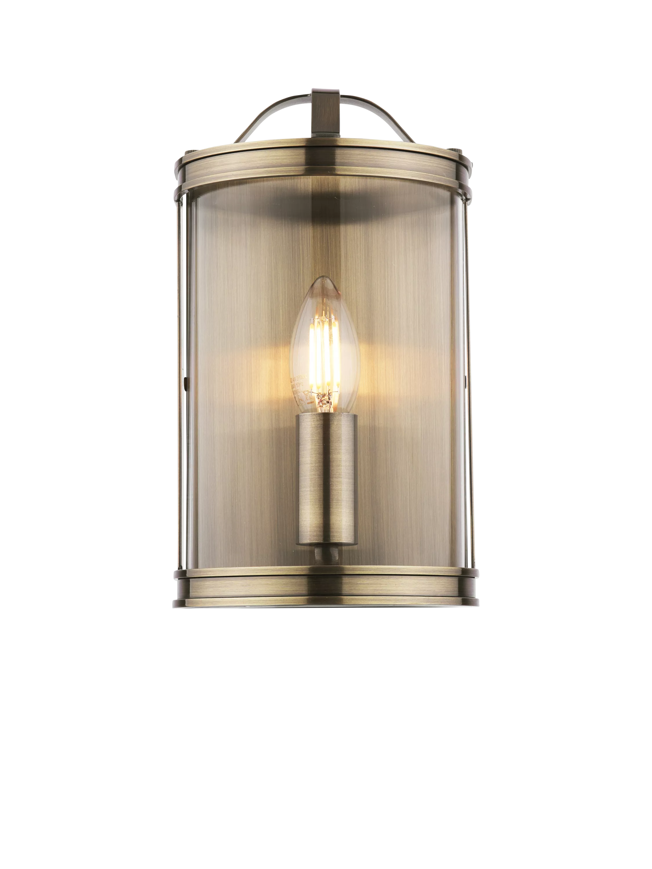 A graceful blend of glass and a metallic frame, Harrington is an updated take on a lantern wall light with its single candle bulb.