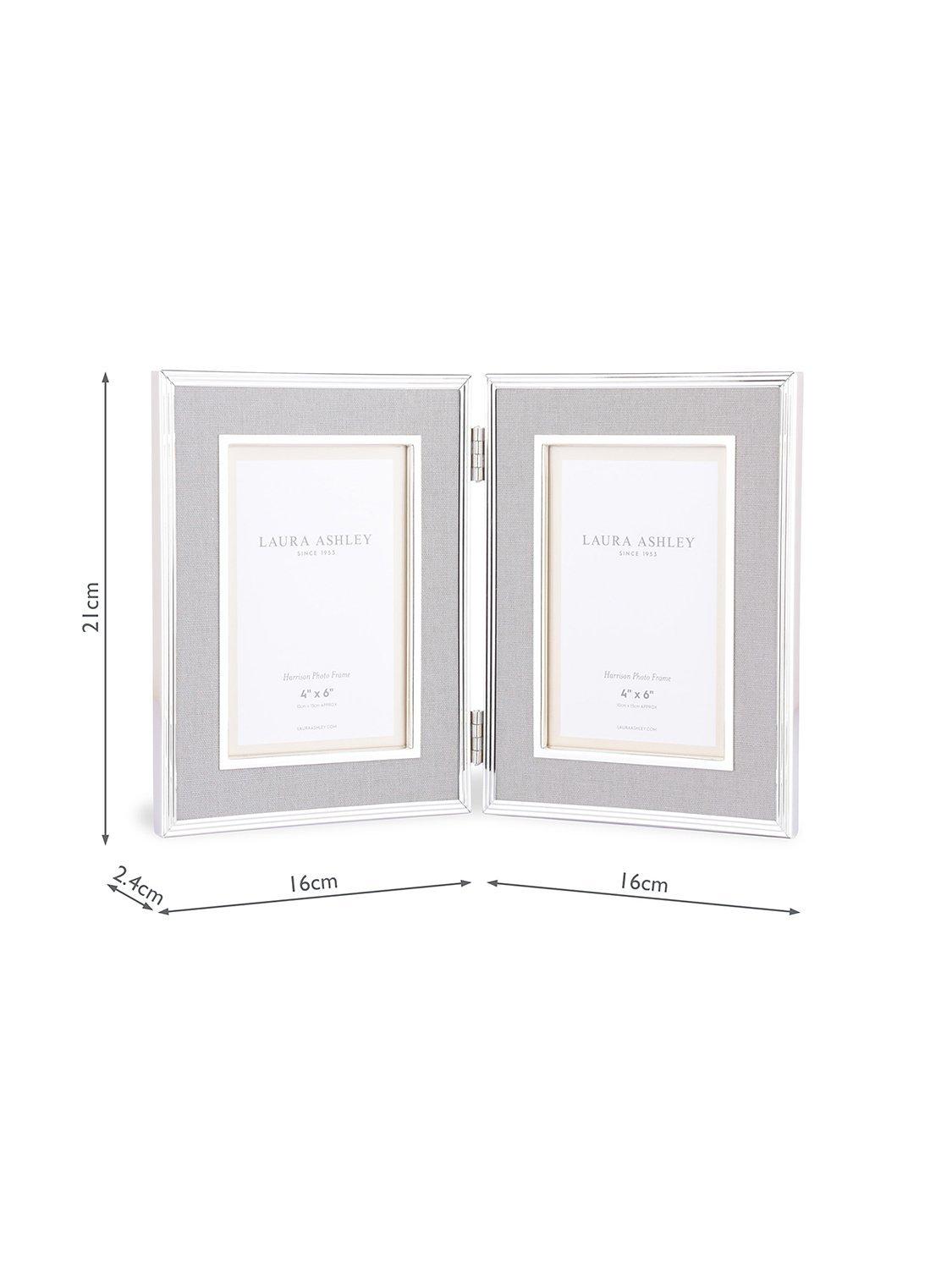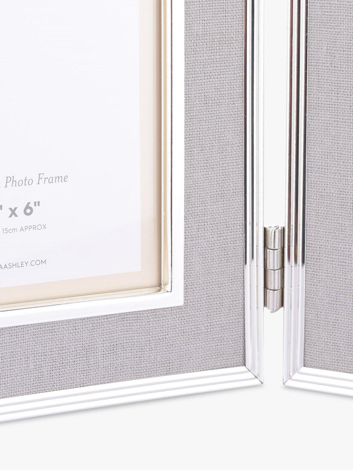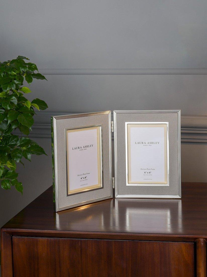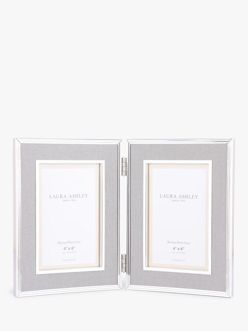 Laura AshleyHarrison Linen Double Photo Frame, 4 x 6" (10 x 15cm), Pale Charcoal/Silver Plated