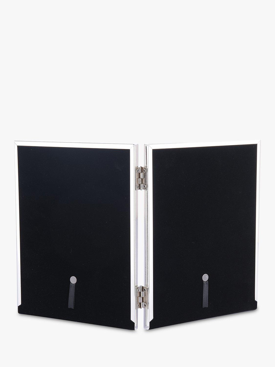 This freestanding double frame displays two photos or images. The inch measurements are rounded measurements worked back from standard centimetre sizes. The size refers to the size of the photo within the frame, which usually allows for an overlap of approximately 5mm.