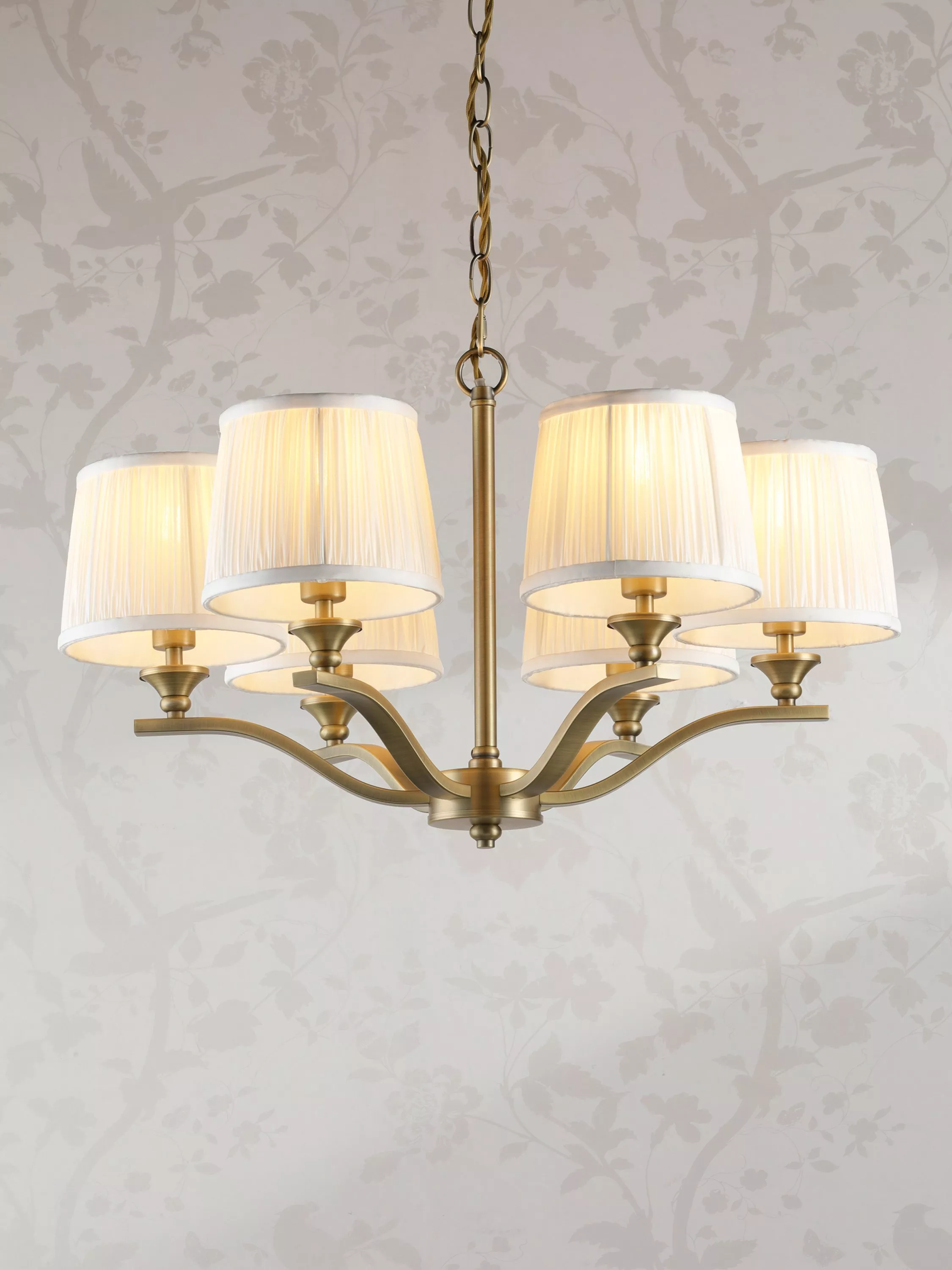 Chic and classic, this beautiful Laura Ashley Hemsley ceiling light features six arms, all encased in classic pleated silk shades. Bulb not included. Takes six 40W E14 (SES) bulbs.