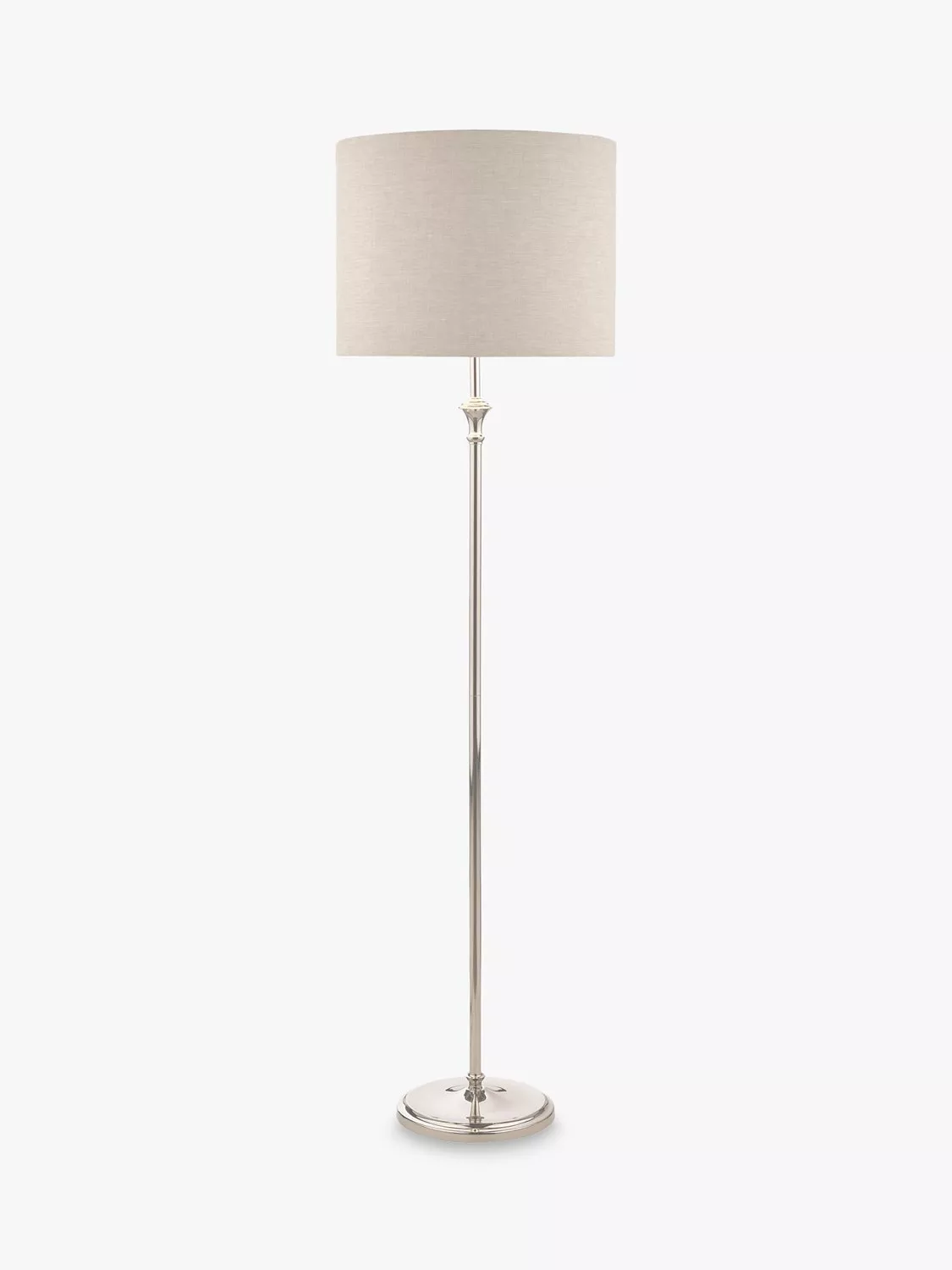 This floor lamp offers a modern take on classic heritage style. We like its slim metal base which has a polished finish and its natural linen lampshade with a metallic lining which helps to enhance a warm glow of light. One LED bulb is required.