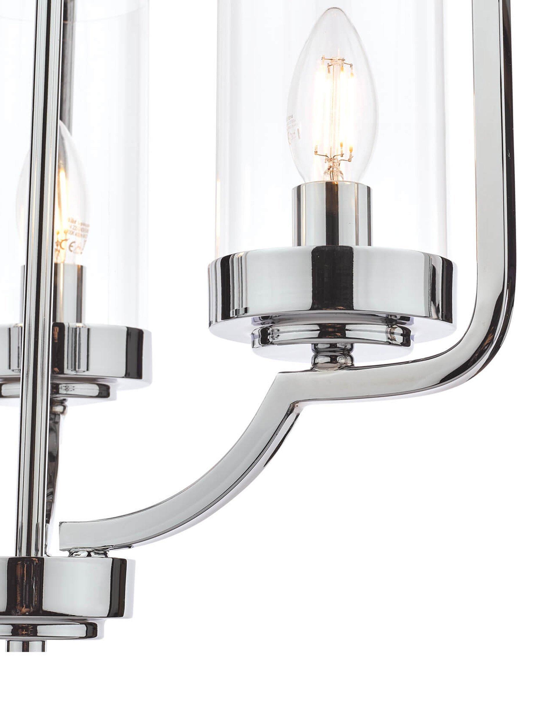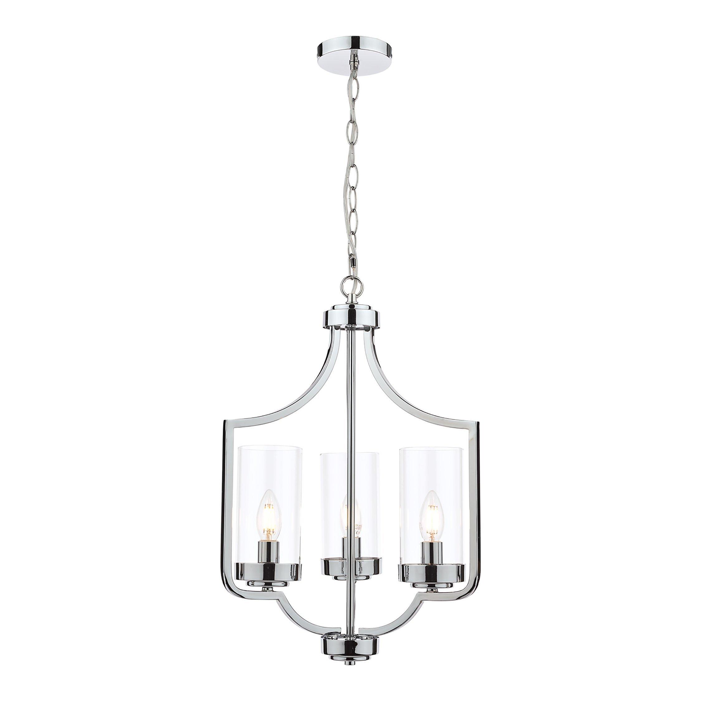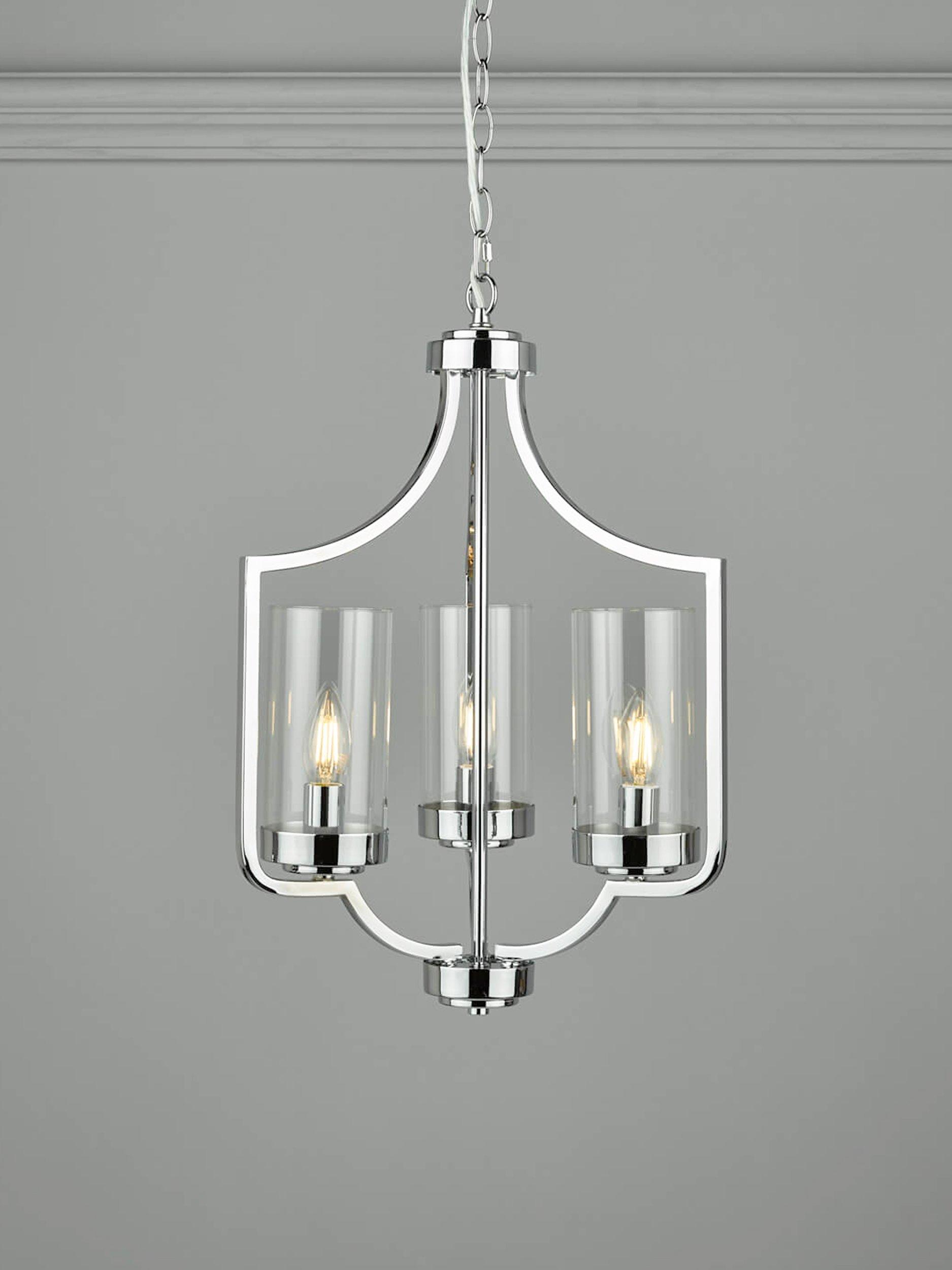 The design of this ceiling light takes inspiration from the draped form of a Moroccan tent. Made from metal with three clear glass cylinder shades, its open structure and lantern-style framework allows light to spread around your room. It's suspended from a height-adjustable hanging chain and requires three LED bulbs. Available in a warm, antique brass or more modern polished chrome finish.