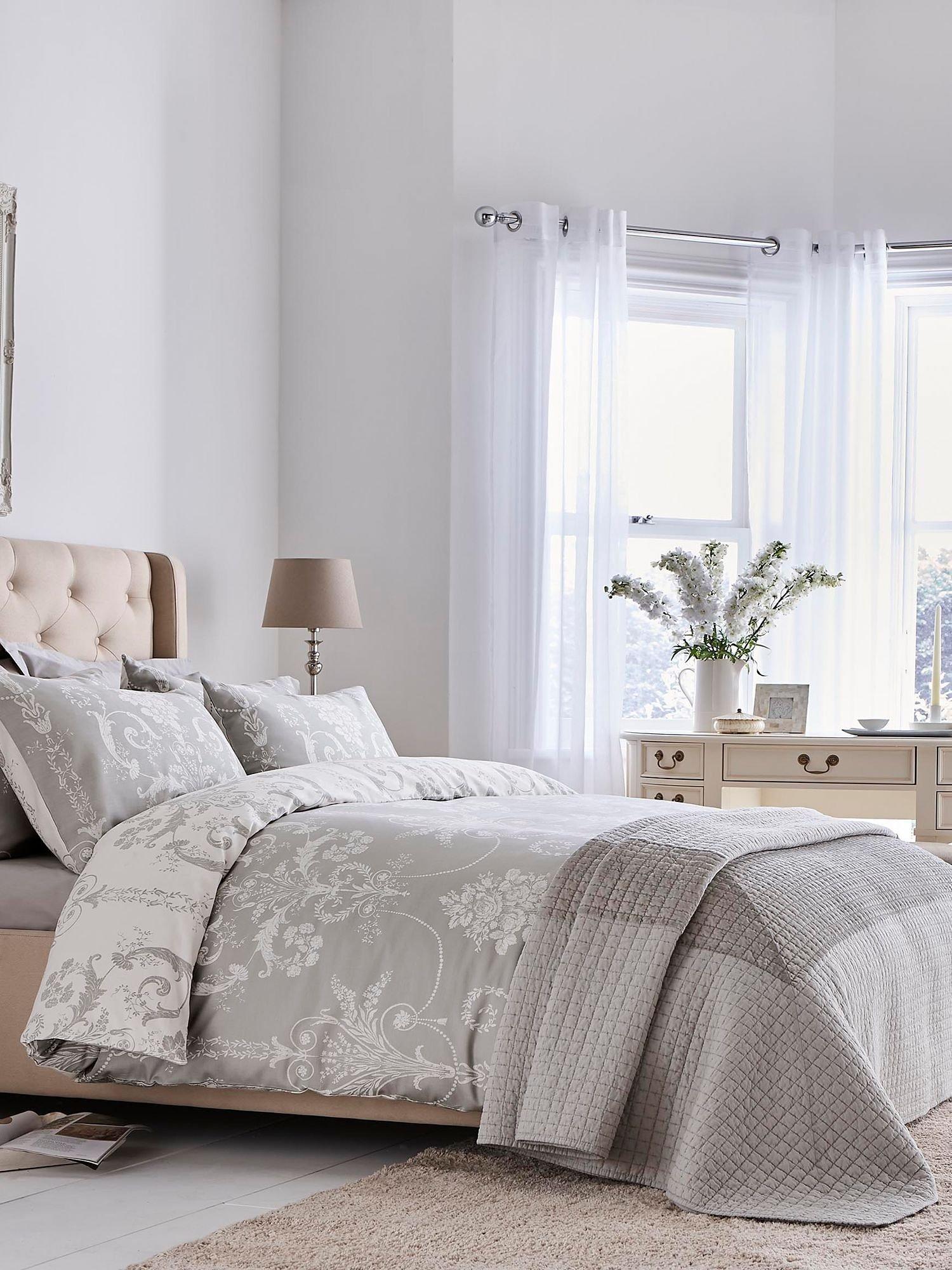 With its subtle curlicue florals inspired by 18th century France, the luxurious Josette bedlinen in Steel brings a touch of chateau elegance to the bedroom and is reversible so that you can style it two ways.