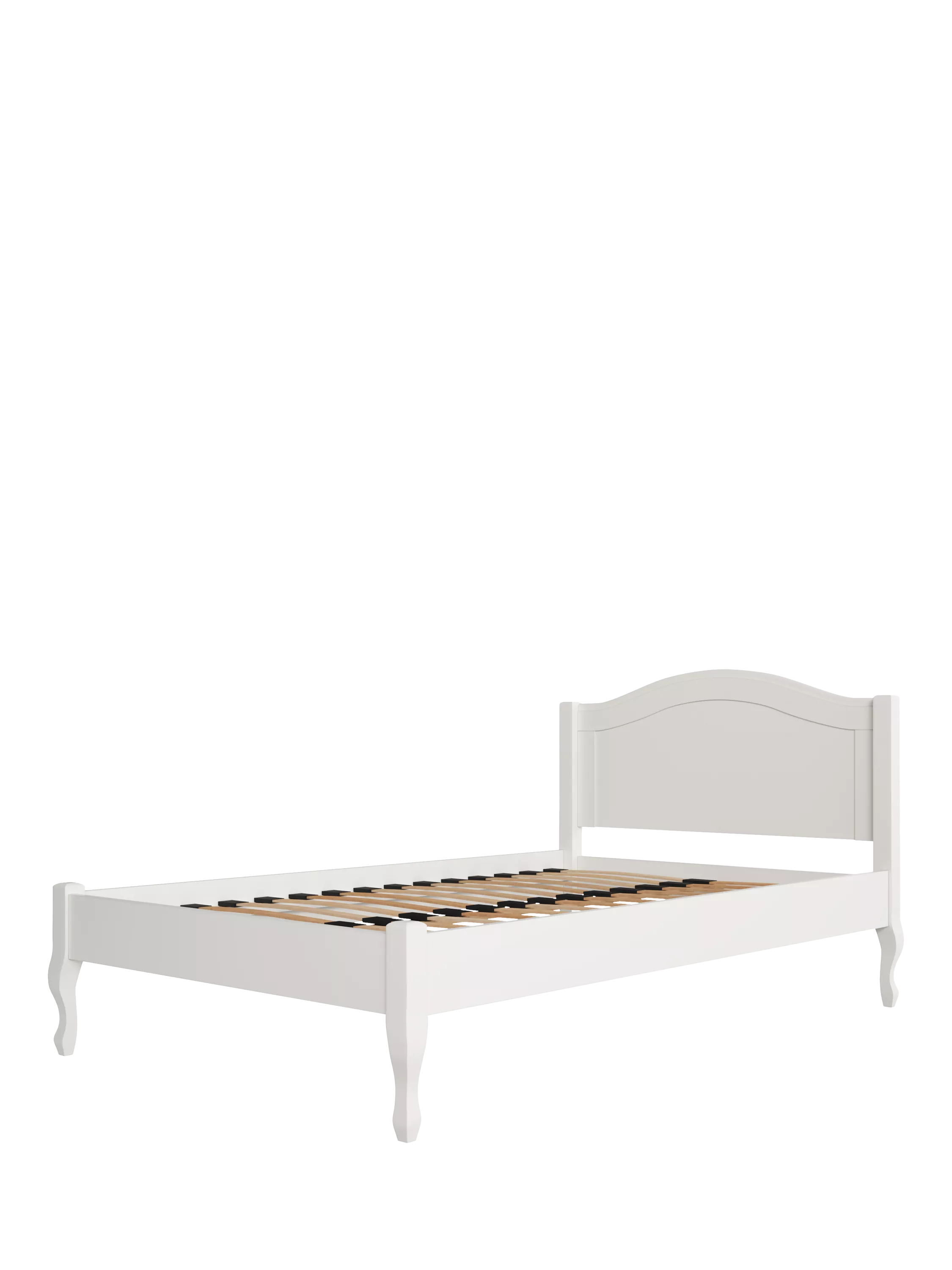 The bed features shaped legs and uses sprung slats for a supportive and ventilated mattress base. The painted finish is complemented with solid oak rails on the head and footboards. All surfaces are given a graceful yet durable painted finish.