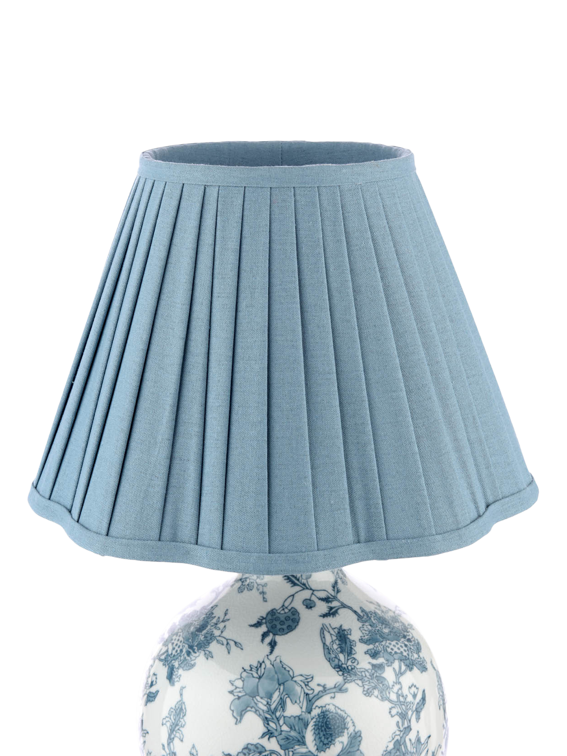 Bring a touch of timeless English charm to your home with this graceful Laura Ashley table lamp. The delicate blue floral pattern adorning the ceramic base captures the brand's signature style, while the carefully pleated and scalloped linen shade diffuses light to create a warm, inviting glow.